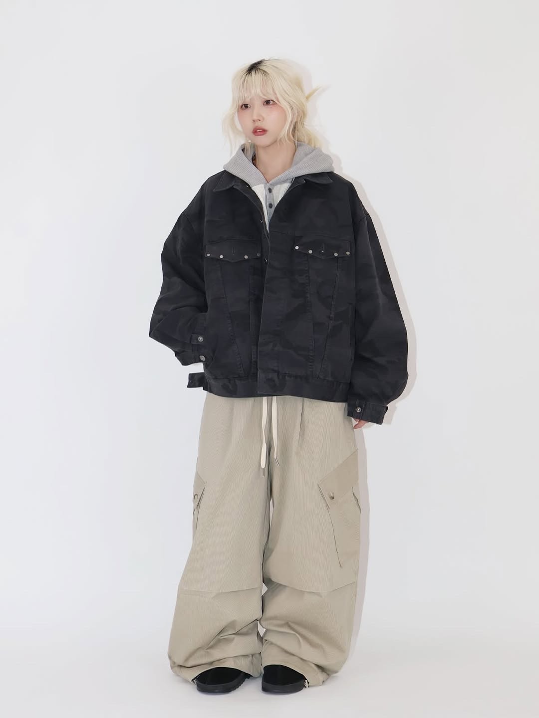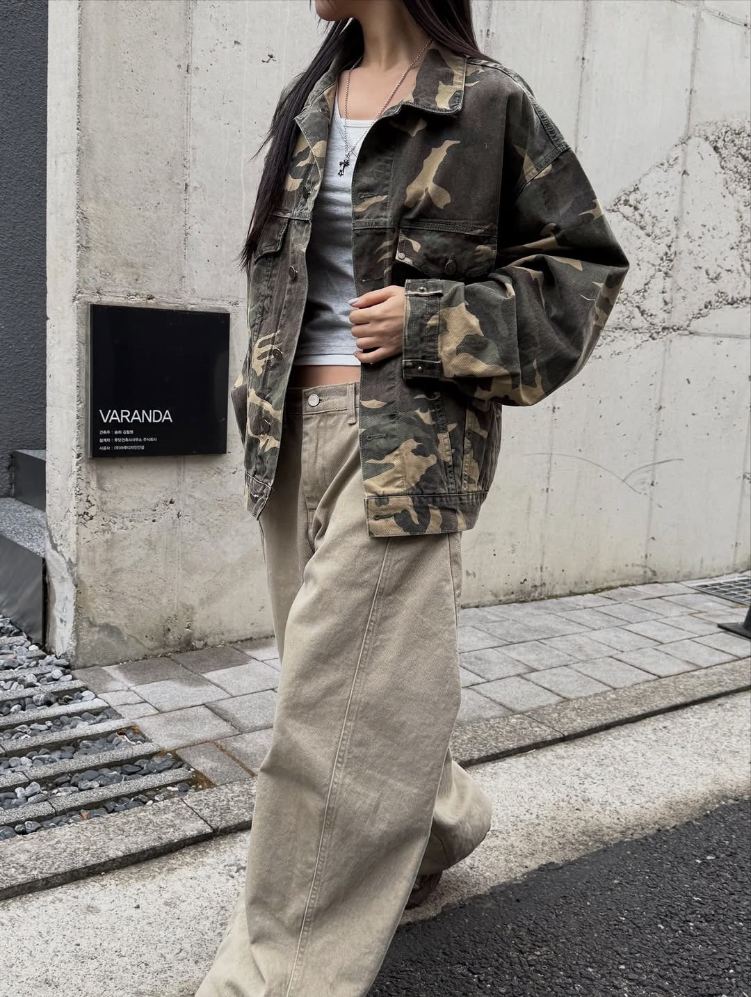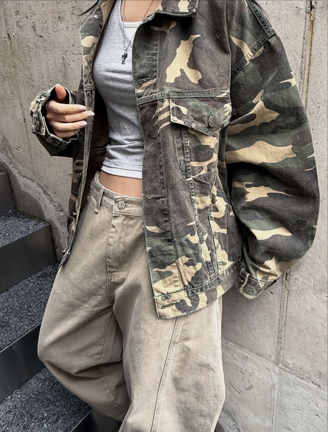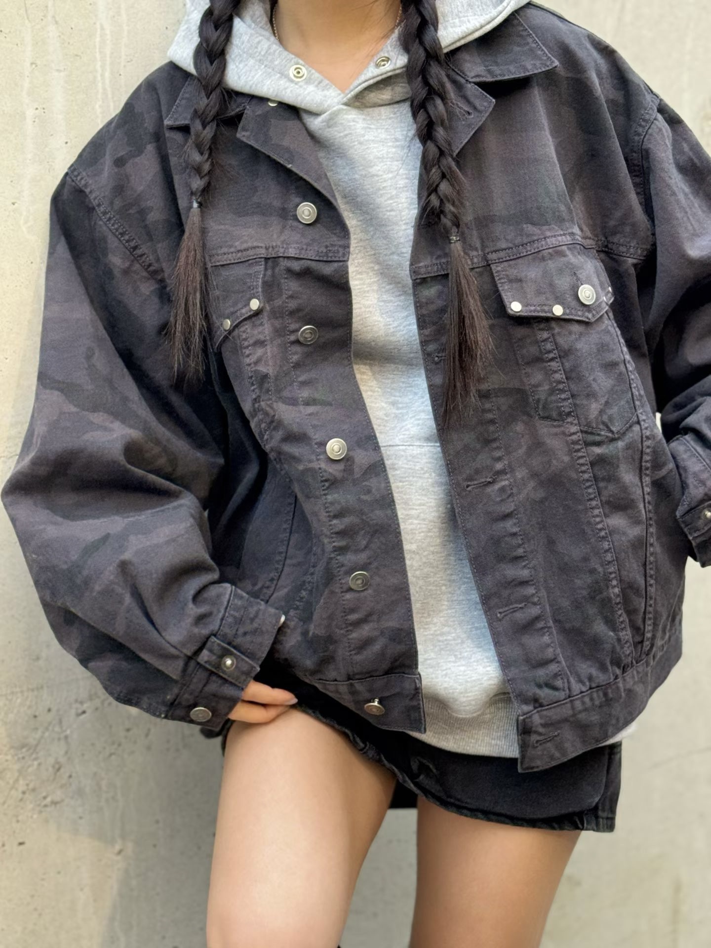 韓國 CAMO 迷彩 工裝感 雙口袋 重磅 立體 硬挺 外套 夾克 (2color)