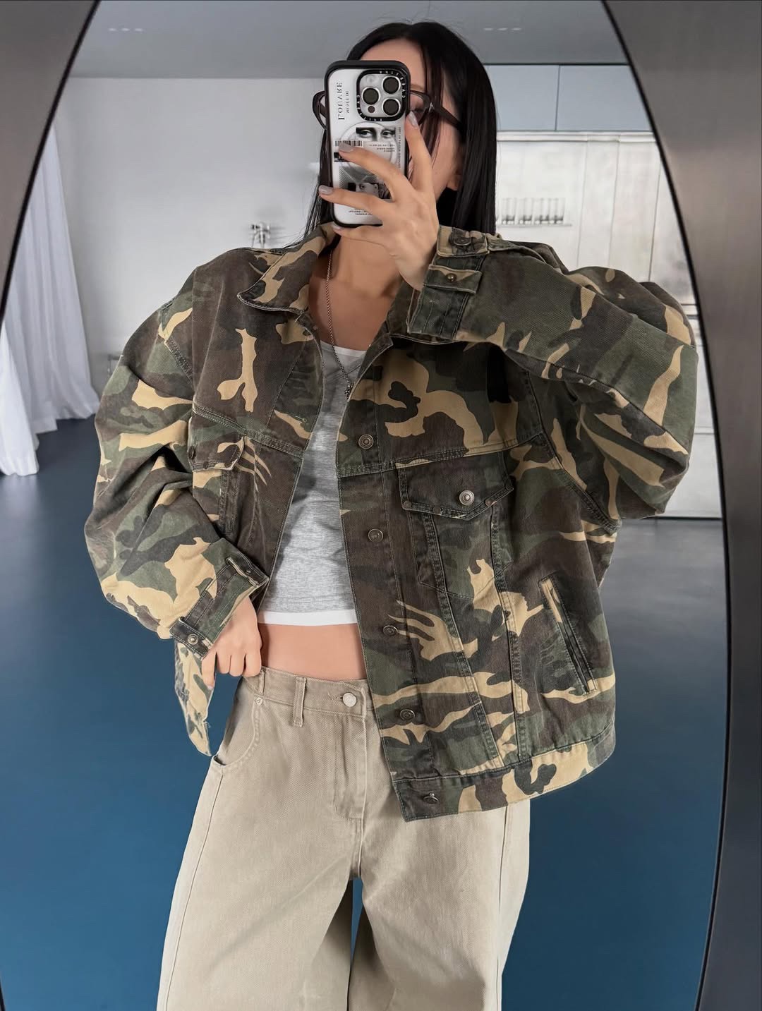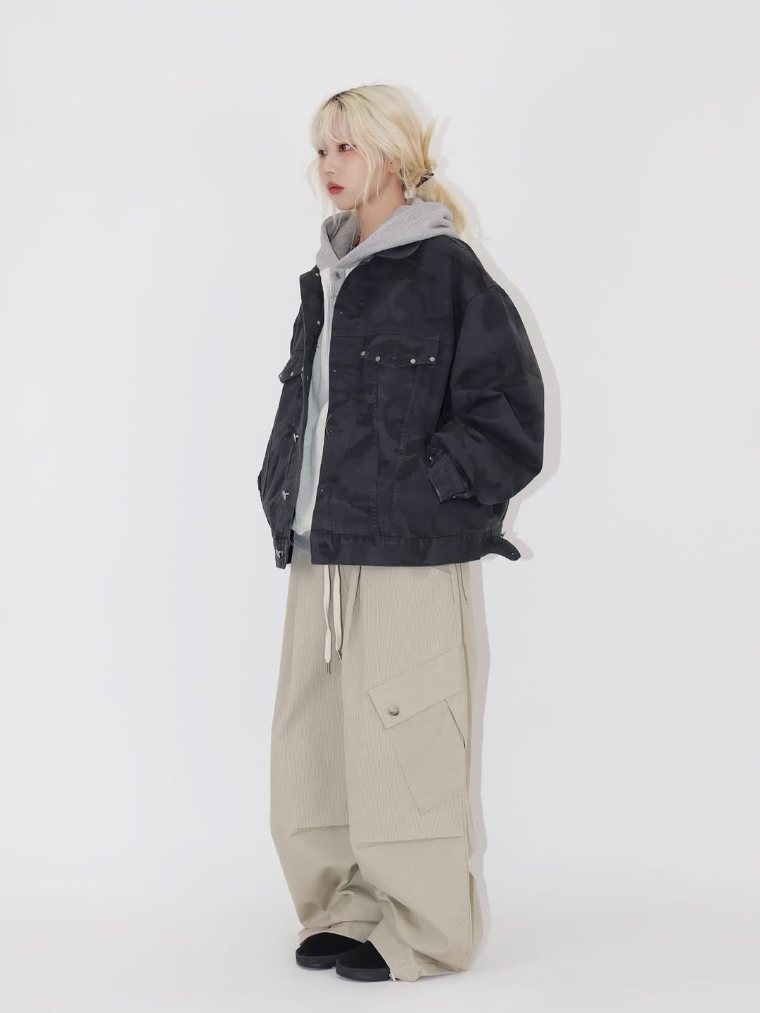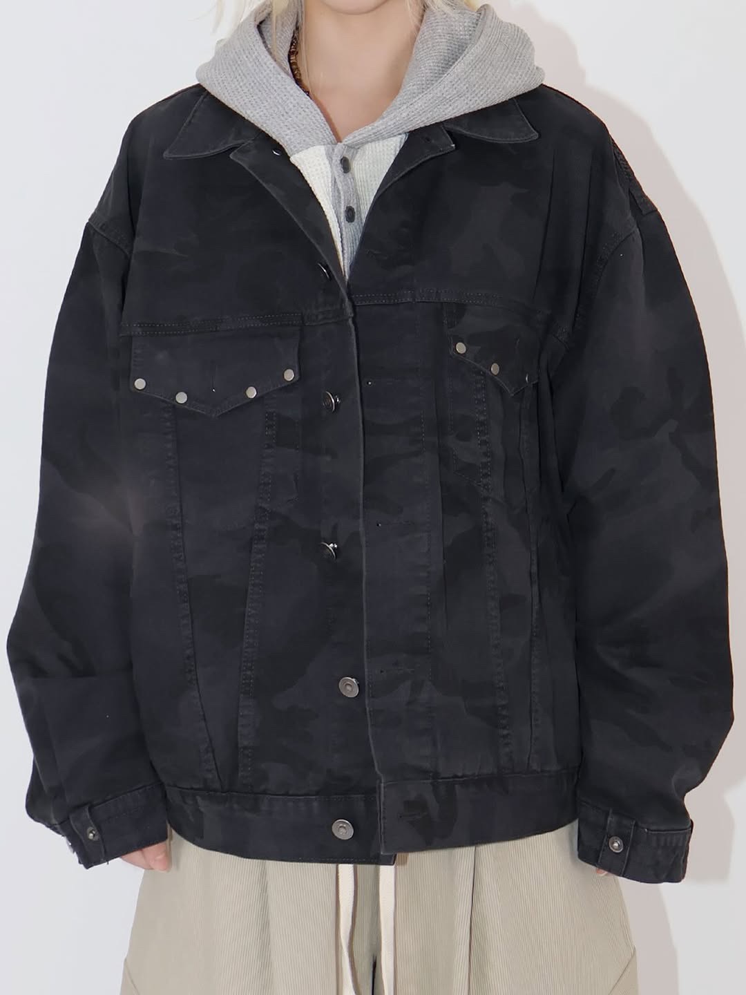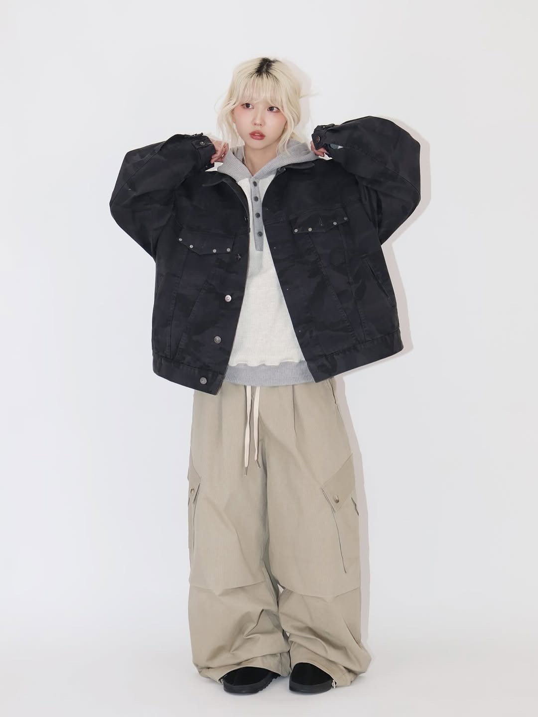 韓國 CAMO 迷彩 工裝感 雙口袋 重磅 立體 硬挺 外套 夾克 (2color)
