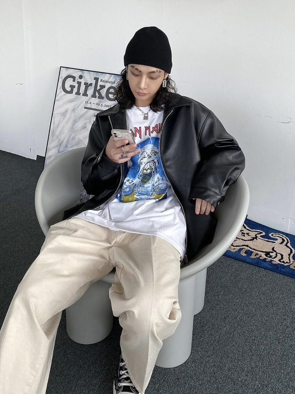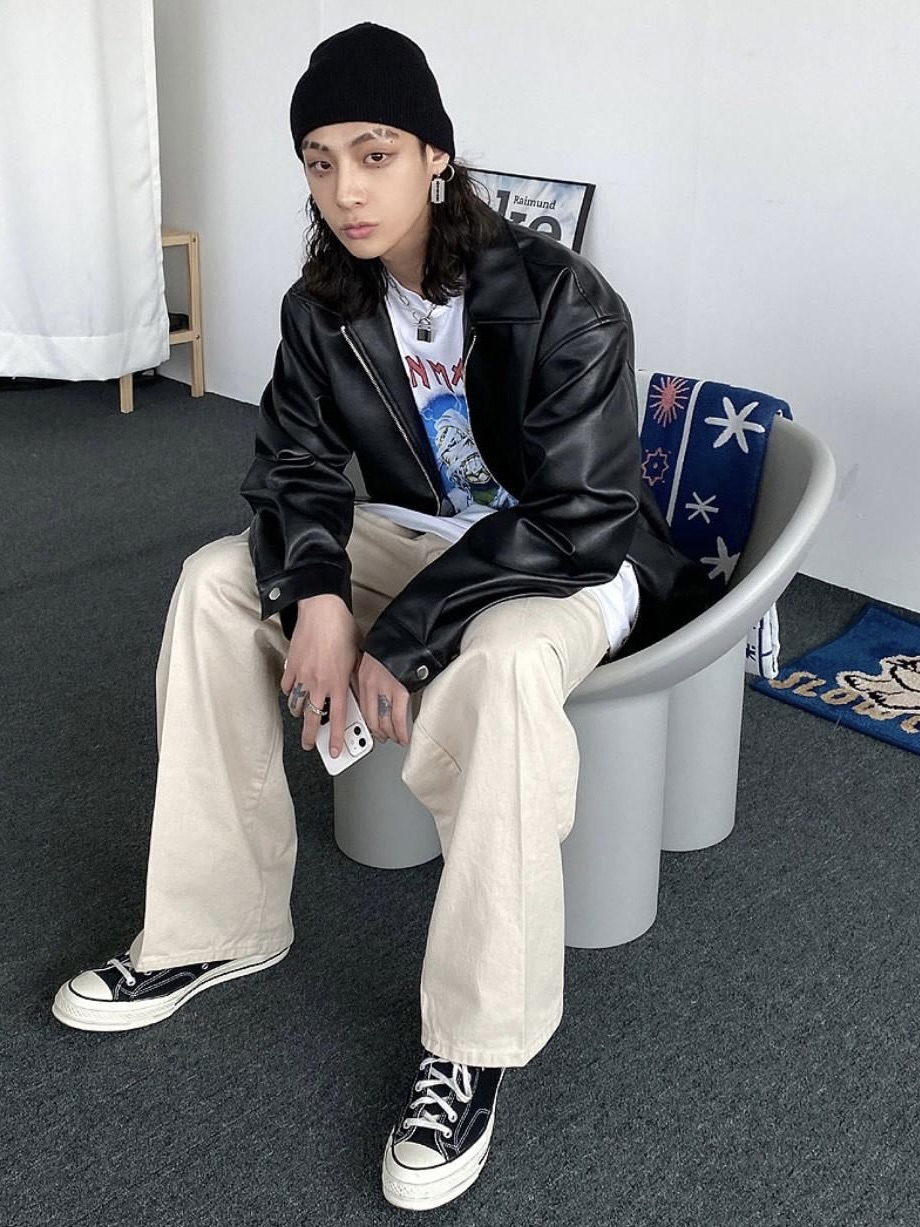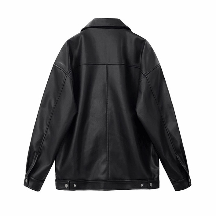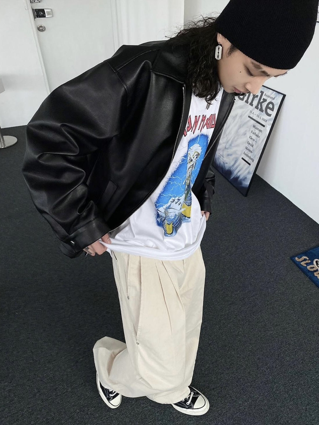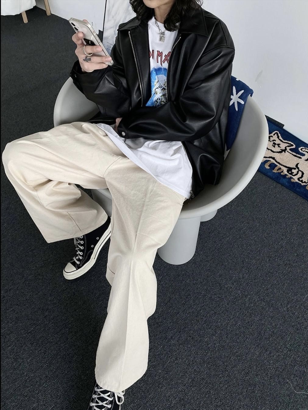 韓國 痞帥 光澤感 立體 重磅 素色 拉鍊 皮外套 皮夾克
