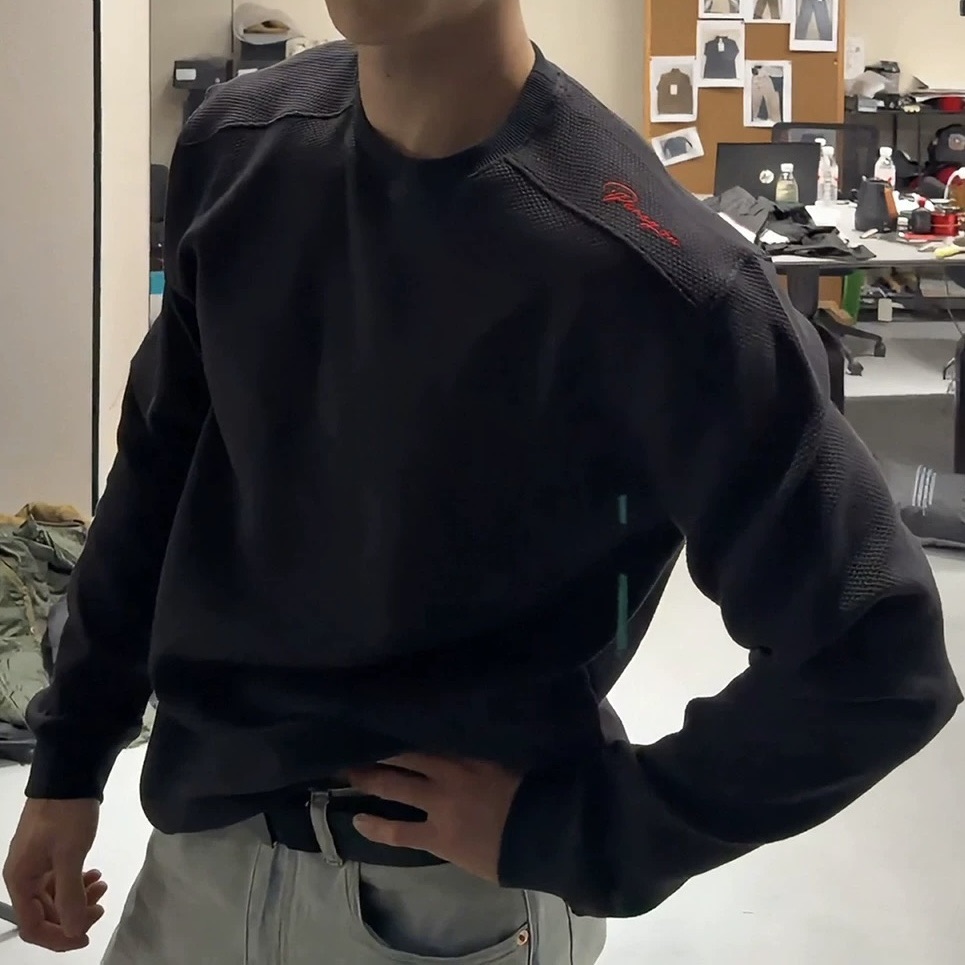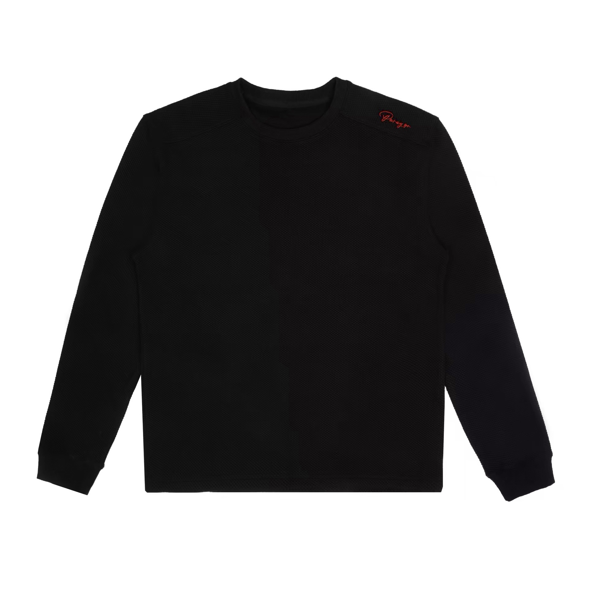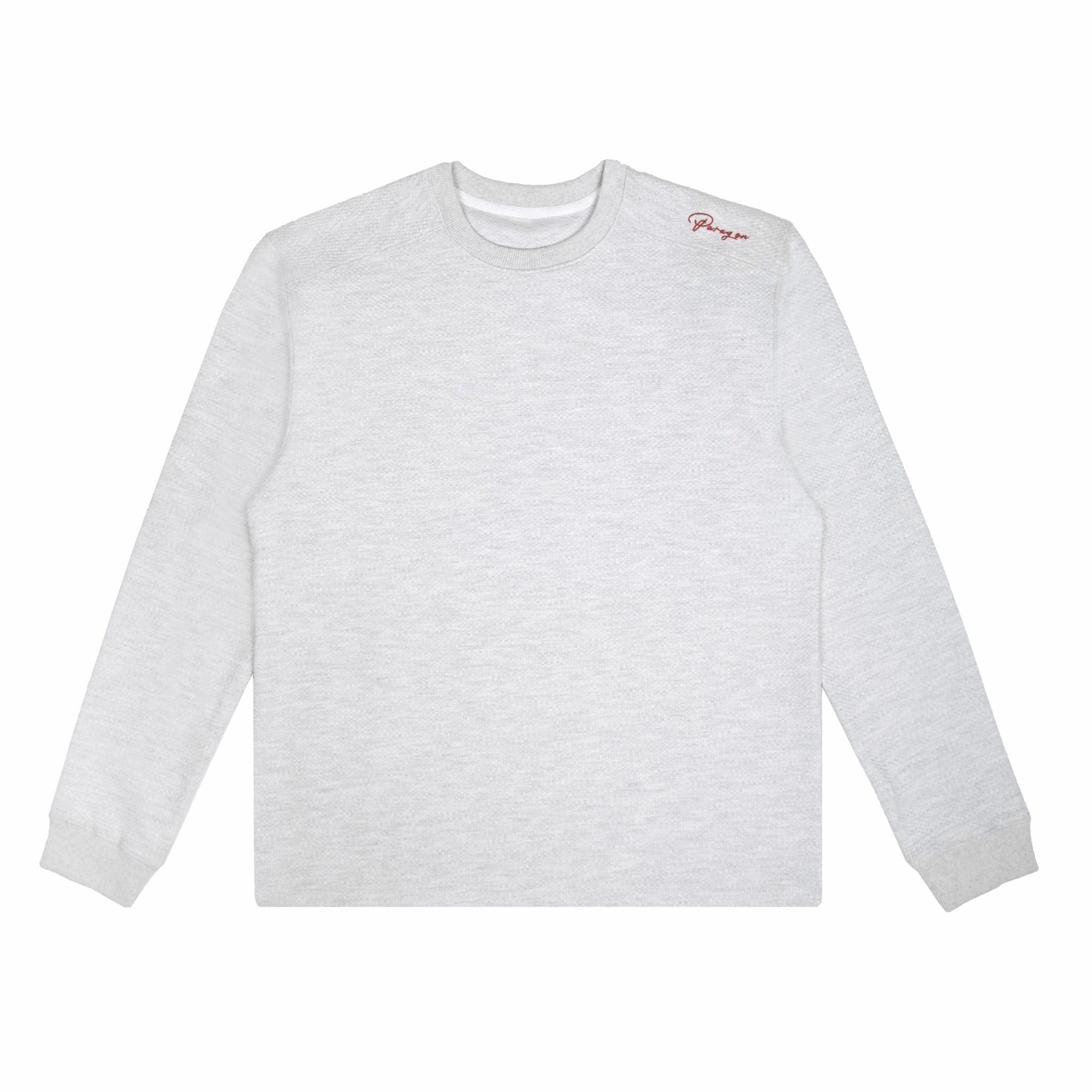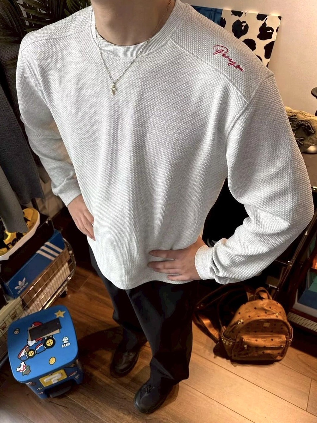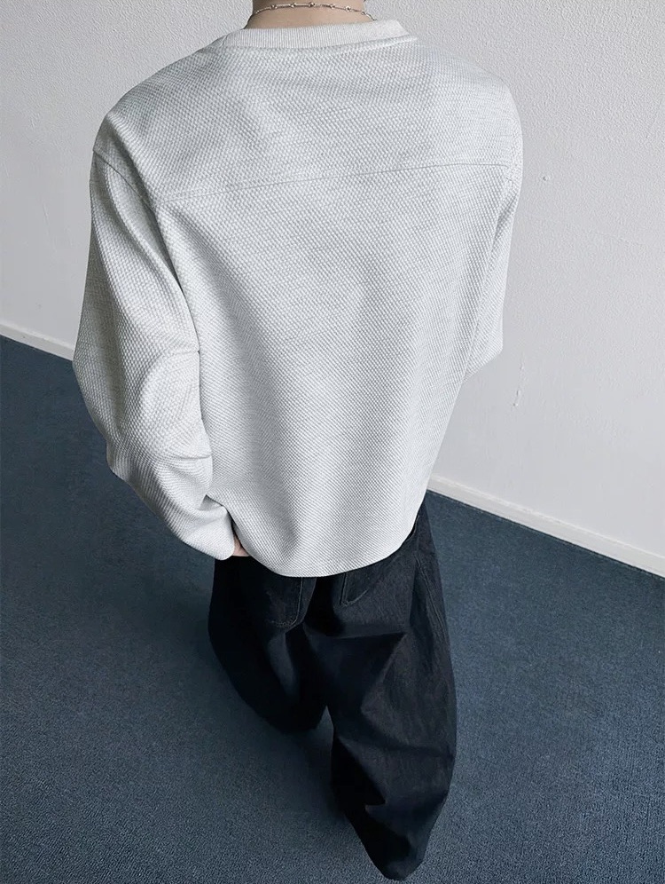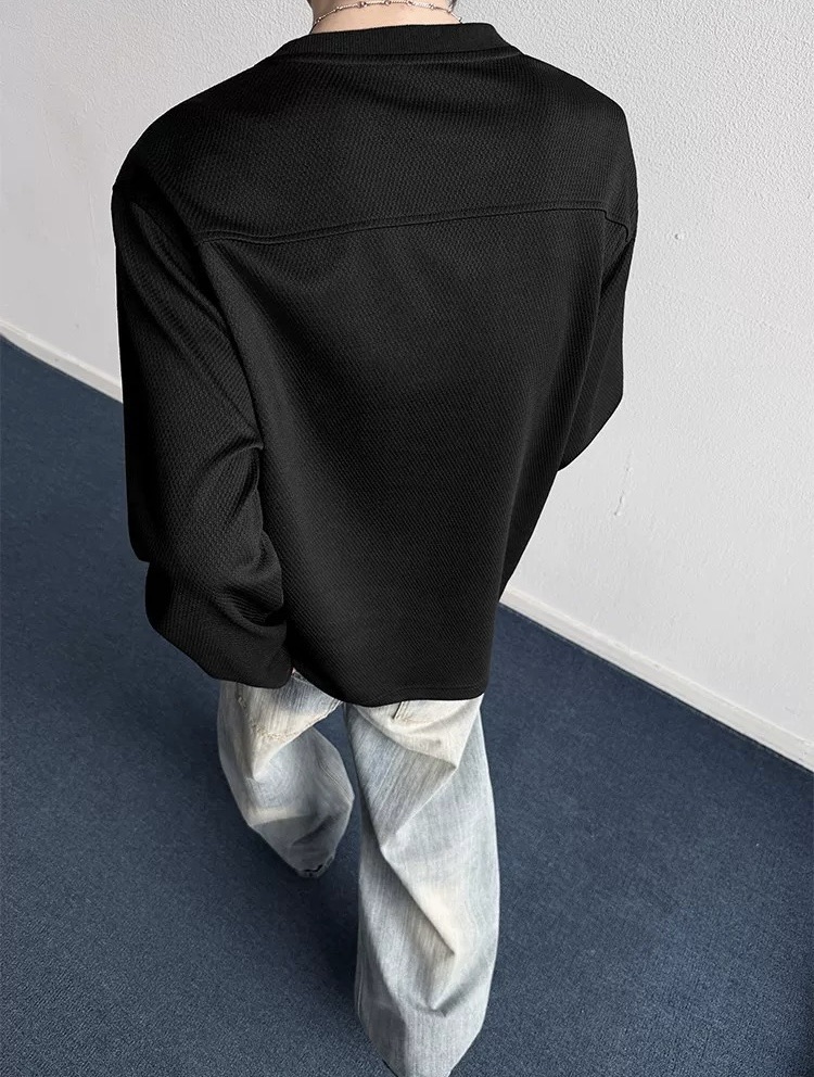 華夫格 肩部 刺繡 小文字 設計 單穿 打底 長袖 上衣 (2color)