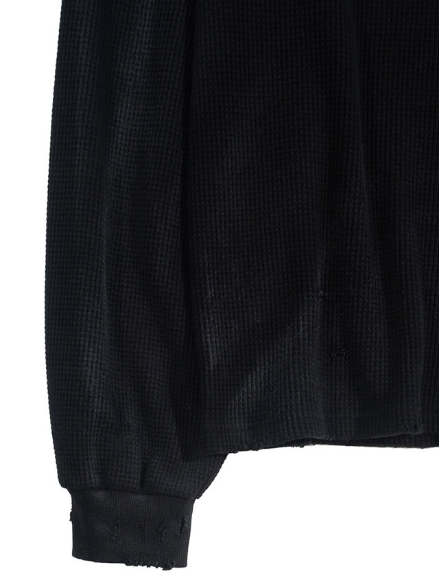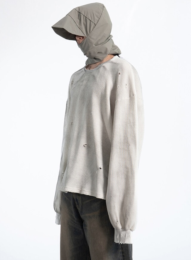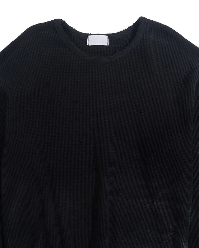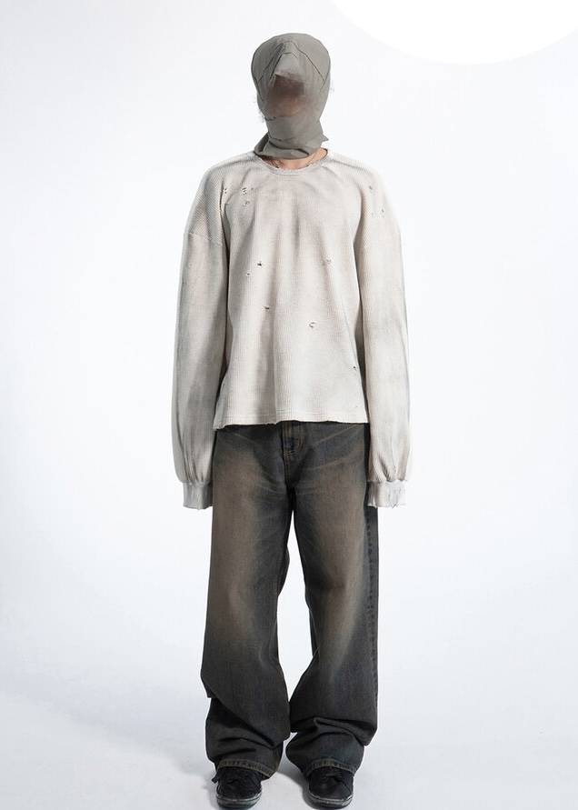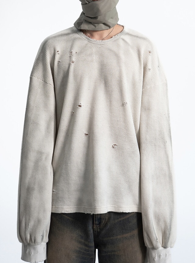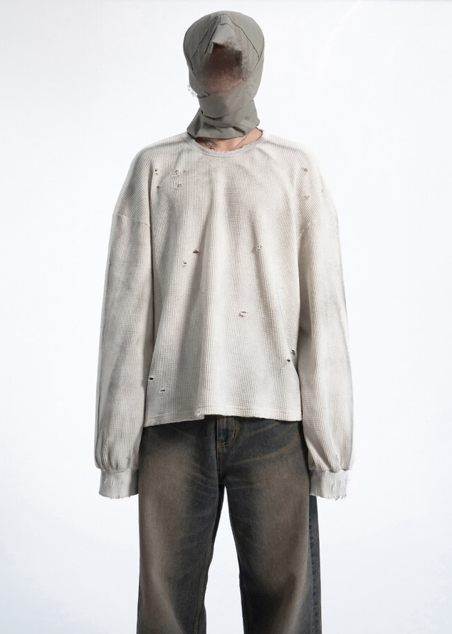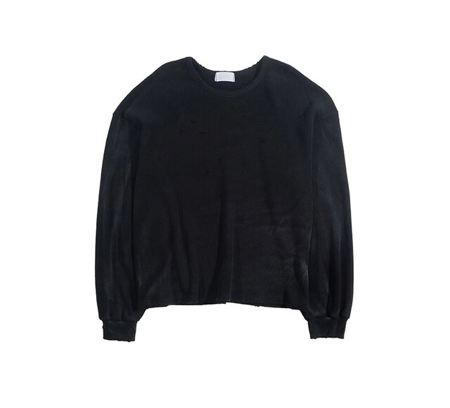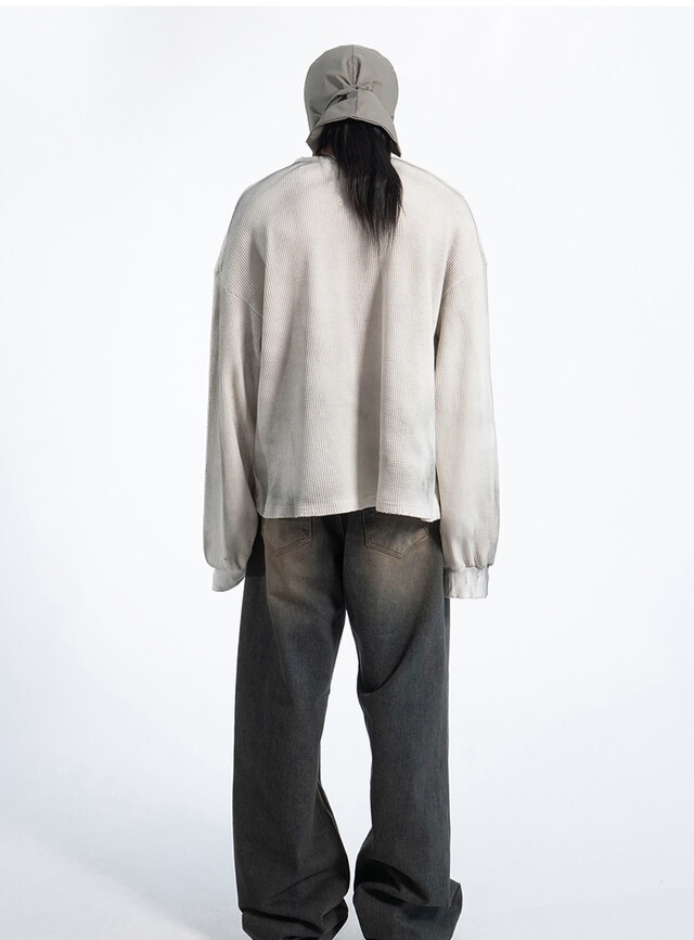韓國 華夫格 破壞 做舊感 髒髒 短版 長袖 衛衣 上衣 (2color)
