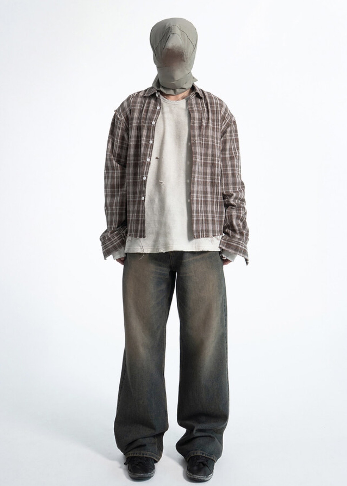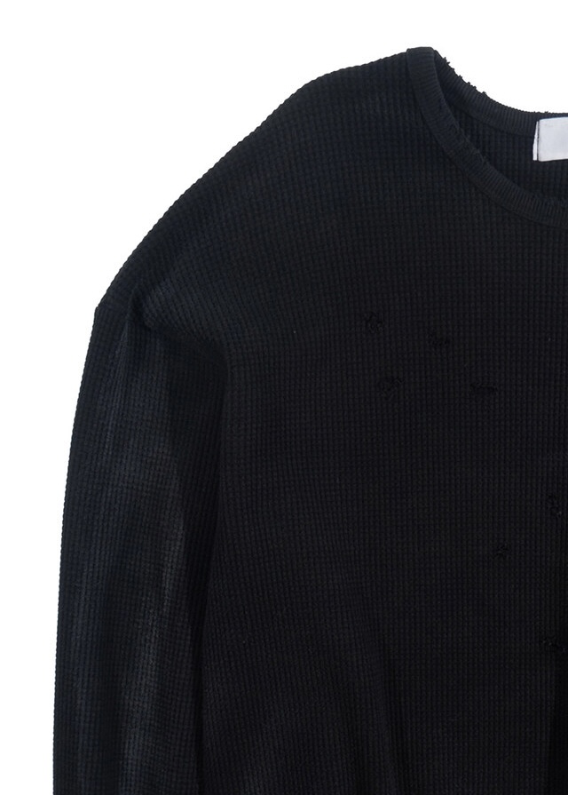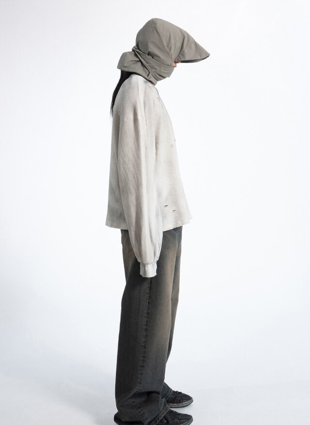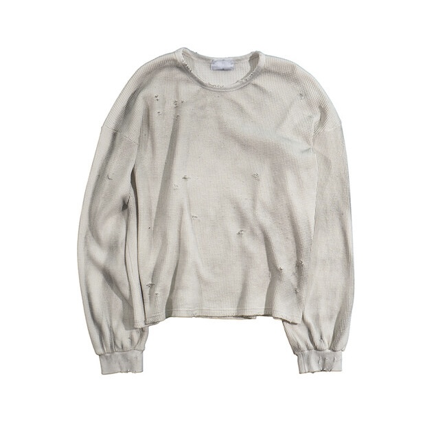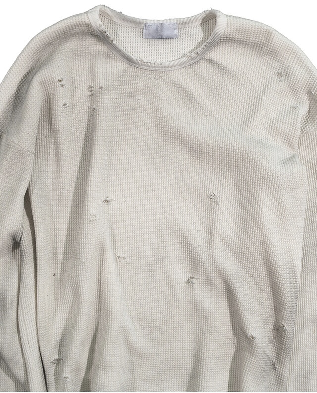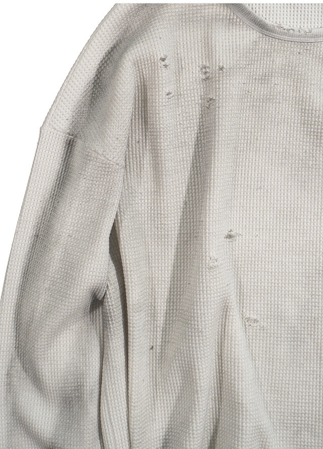 韓國 華夫格 破壞 做舊感 髒髒 短版 長袖 衛衣 上衣 (2color)