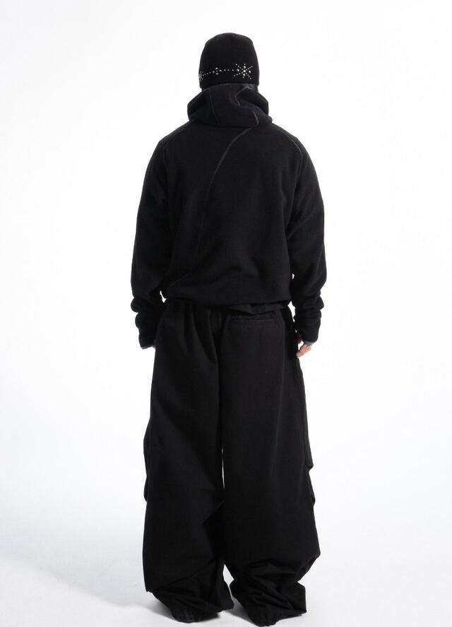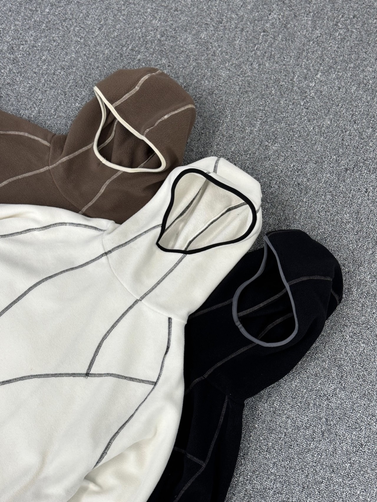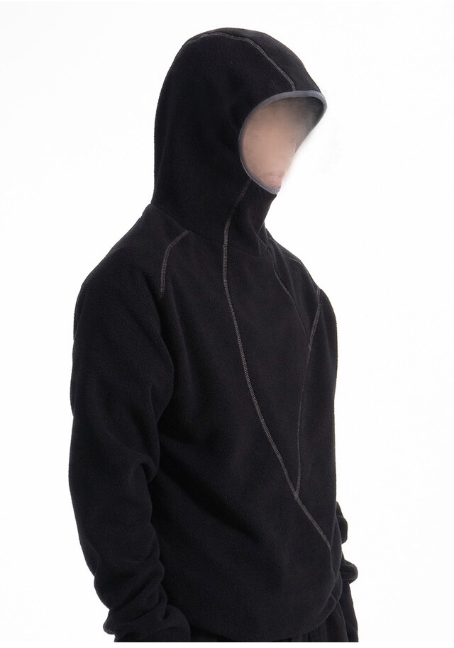 韓國 不規則 線條 指套設計 巴拉克拉法 保暖 搖粒絨 帽T (3color)