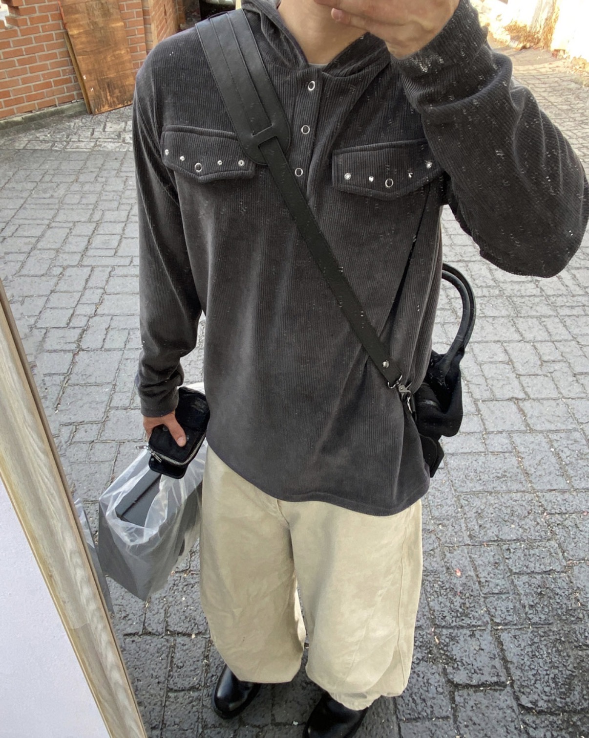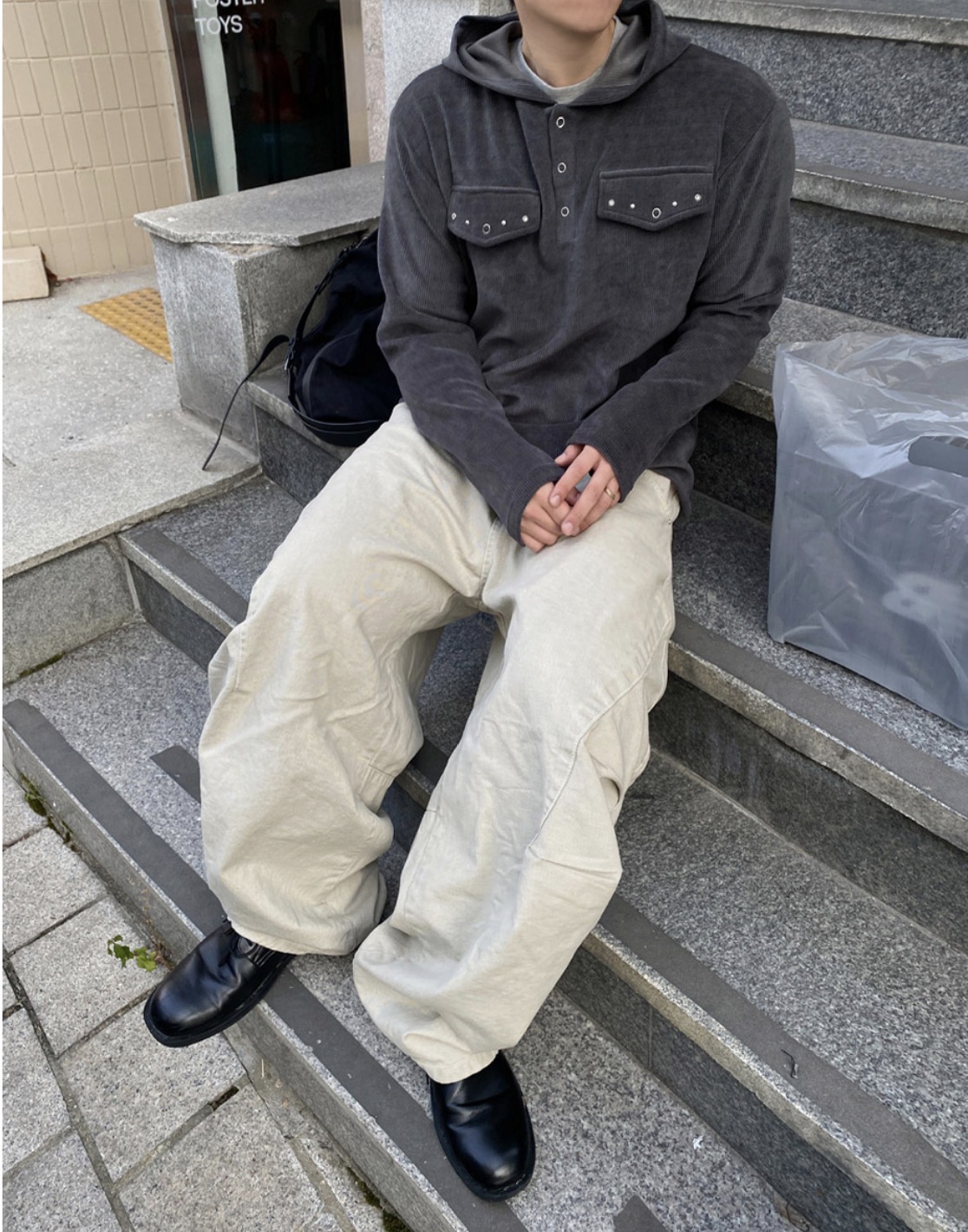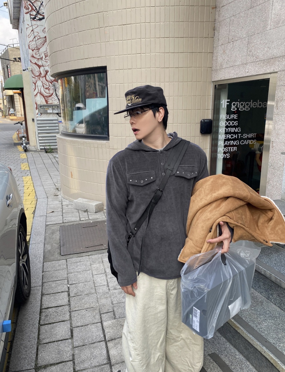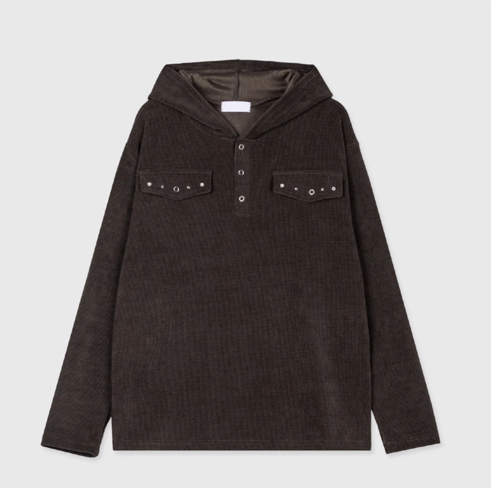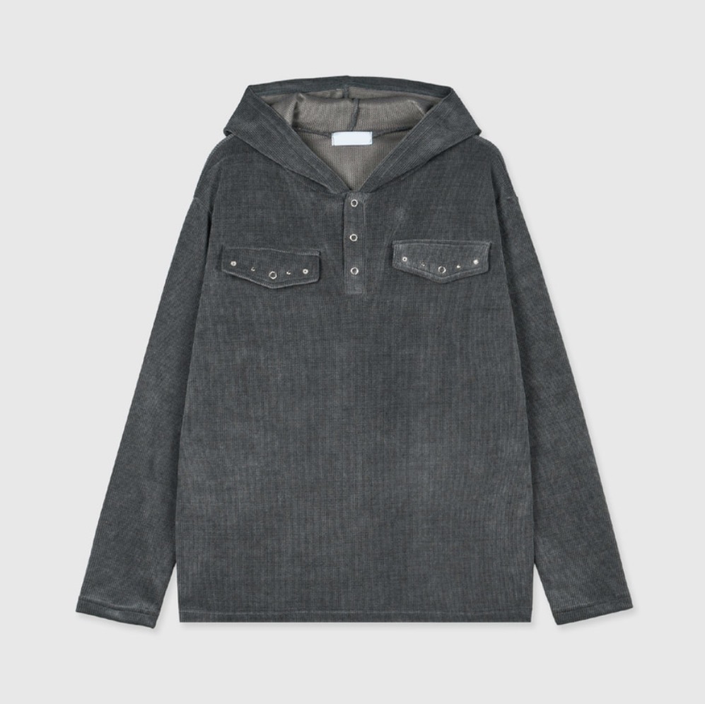 HOLY IN CODE 彈孔 假口袋 按扣 設計 連帽 長袖 上衣 (4color)