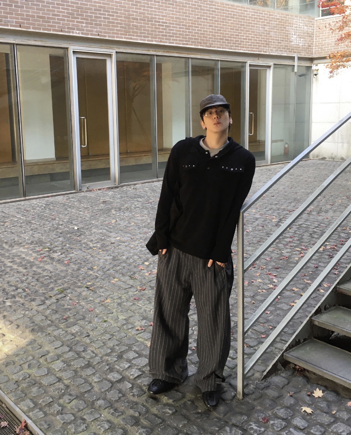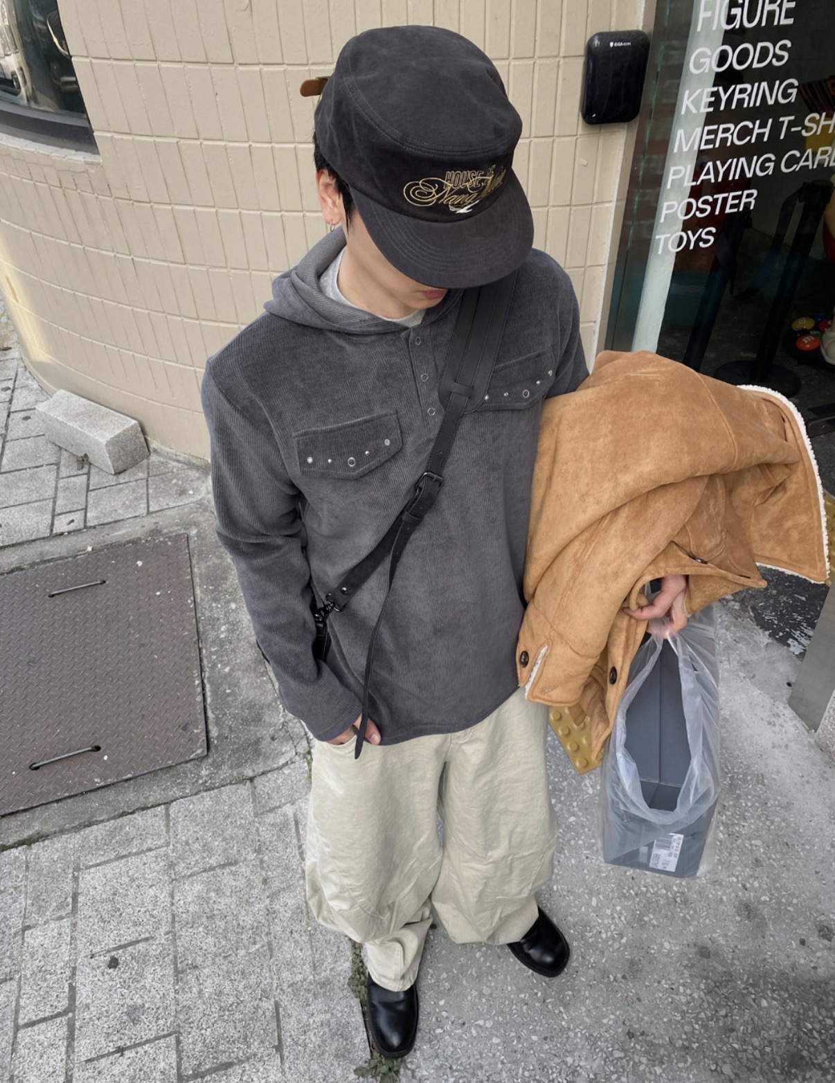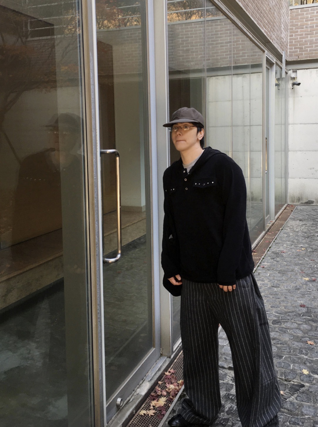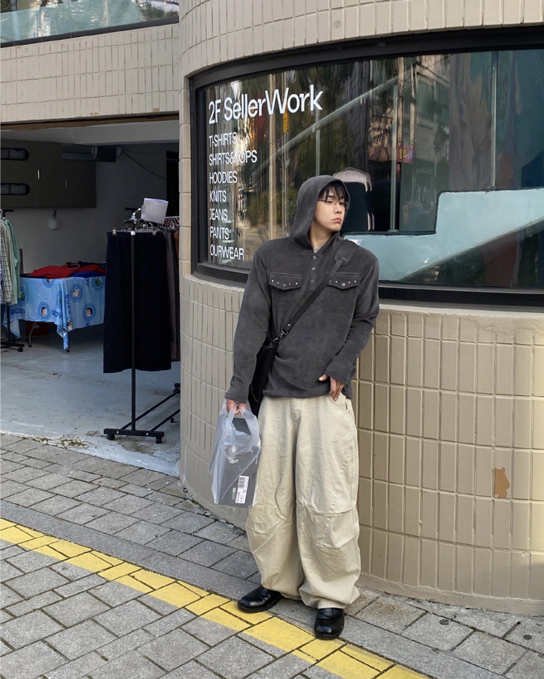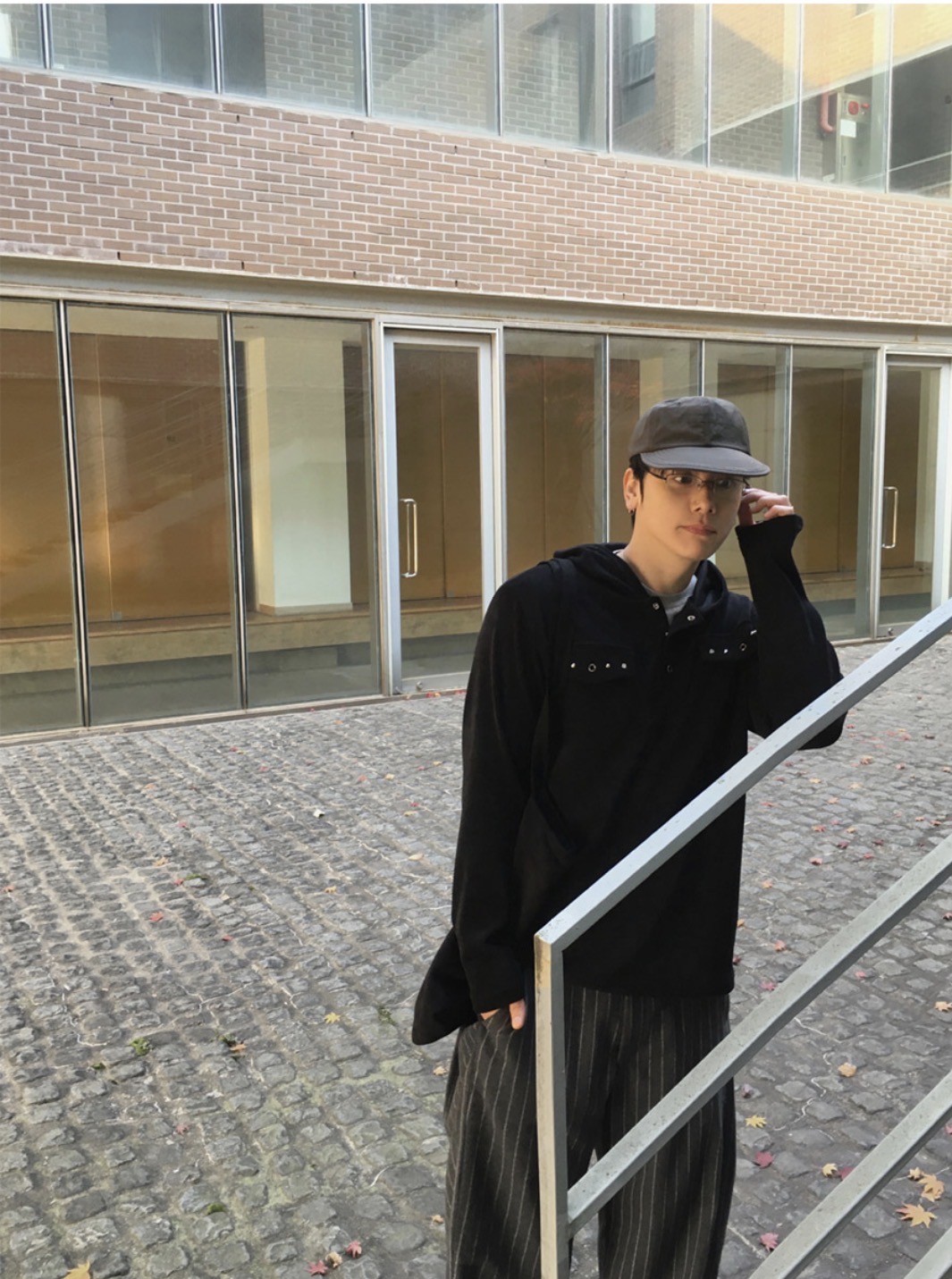 HOLY IN CODE 彈孔 假口袋 按扣 設計 連帽 長袖 上衣 (4color)