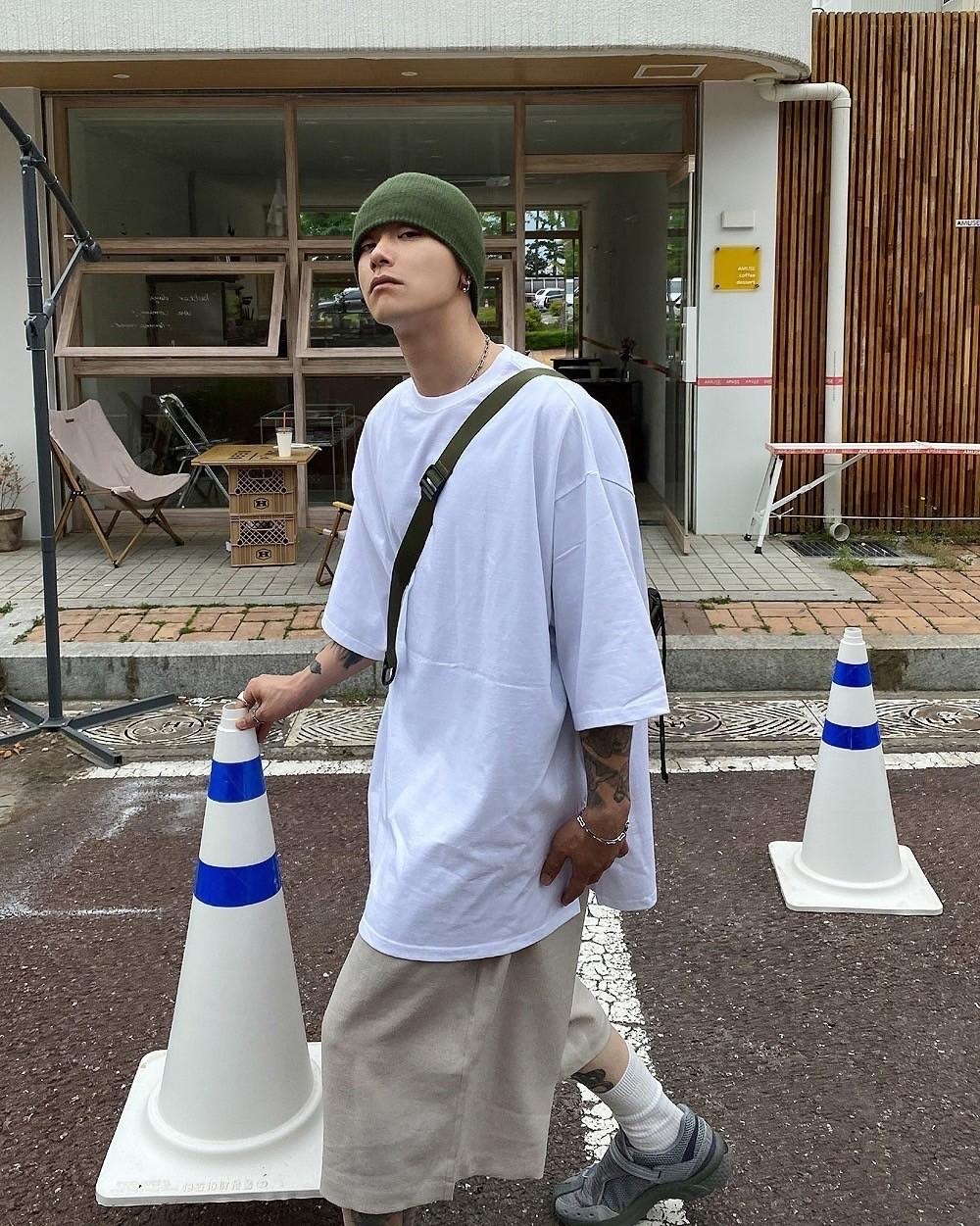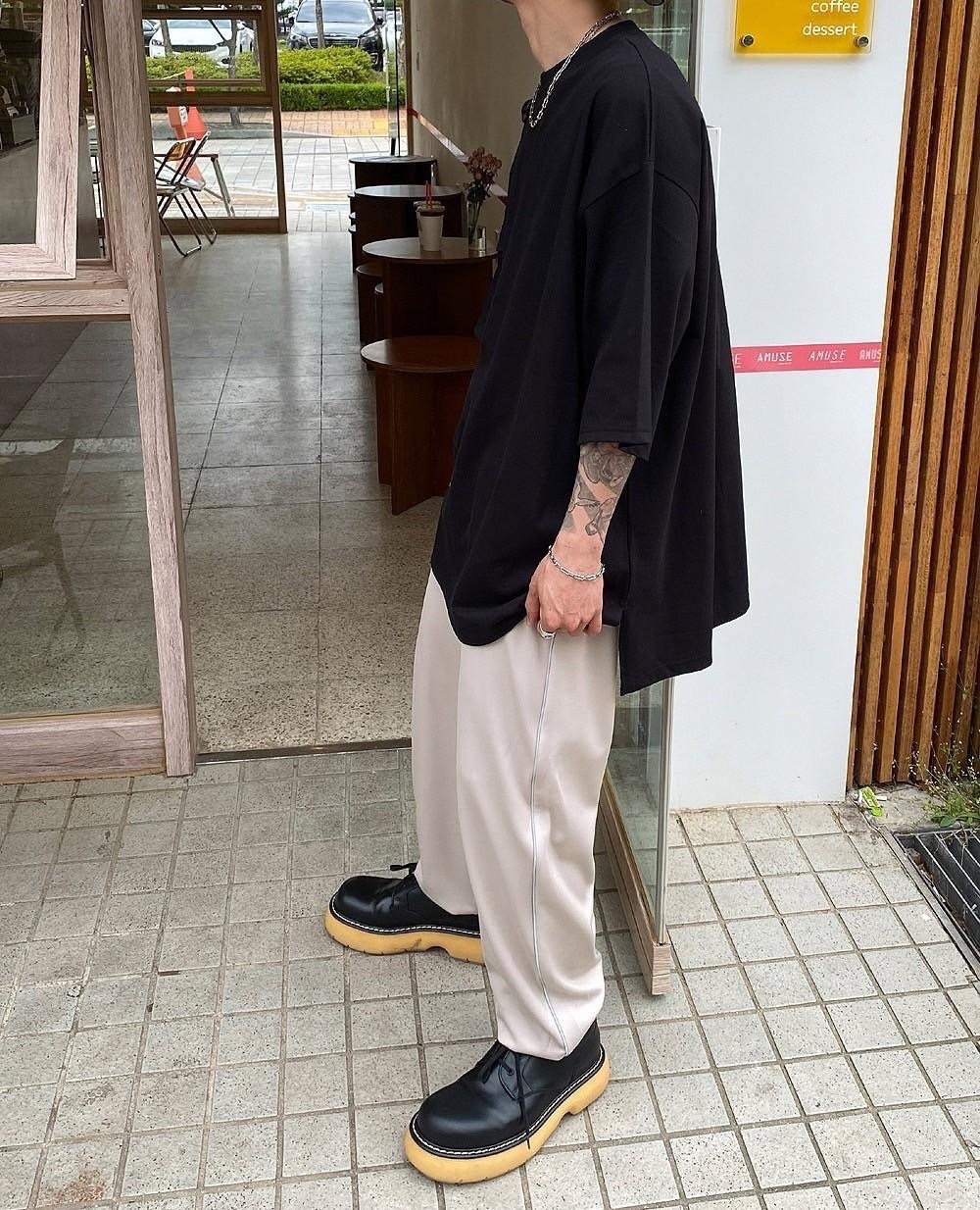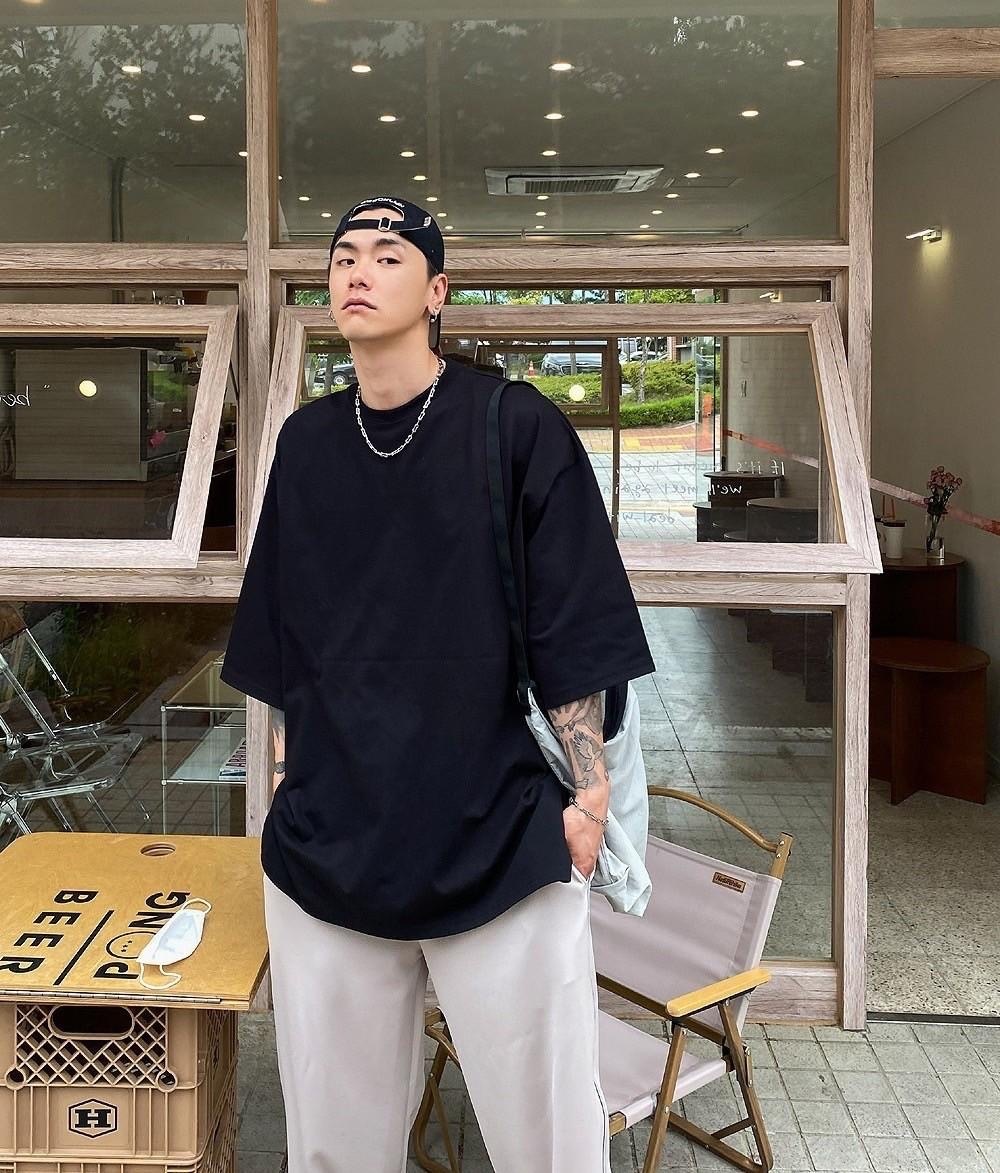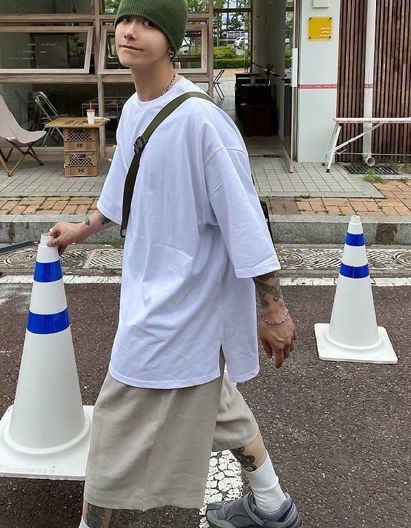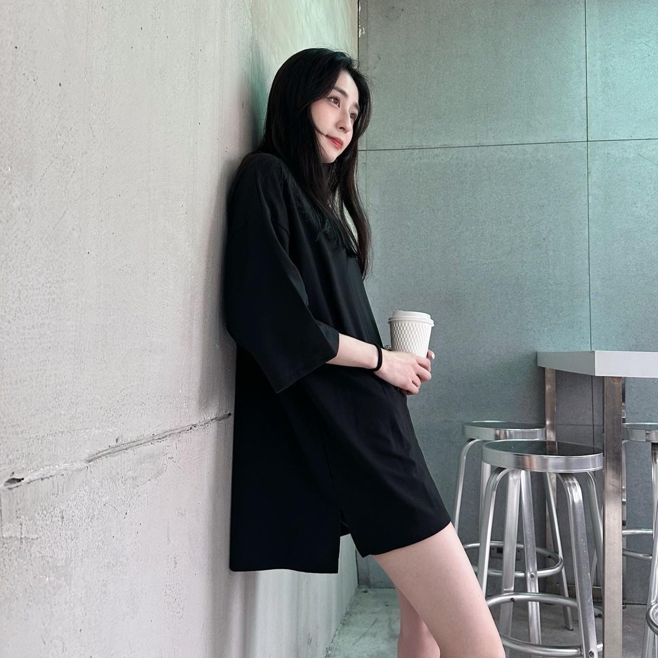 韓國 OVERSIZE 開叉 落肩 素色 短T 素T 短袖 上衣 (2color)