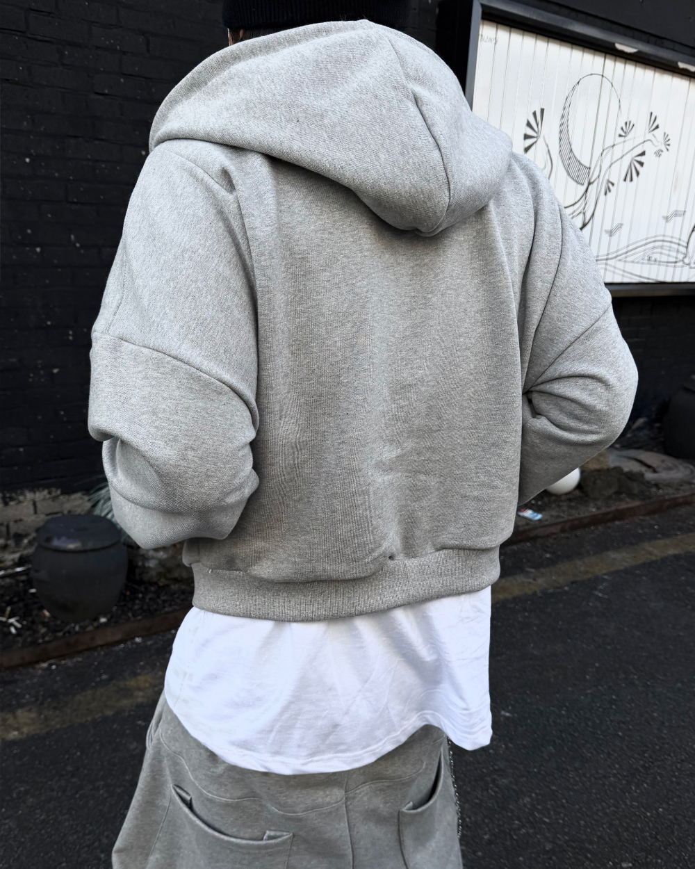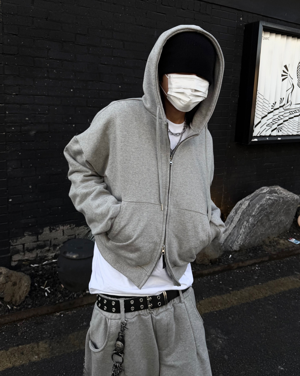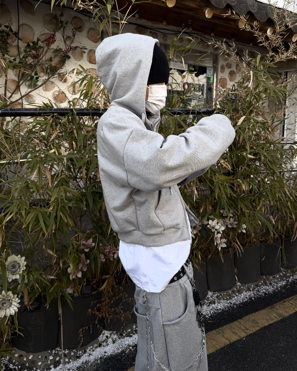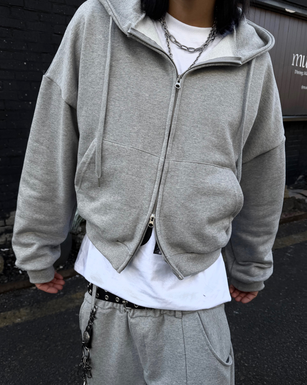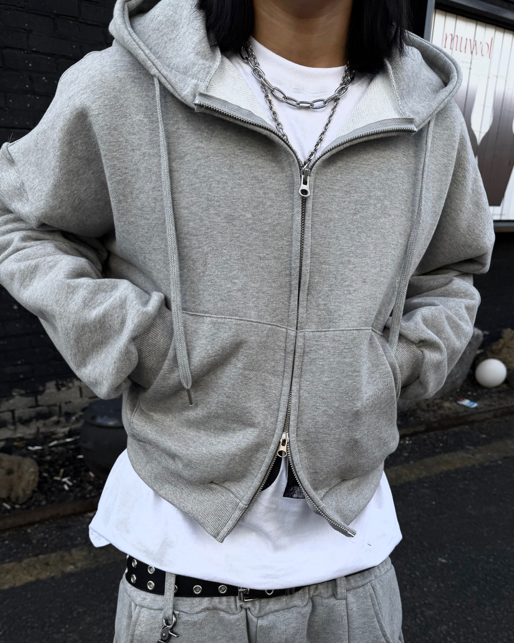 Cause closet BOXY 寬短 素色 摺線 廓形 雙拉鍊 連帽外套 (3color)