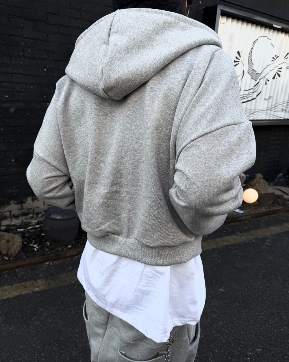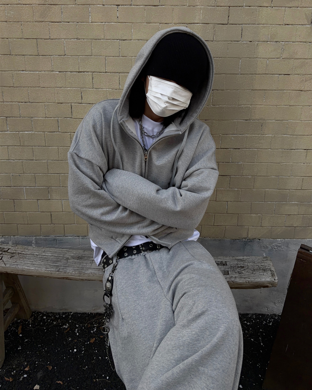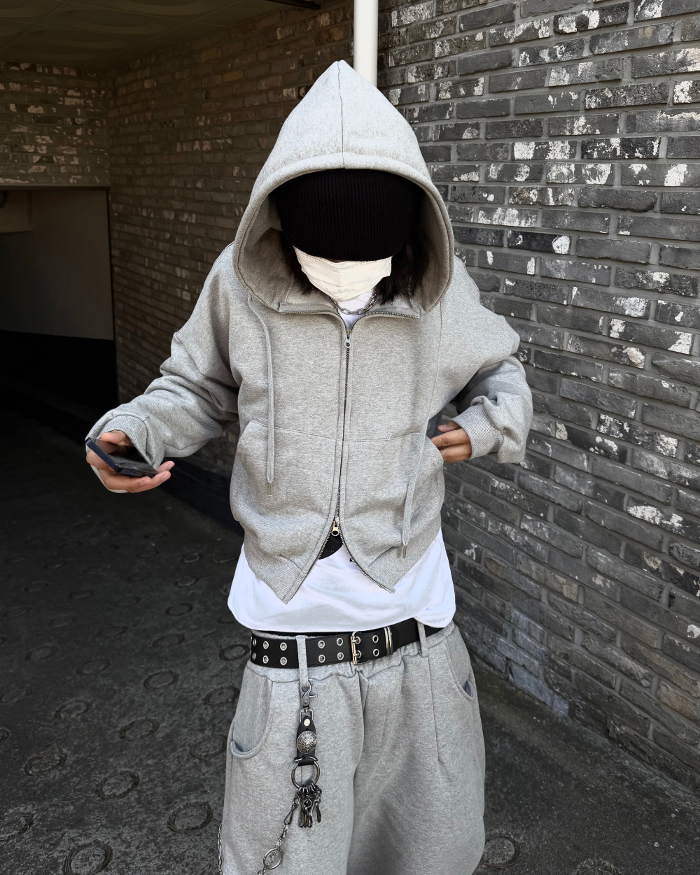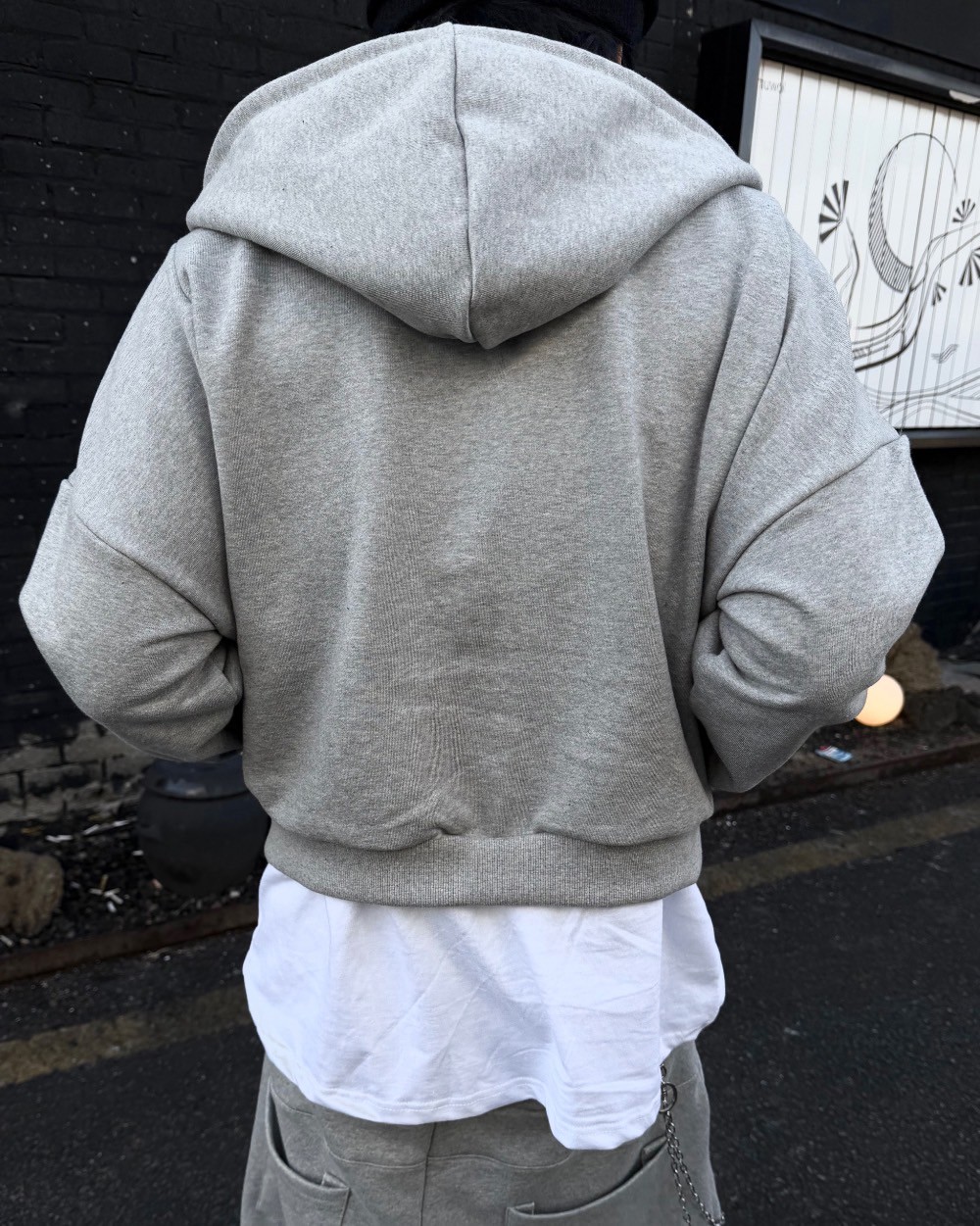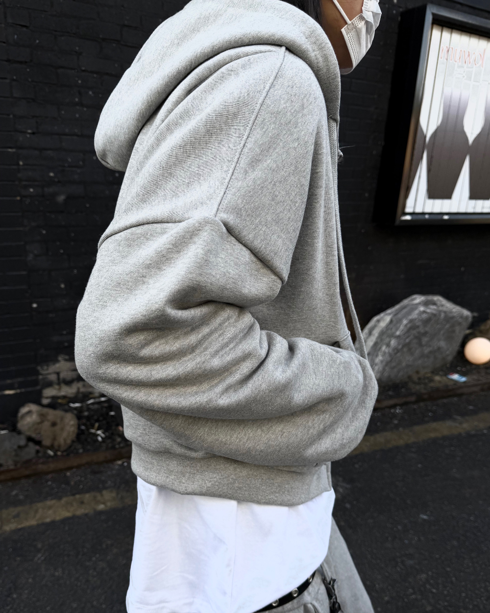 Cause closet BOXY 寬短 素色 摺線 廓形 雙拉鍊 連帽外套 (3color)