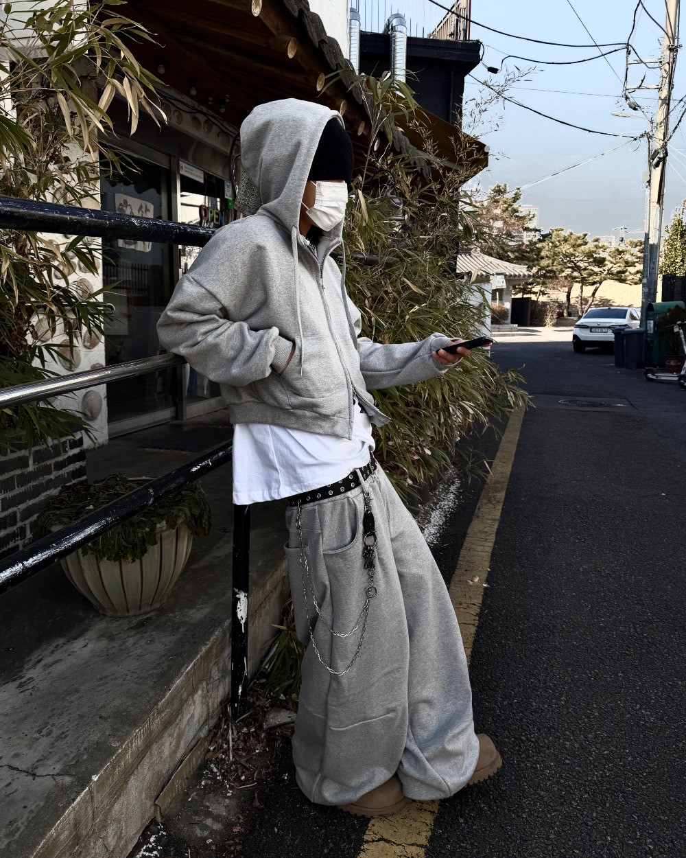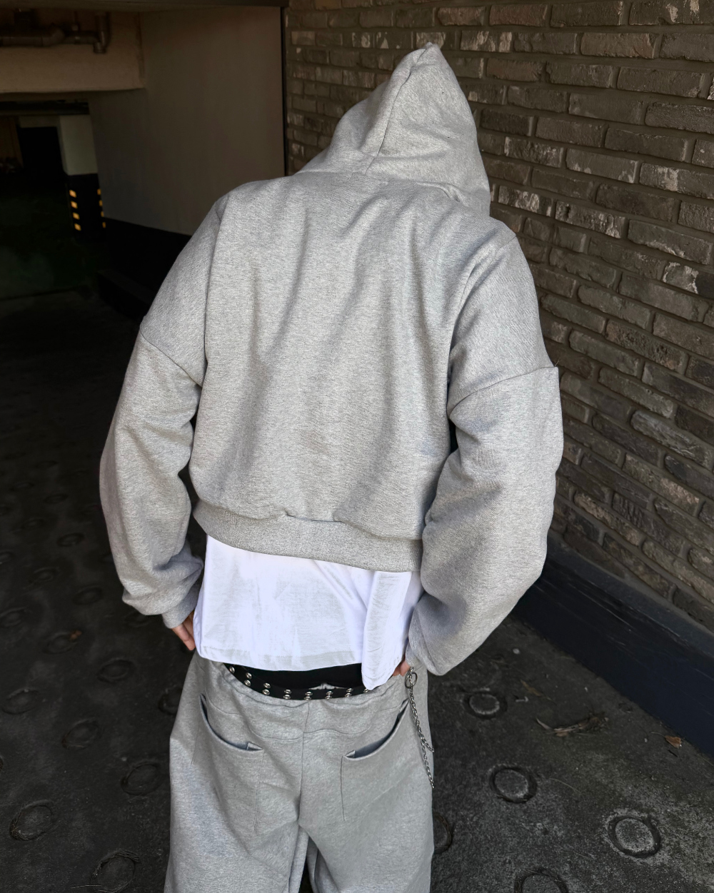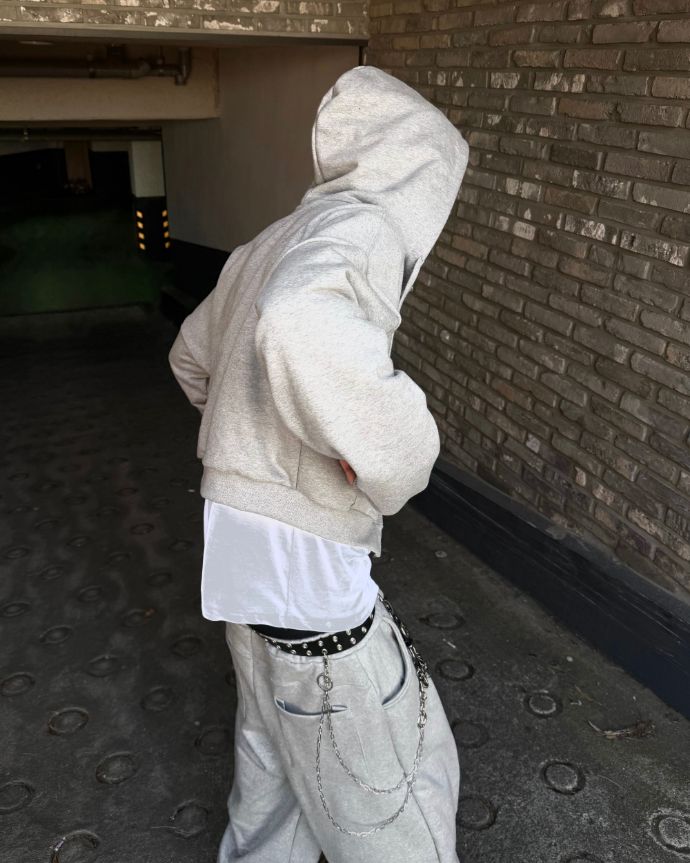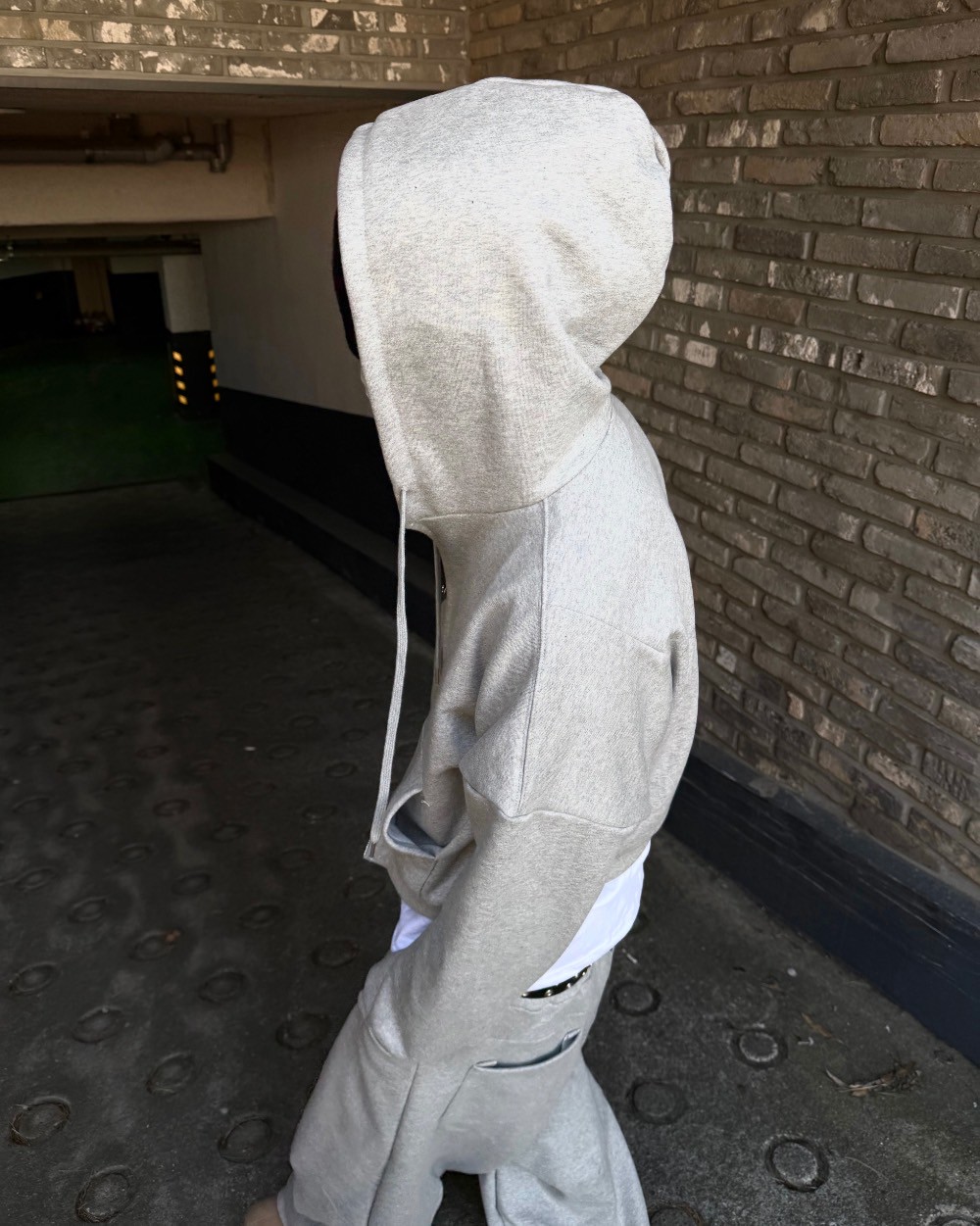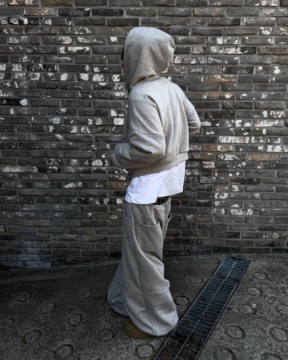 Cause closet BOXY 寬短 素色 摺線 廓形 雙拉鍊 連帽外套 (3color)