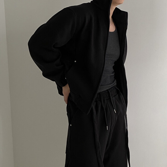 NTVT BOXY 鉚釘 鑽石 素色 重磅 立領 短版 拉鍊外套 (2color)