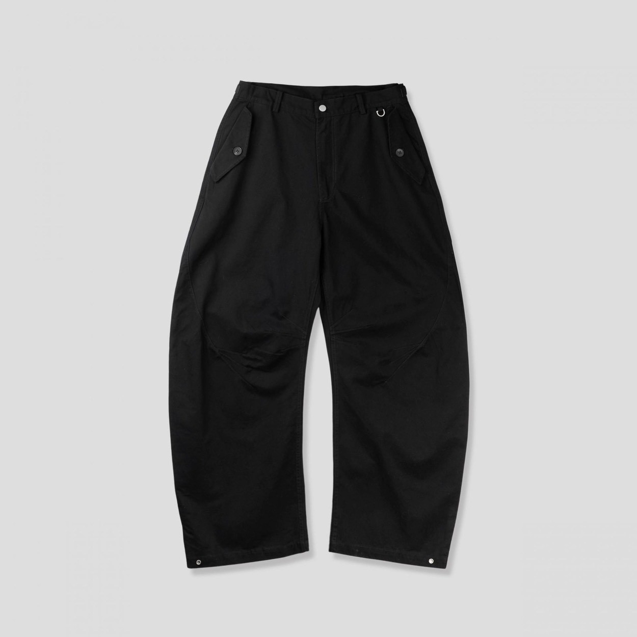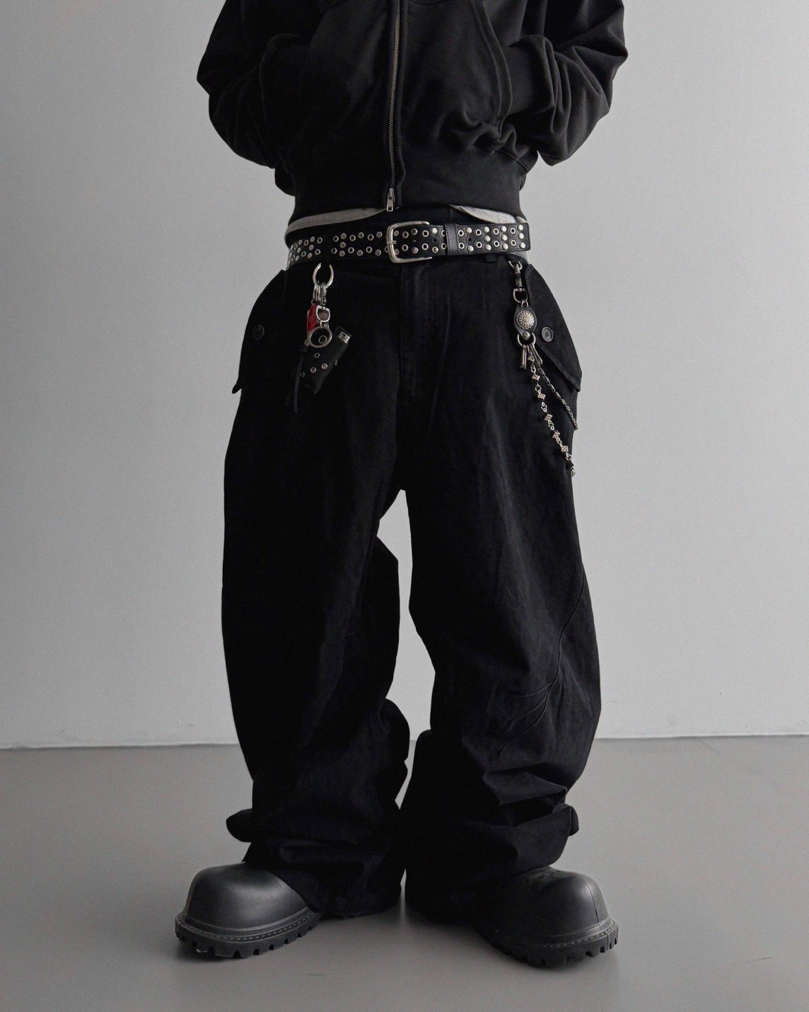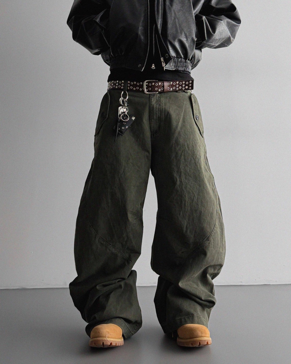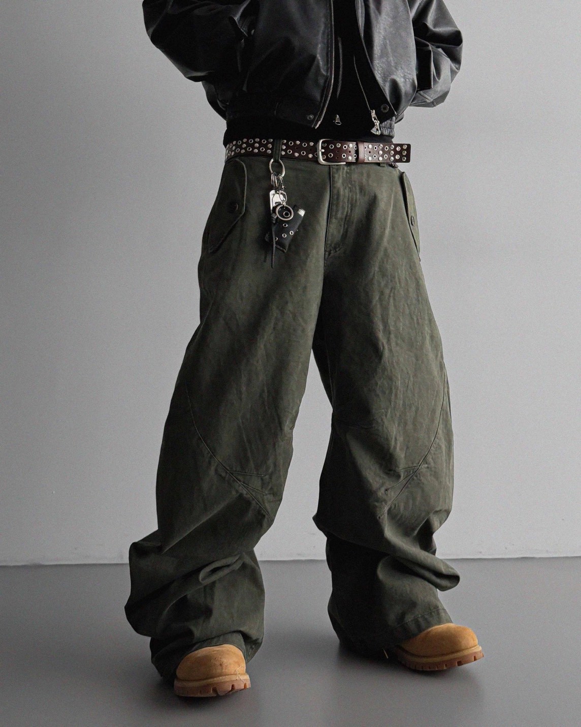 韓國 弧形 口袋 剪裁 設計 素色 堆積感 寬褲 長褲 (3color)