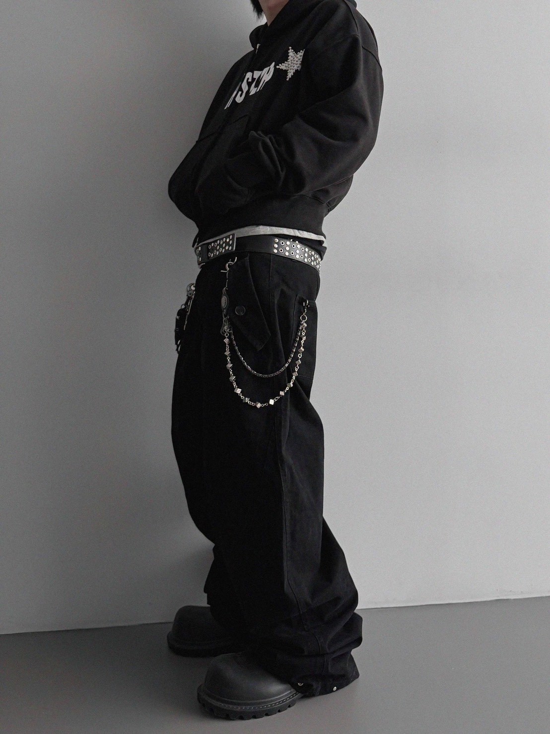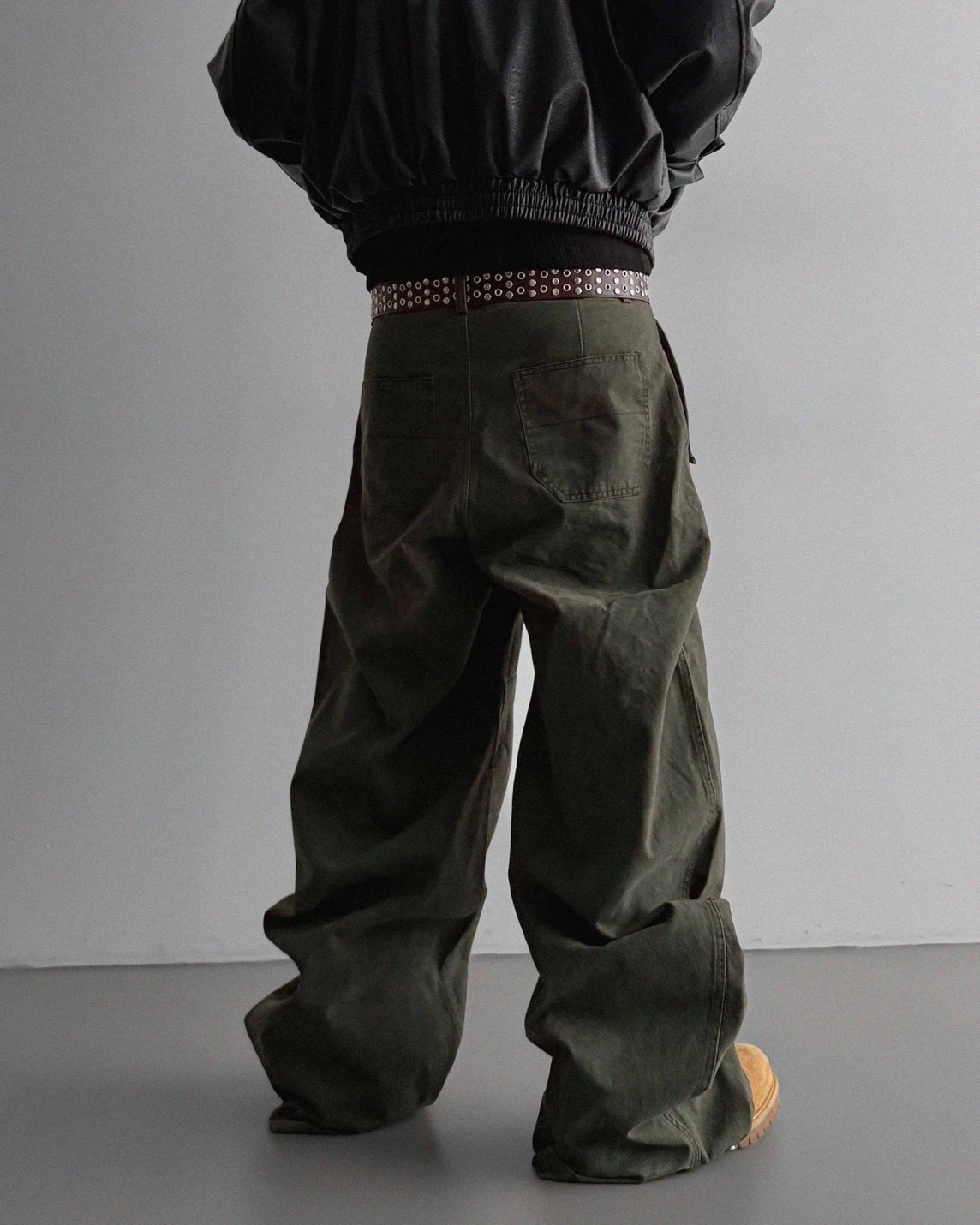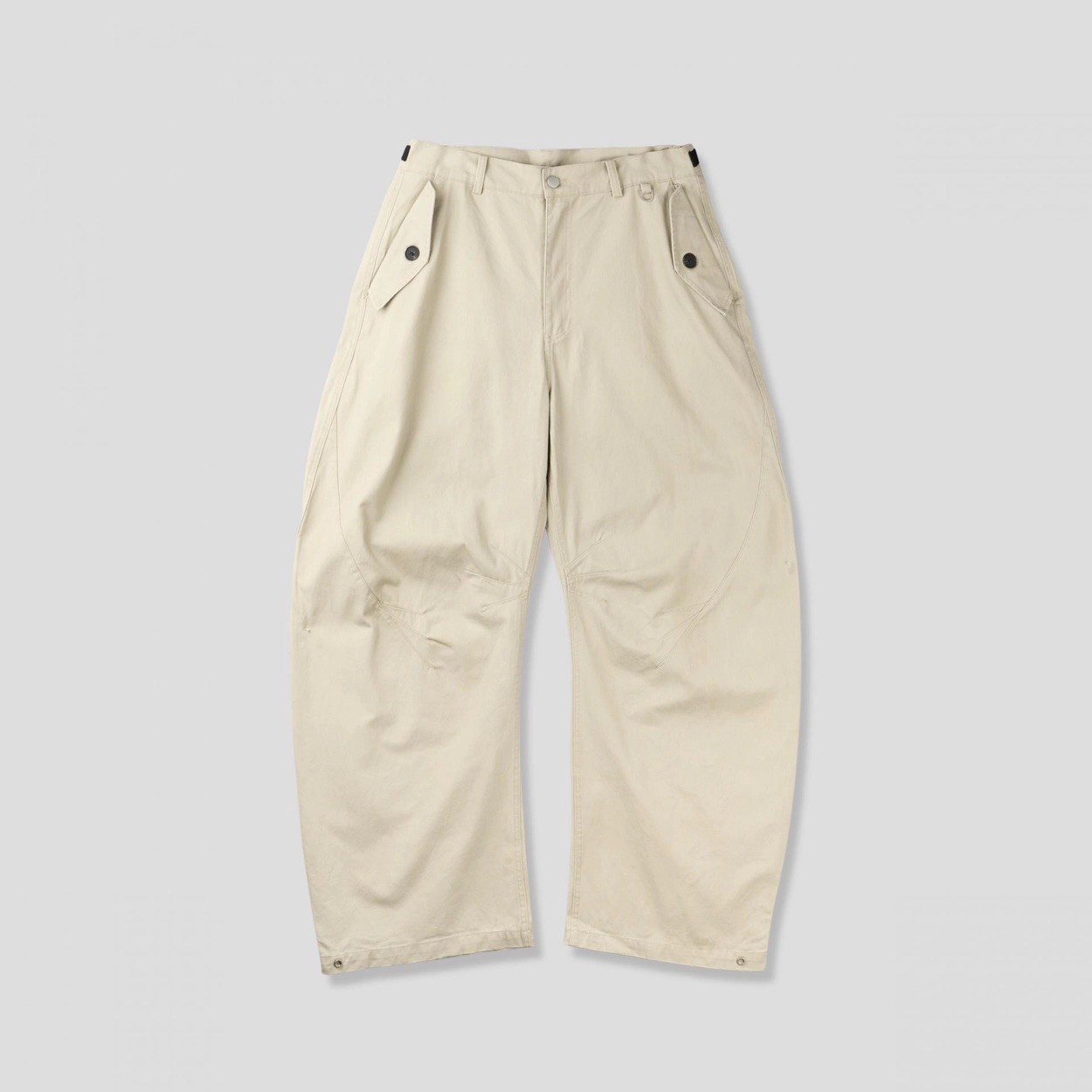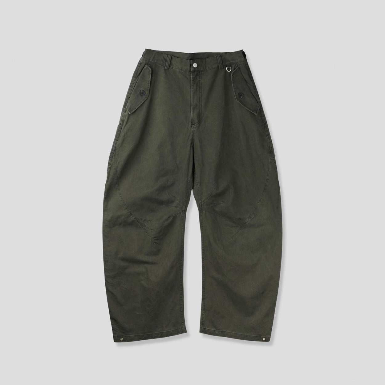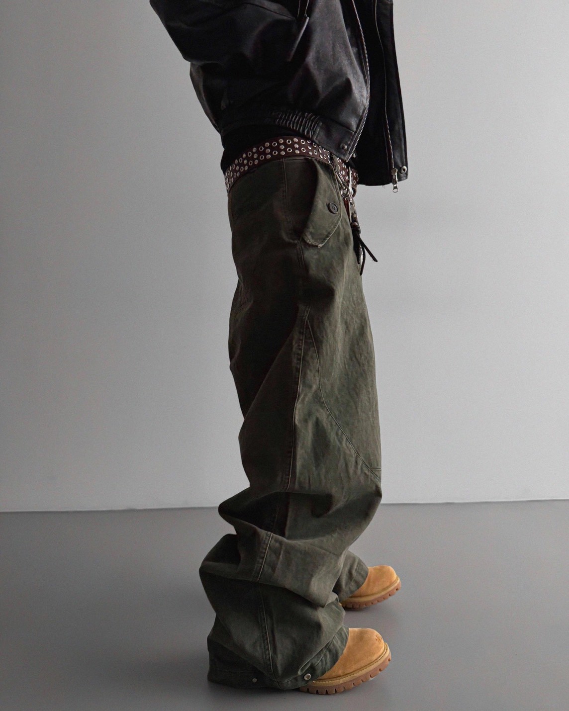 韓國 弧形 口袋 剪裁 設計 素色 堆積感 寬褲 長褲 (3color)