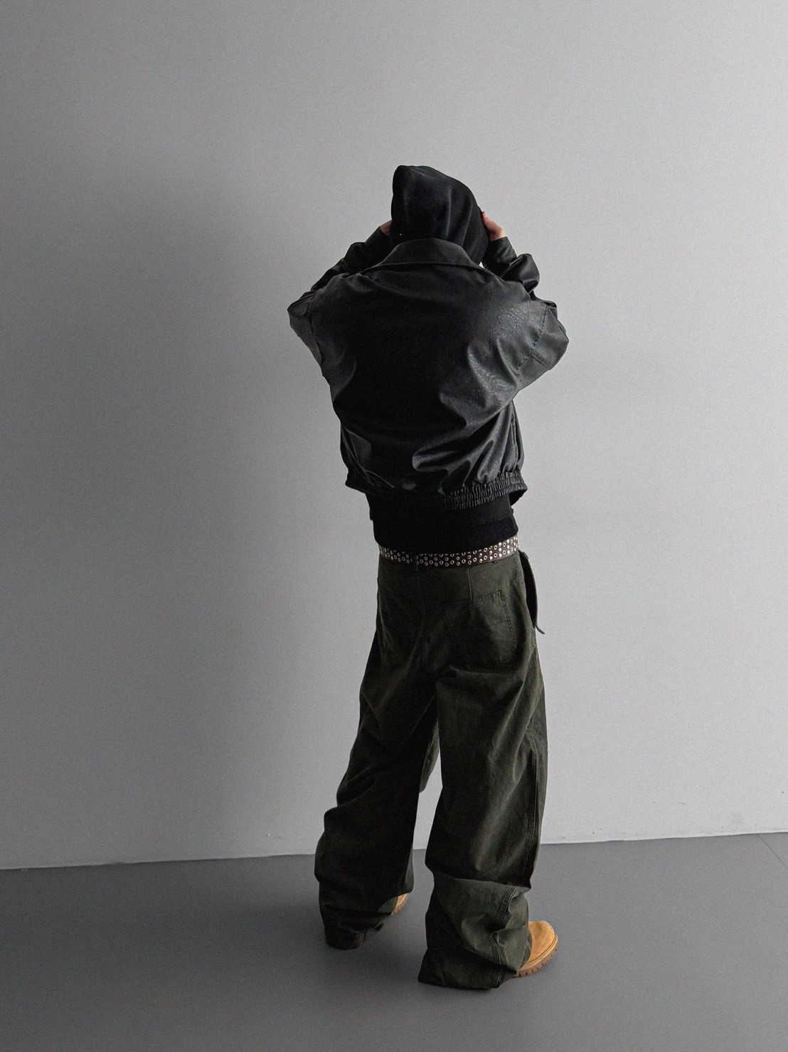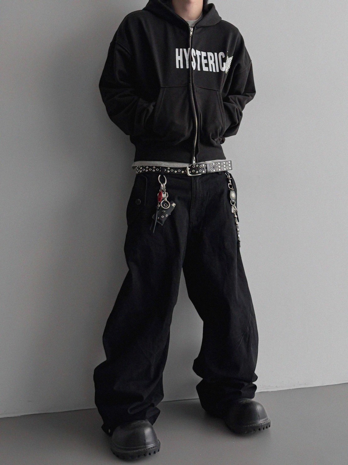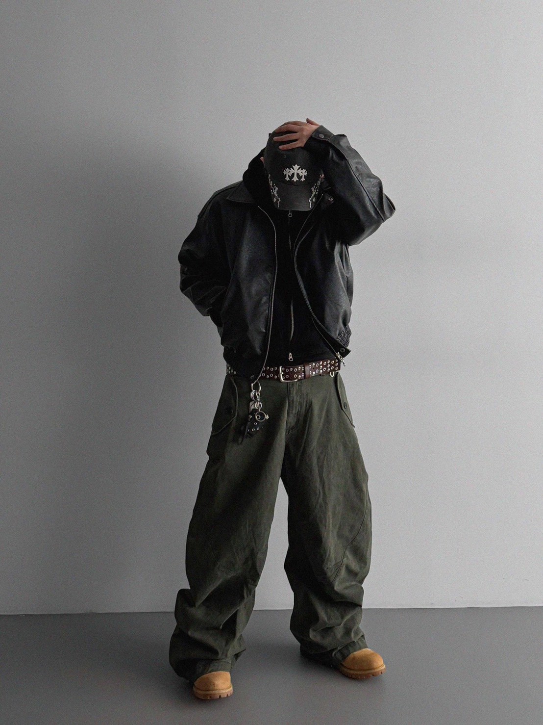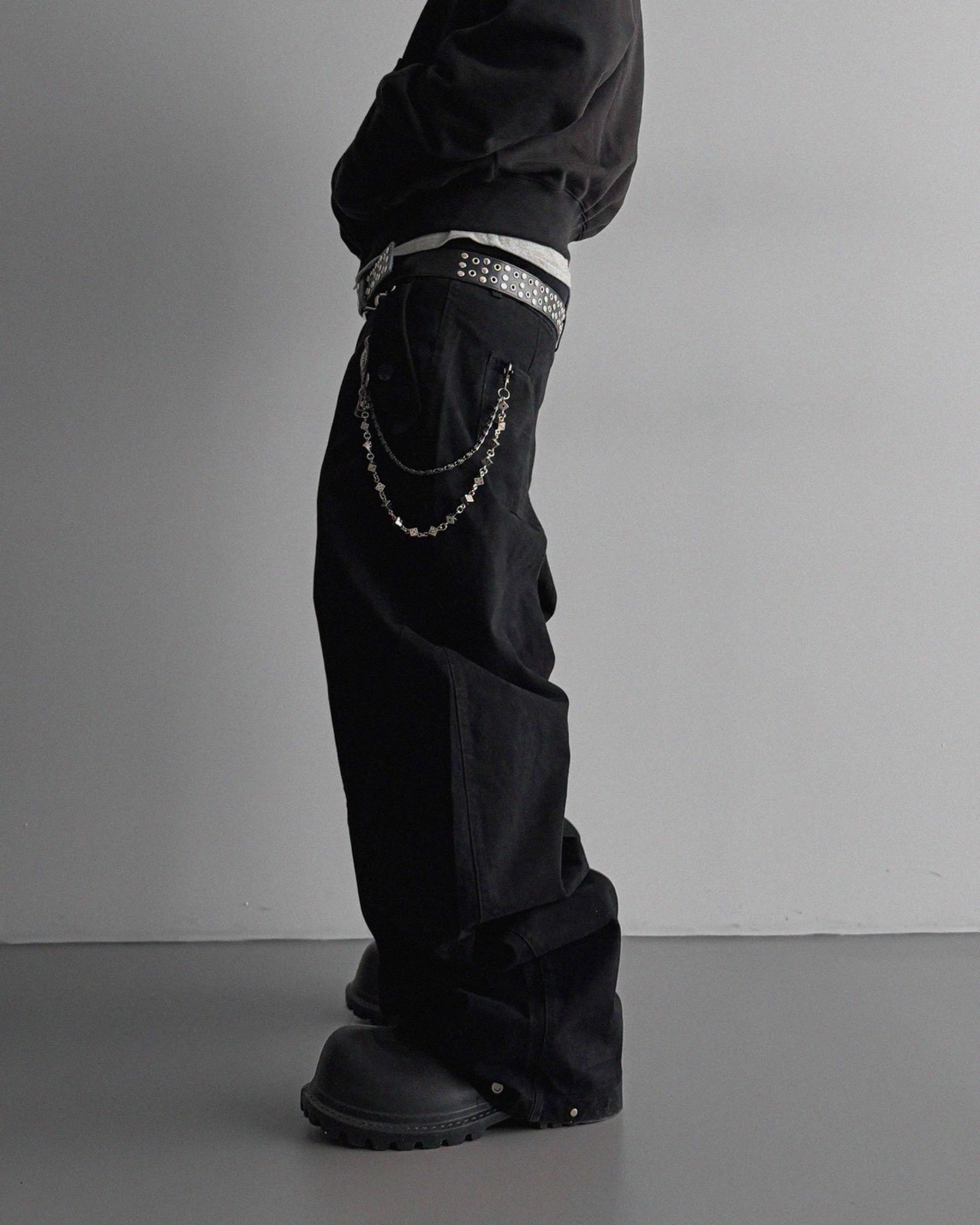 韓國 弧形 口袋 剪裁 設計 素色 堆積感 寬褲 長褲 (3color)