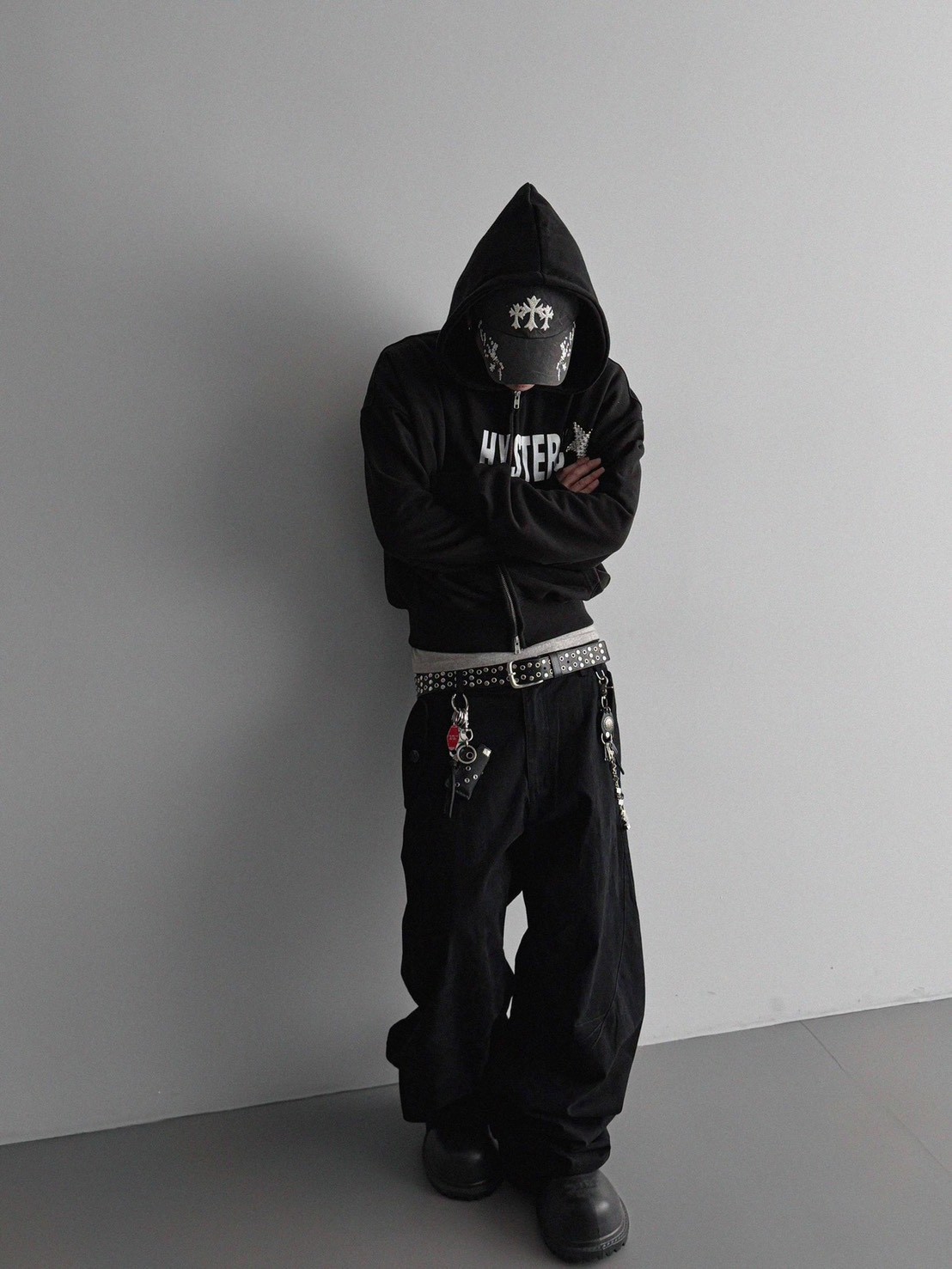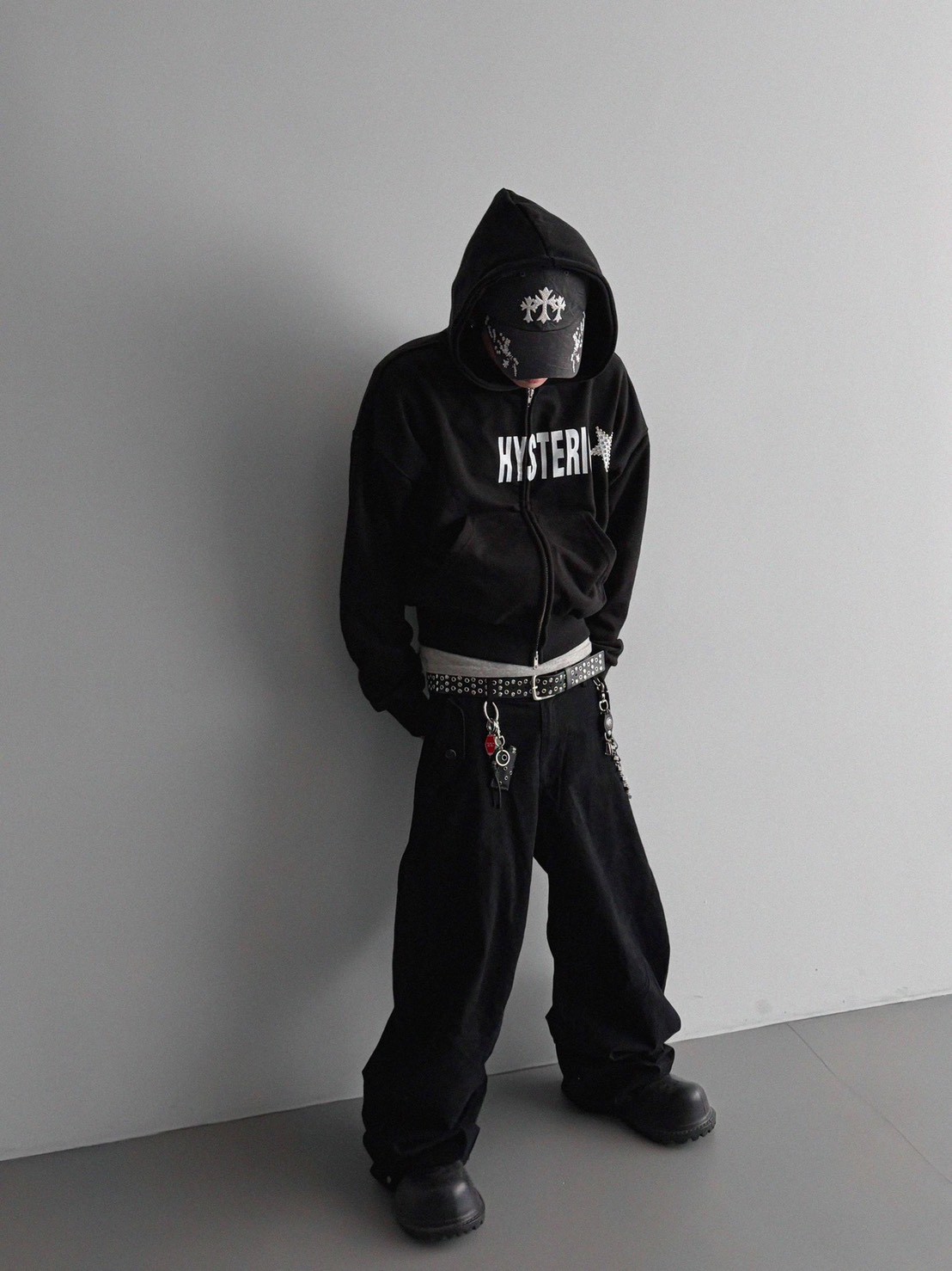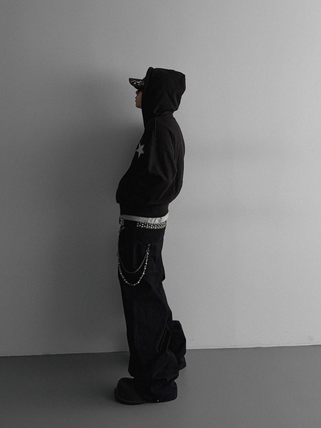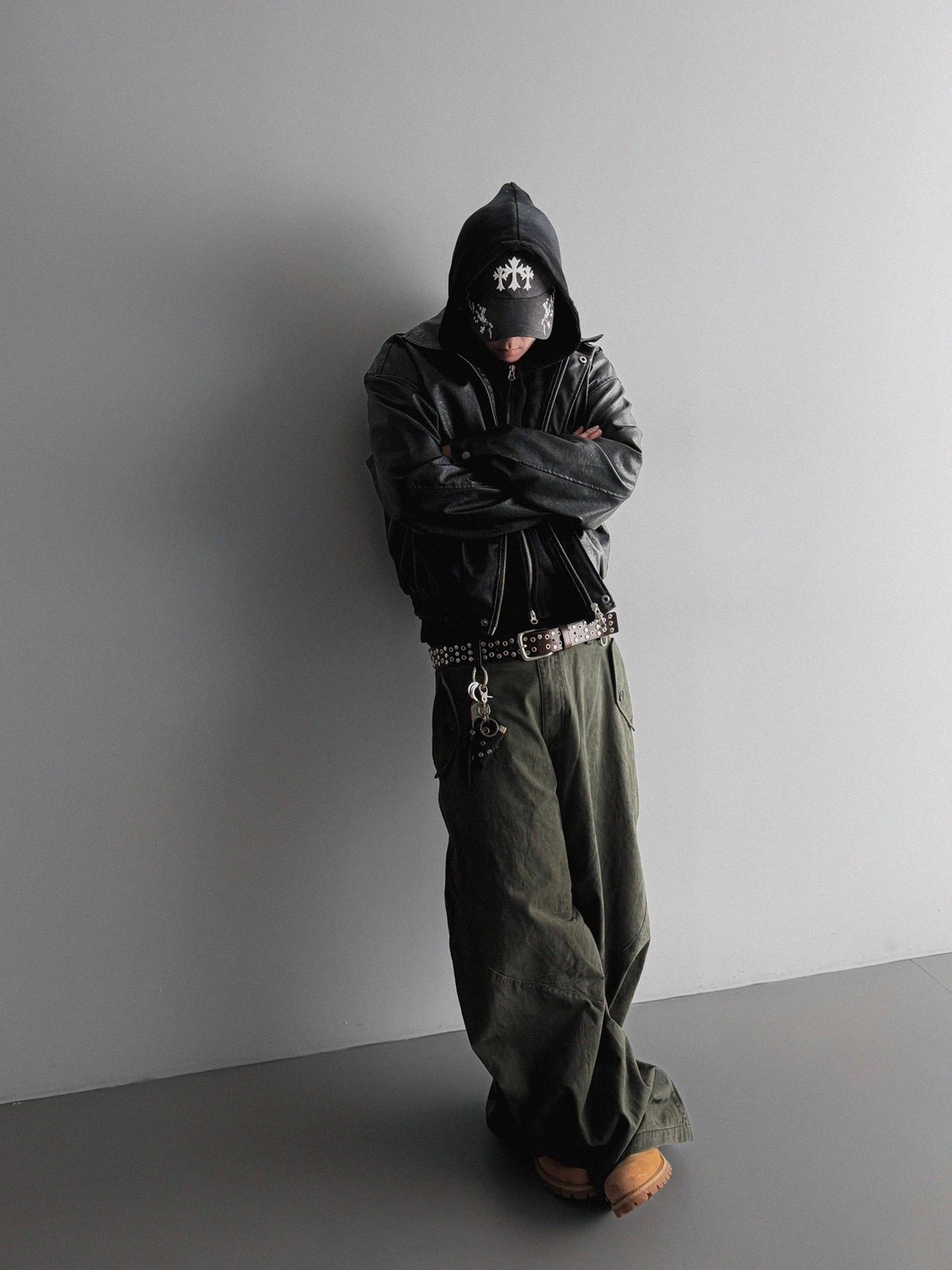 韓國 弧形 口袋 剪裁 設計 素色 堆積感 寬褲 長褲 (3color)