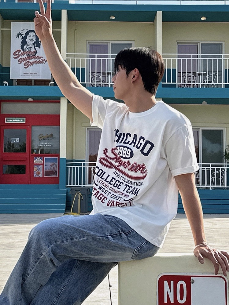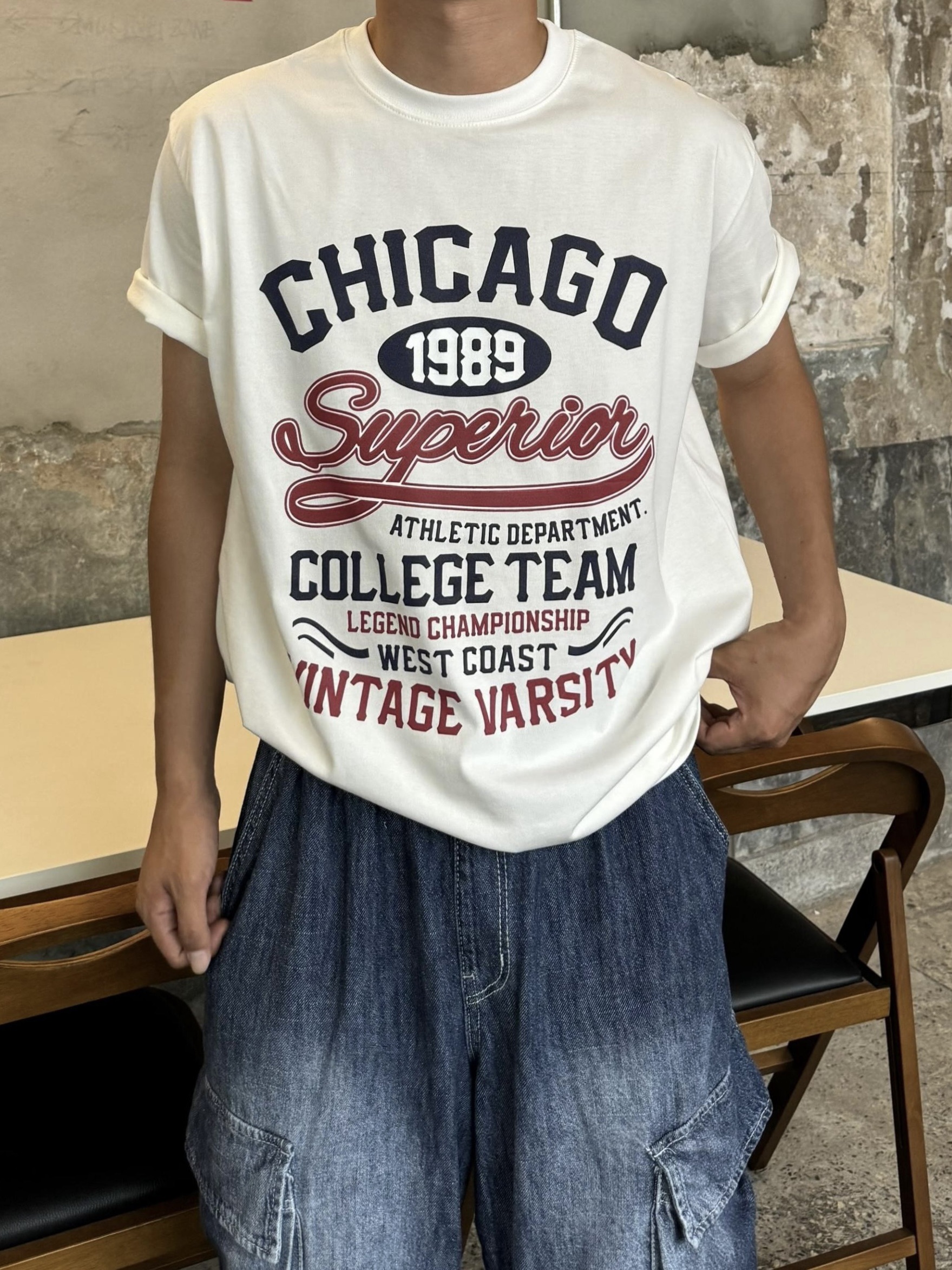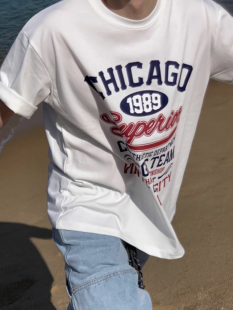 韓國 CHICAGO 芝加哥 1989 美式 LOGO 文字 短T 短袖 上衣 (2color)