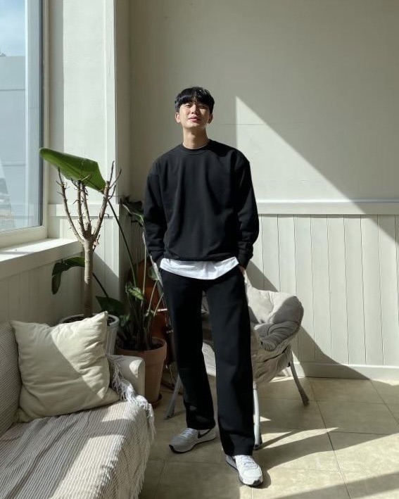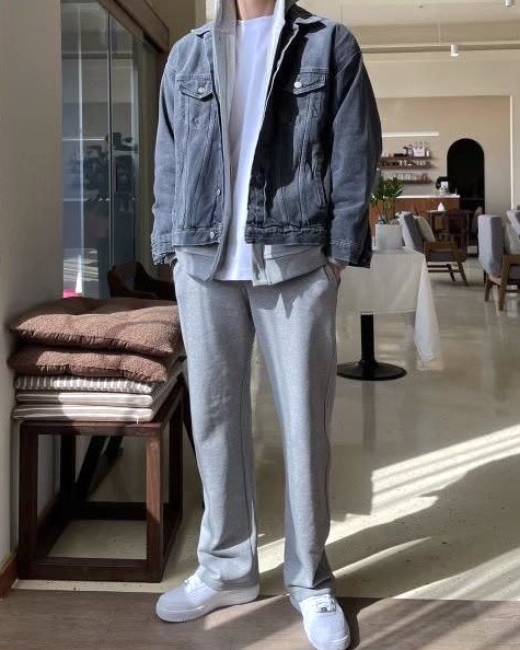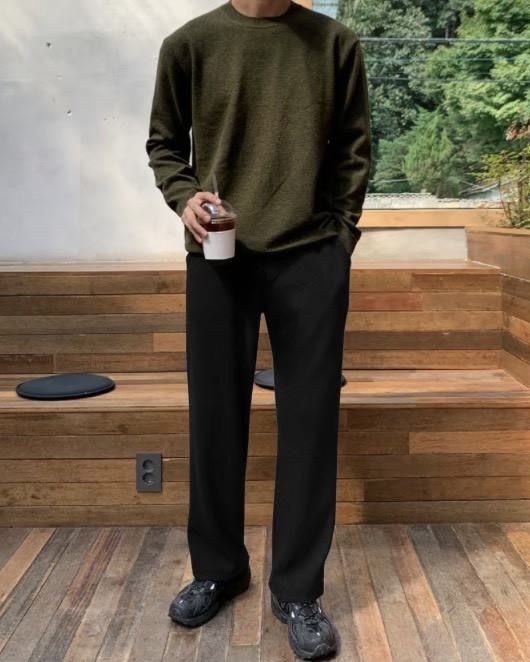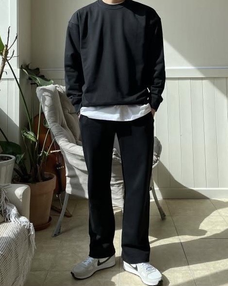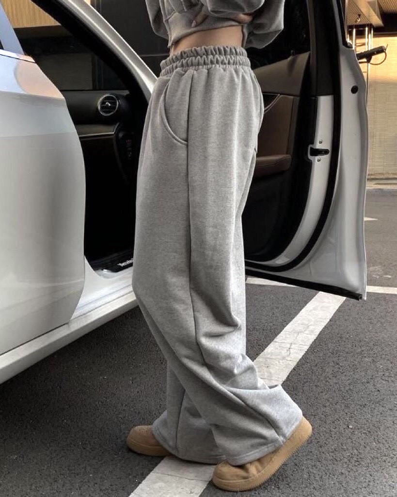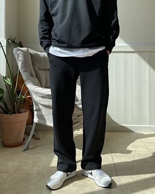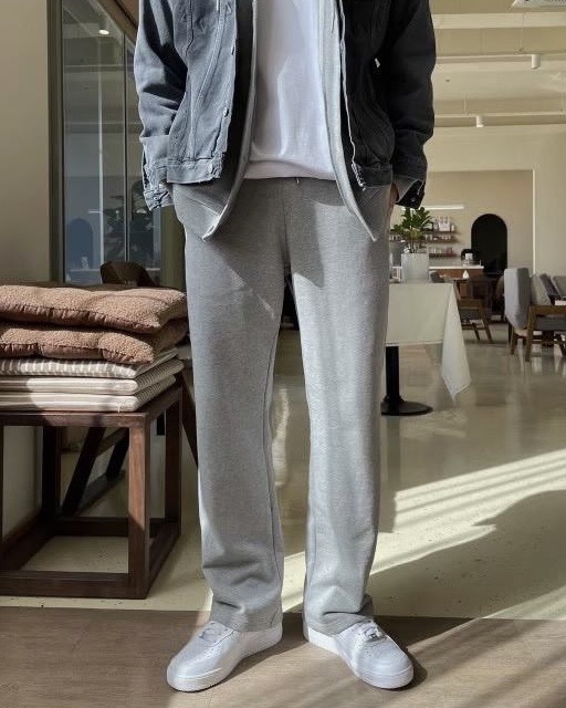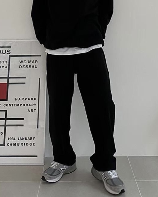 韓國 BASIC 懶人 基本 素色 直筒 闊腿 棉褲 (2color)