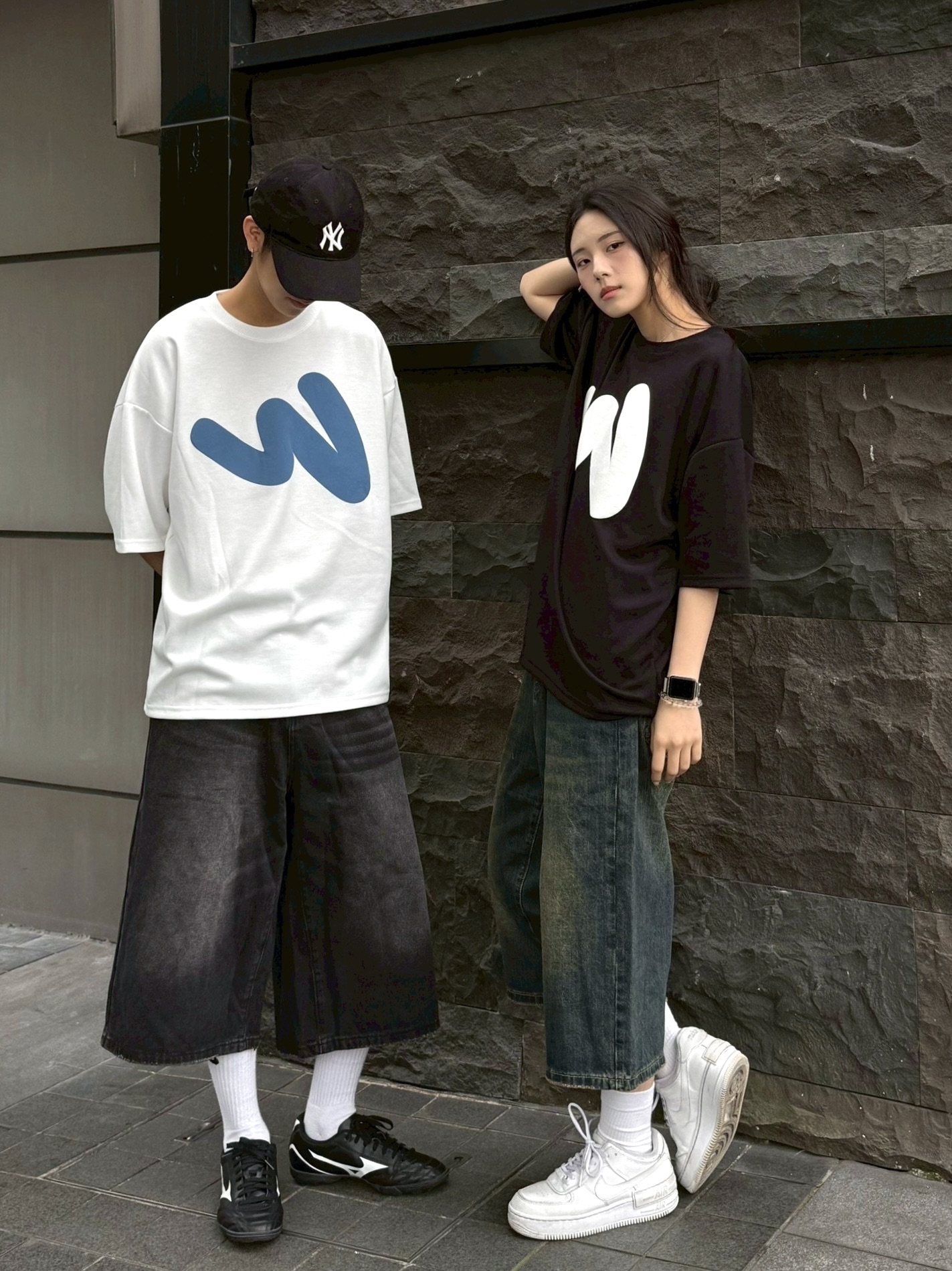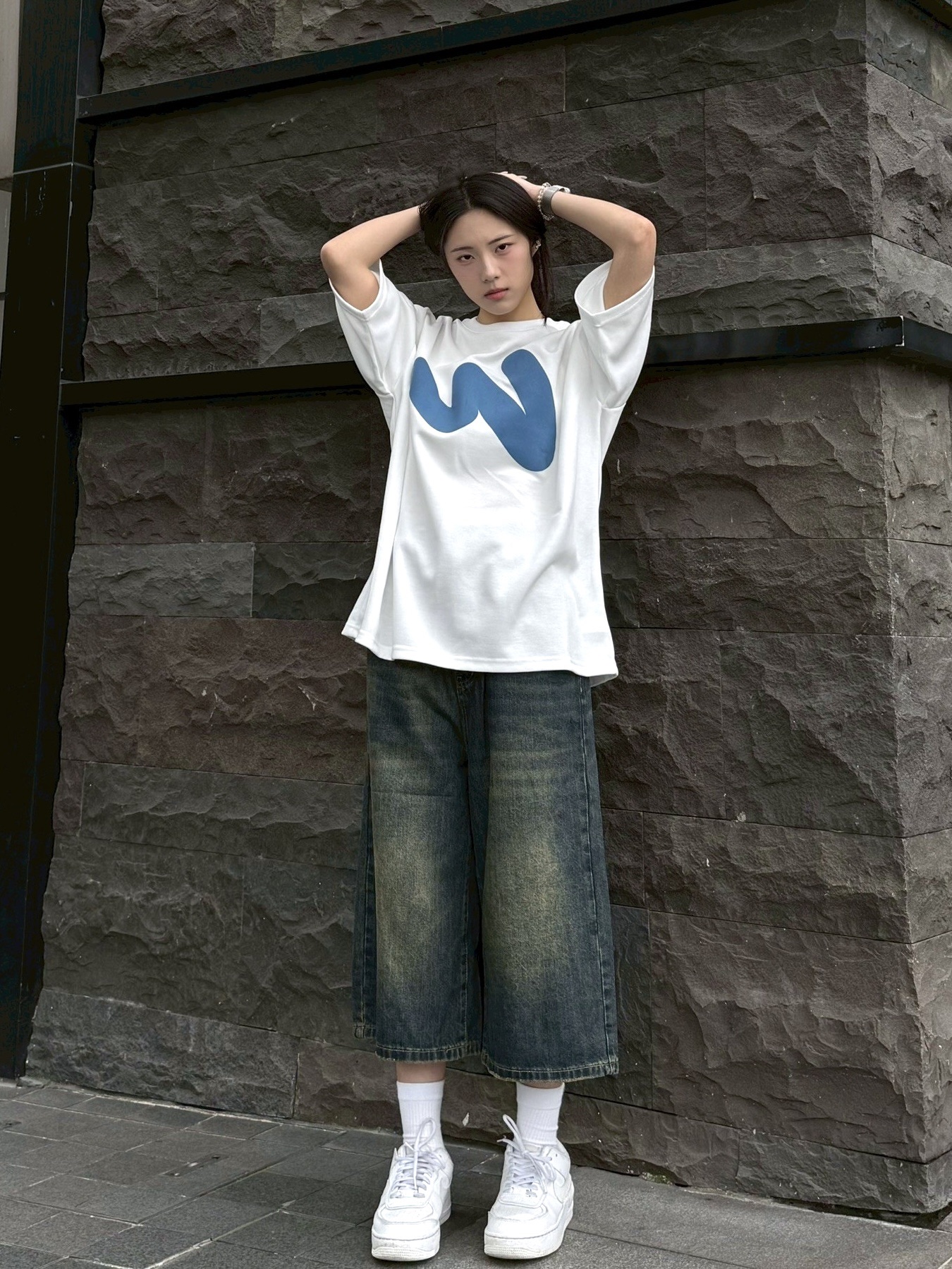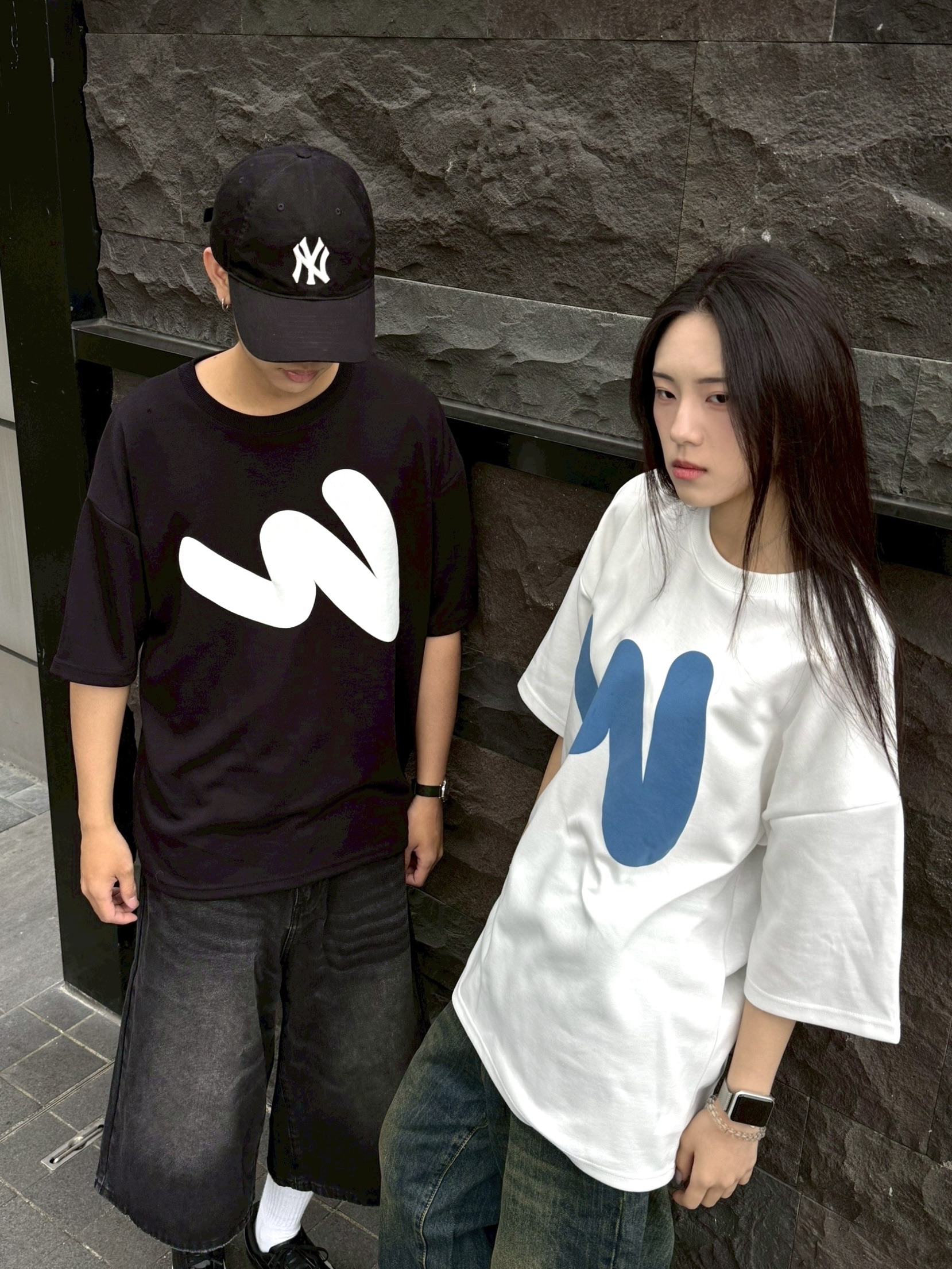 韓國 Q體 手繪 W發泡 LOGO 短T 短袖 上衣 (2color)