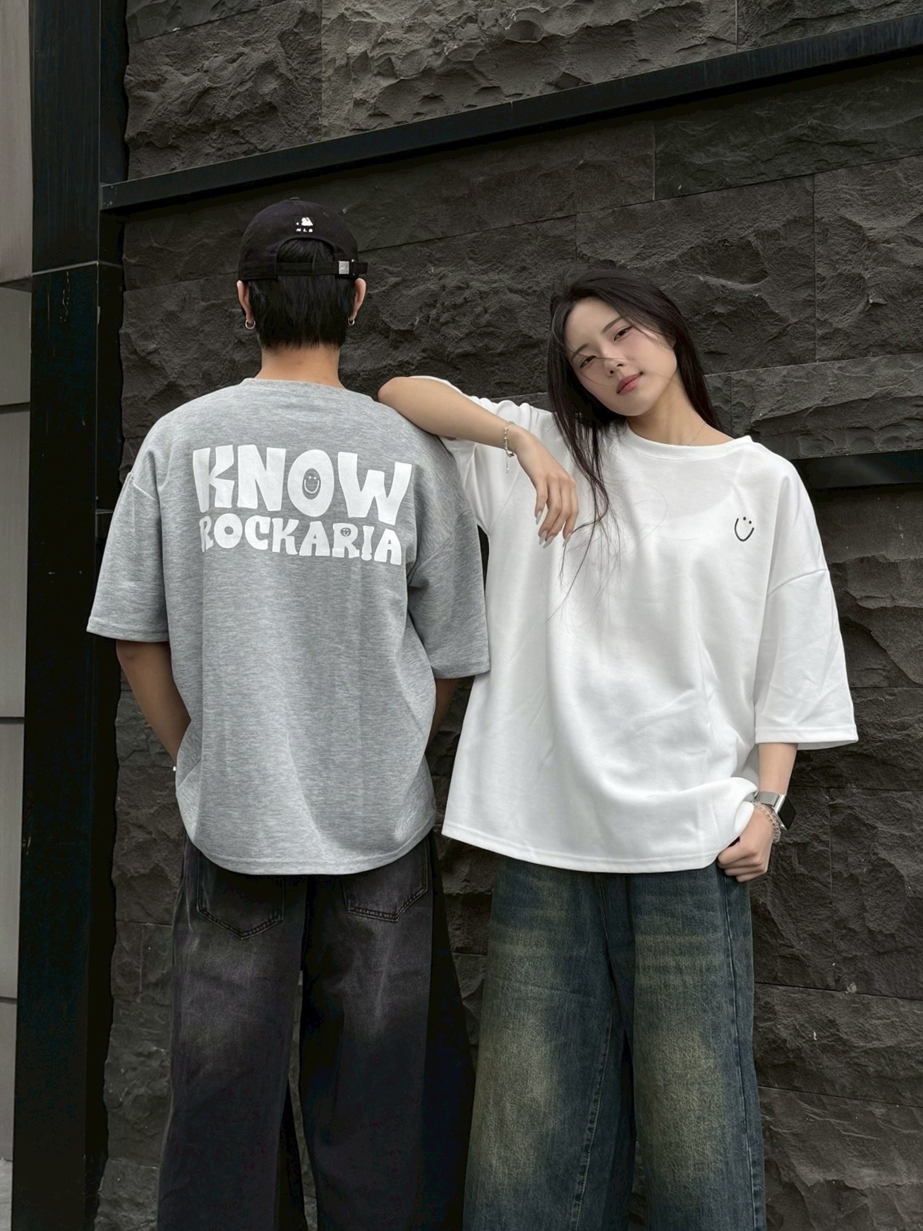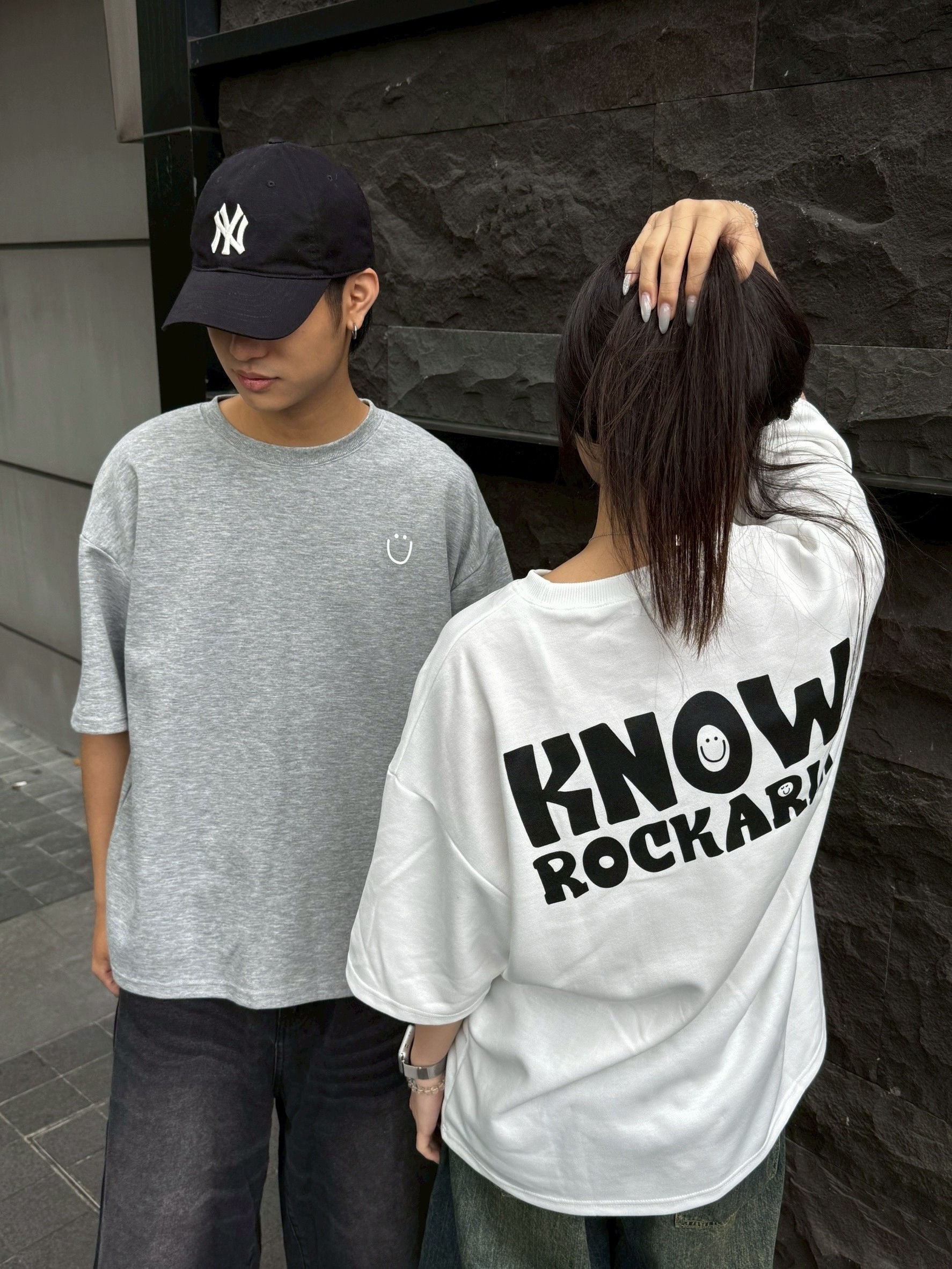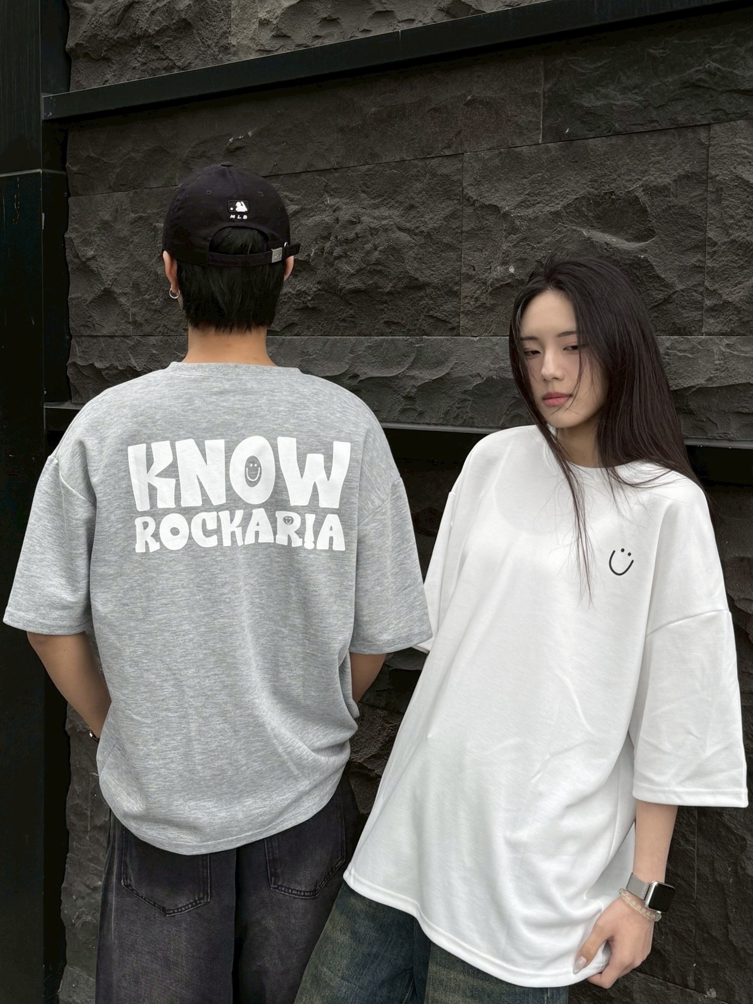 韓國 KNOW ROCKARIA 微笑 小小臉 圖案 文字 短T 短袖 上衣 (2color)