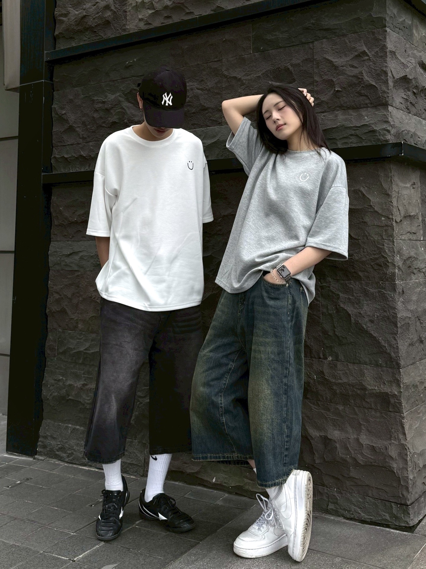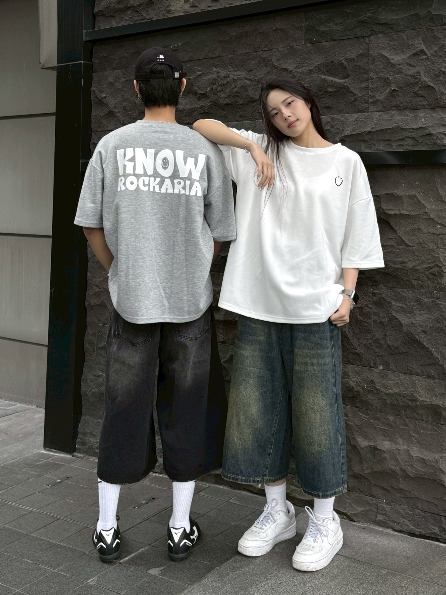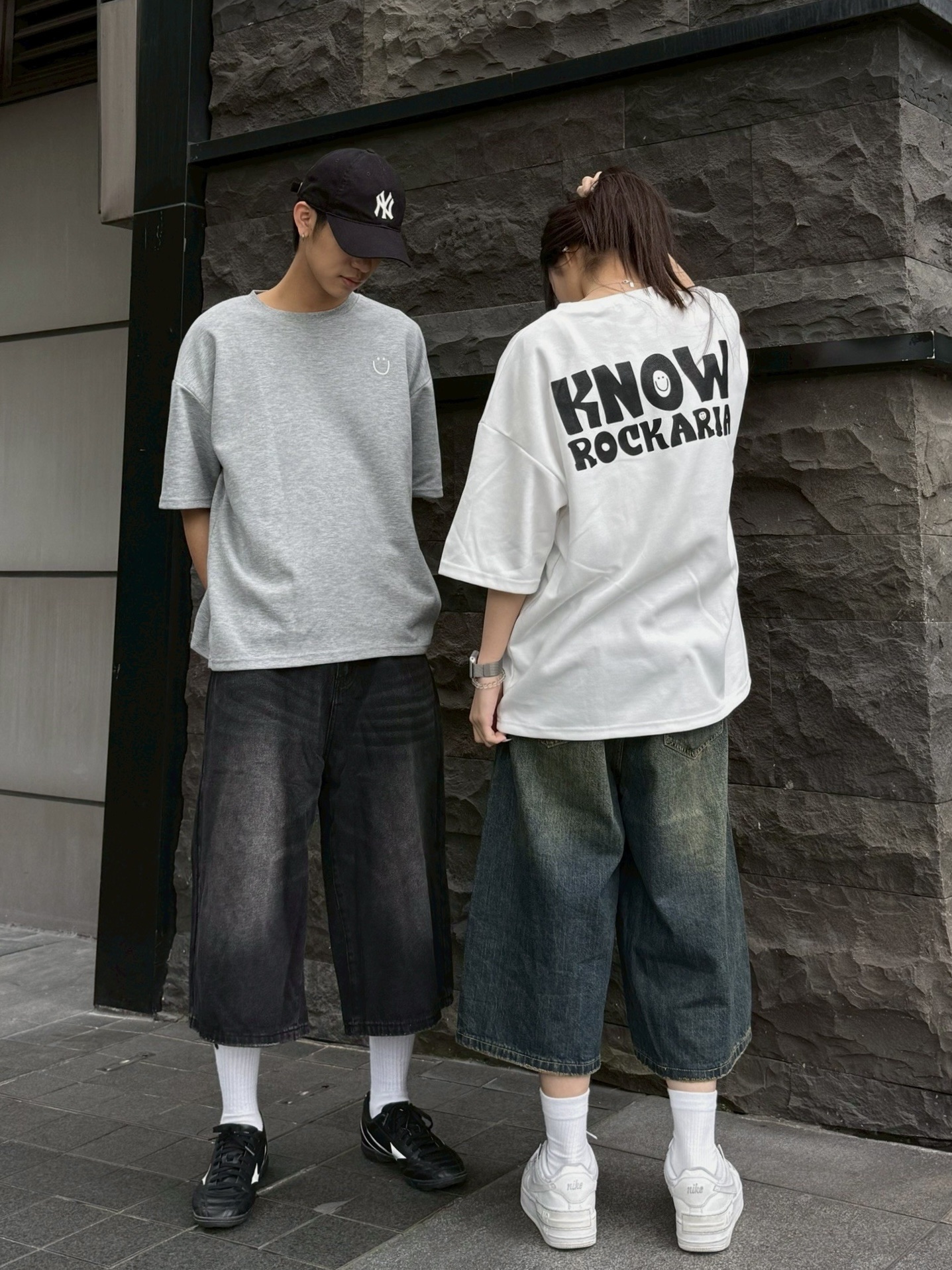 韓國 KNOW ROCKARIA 微笑 小小臉 圖案 文字 短T 短袖 上衣 (2color)
