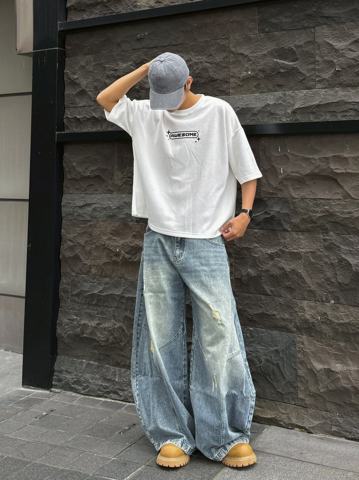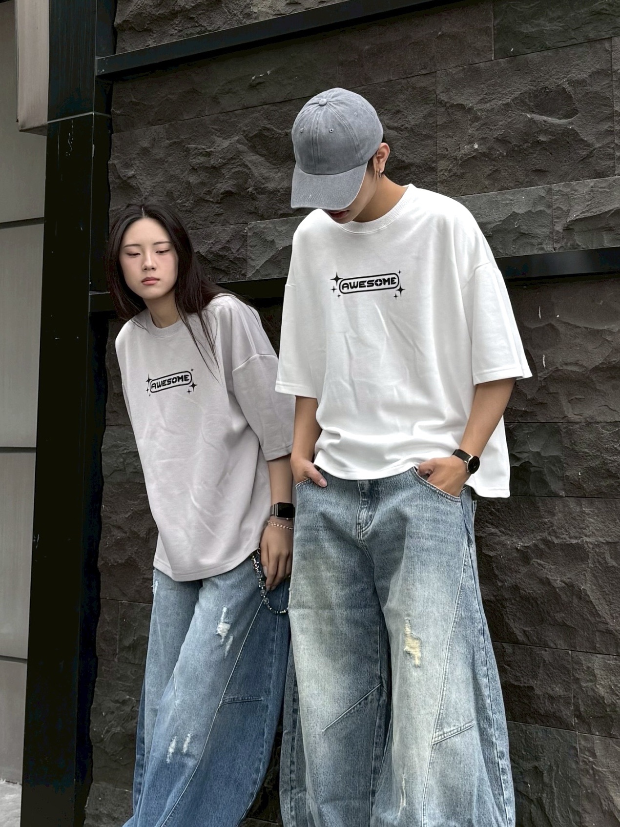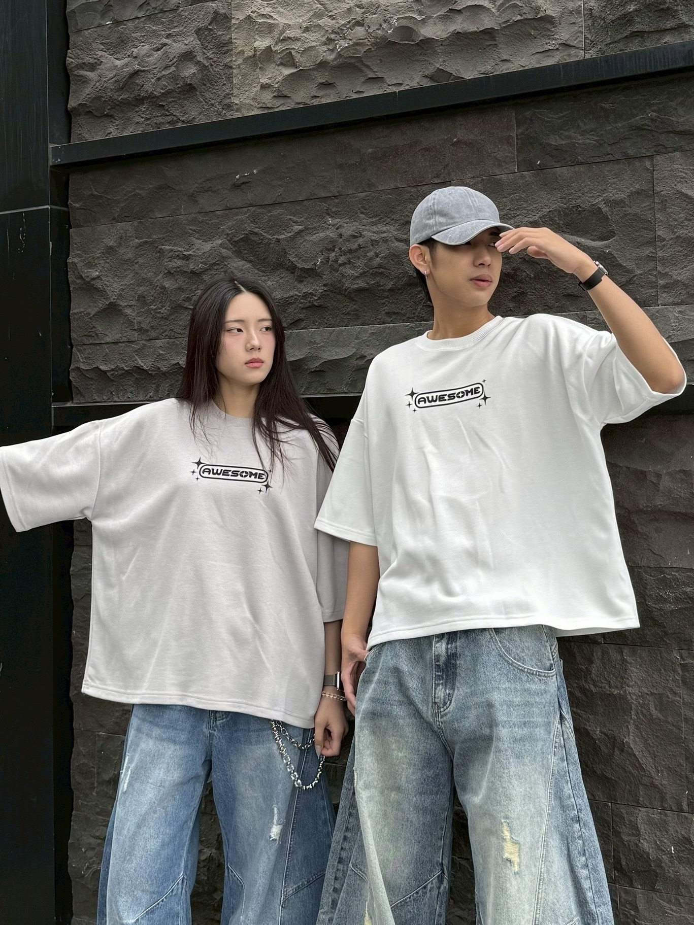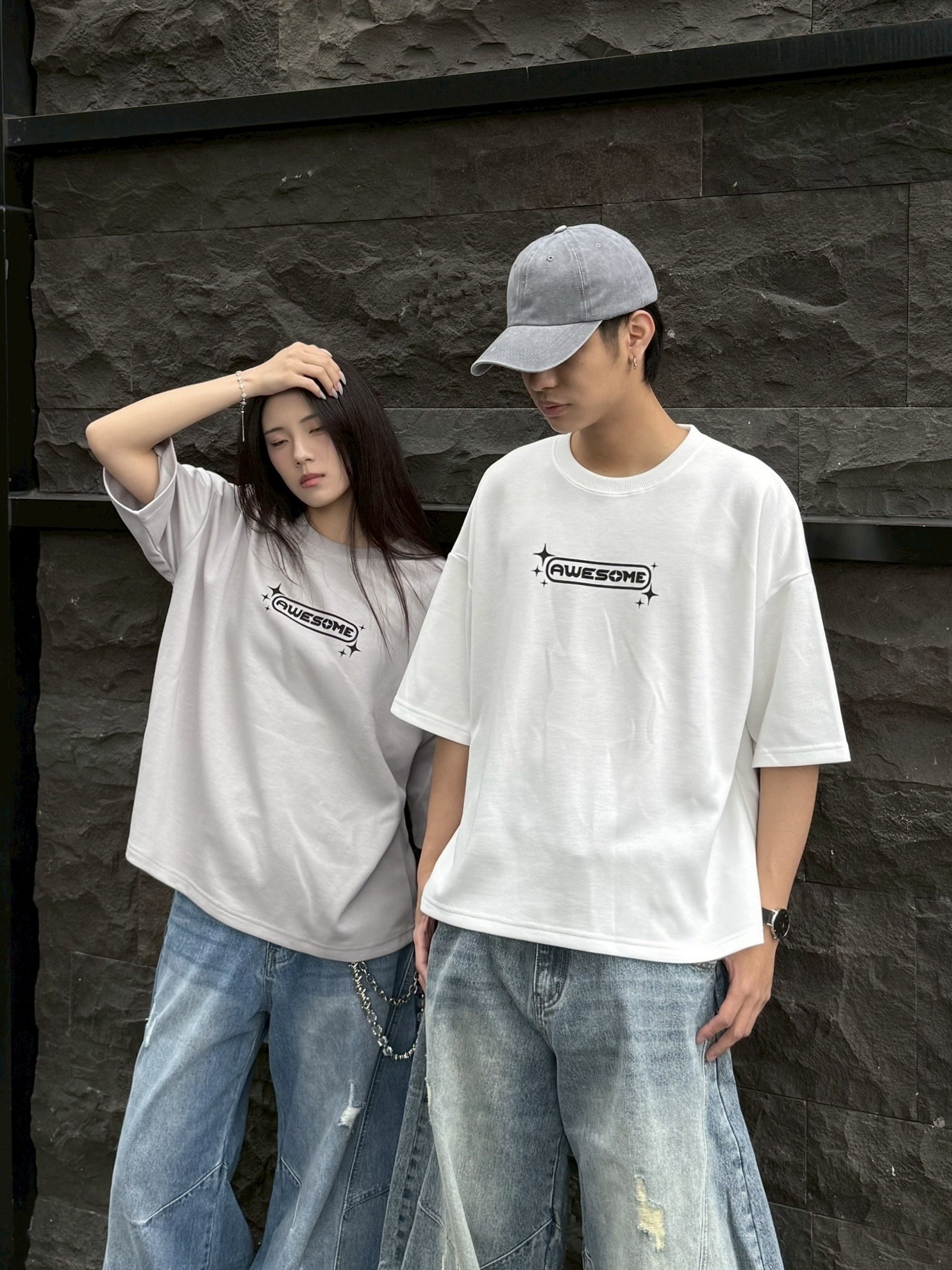 韓國 AWESOME 十字星 LOGO 星標 BOXY 寬短 短T 短袖 上衣 (3color)