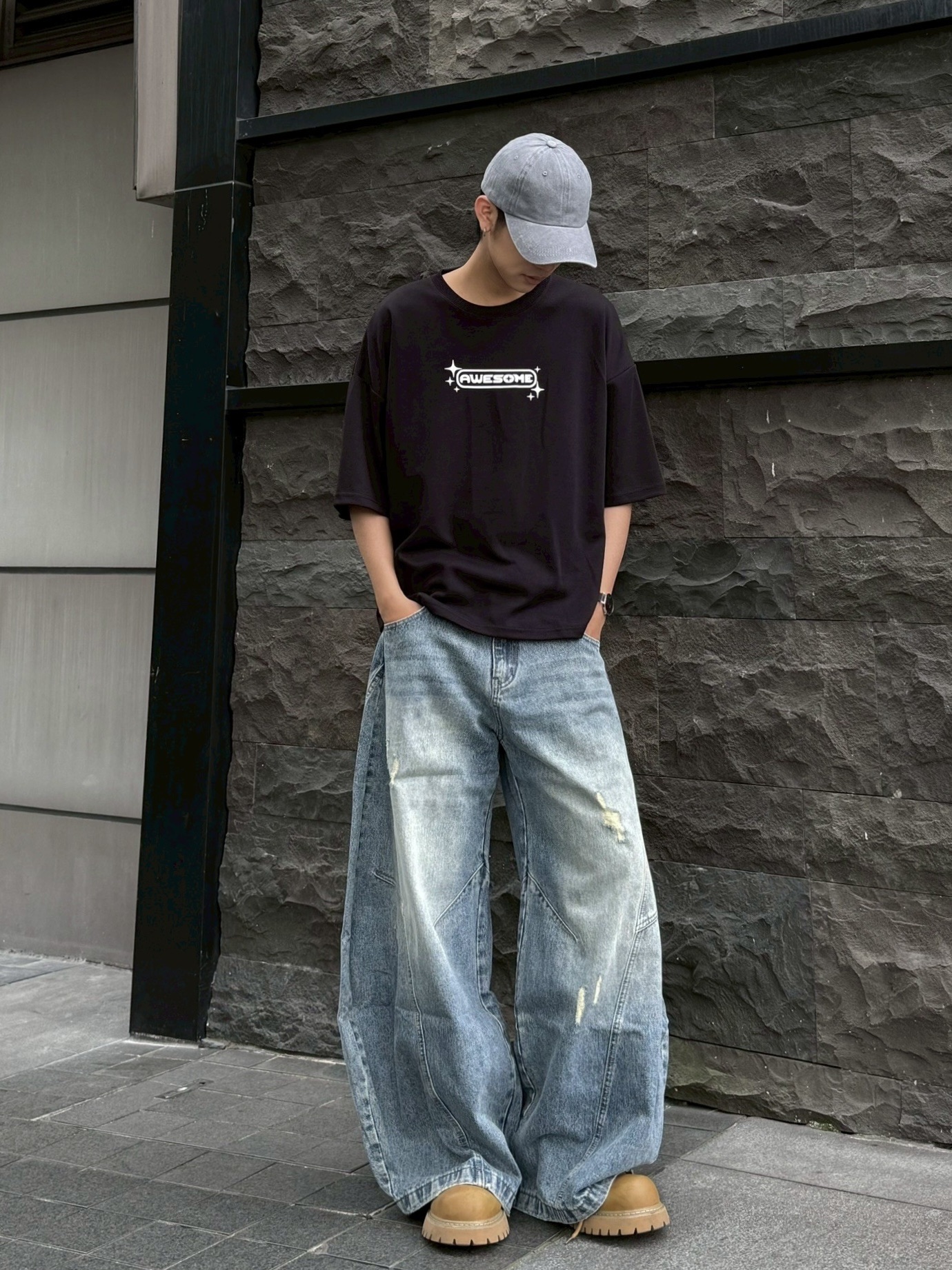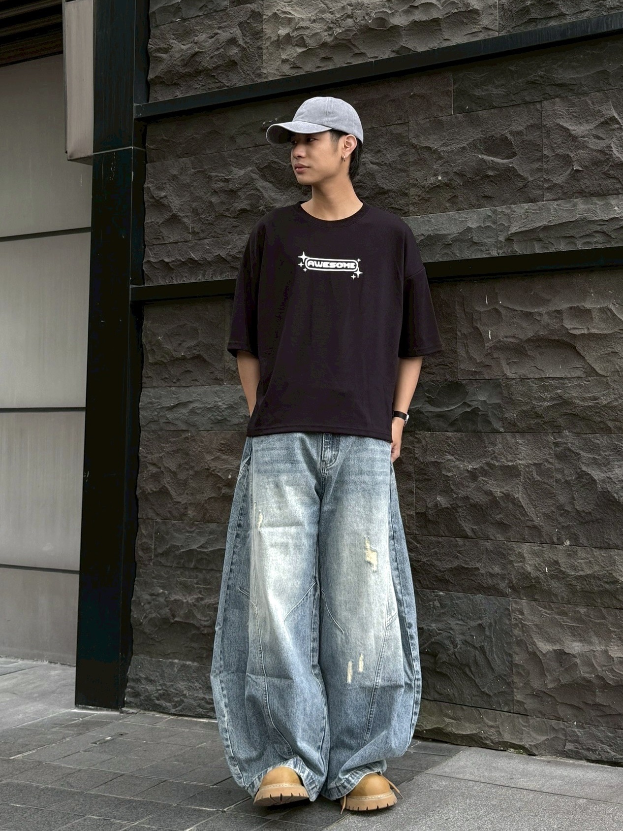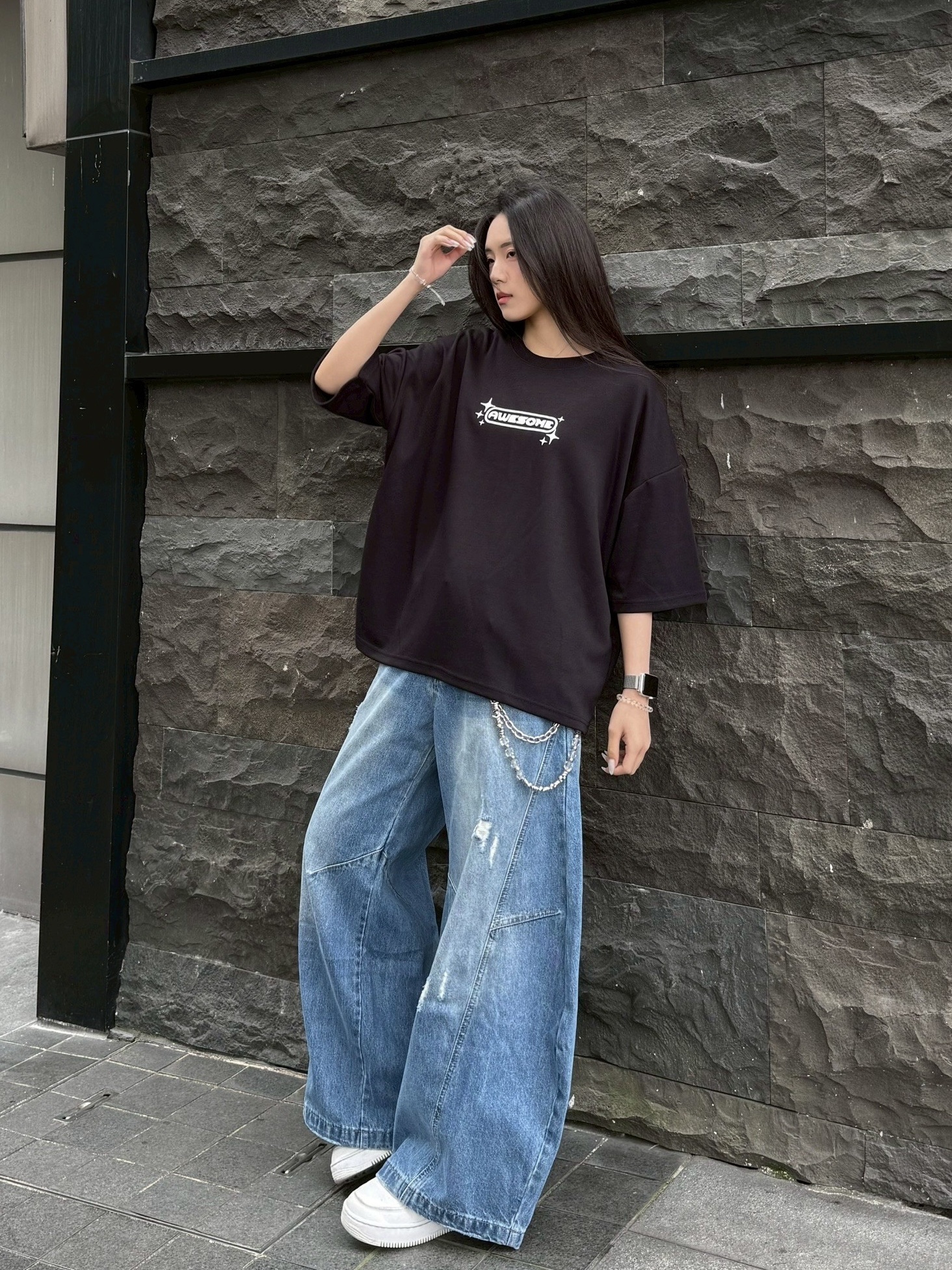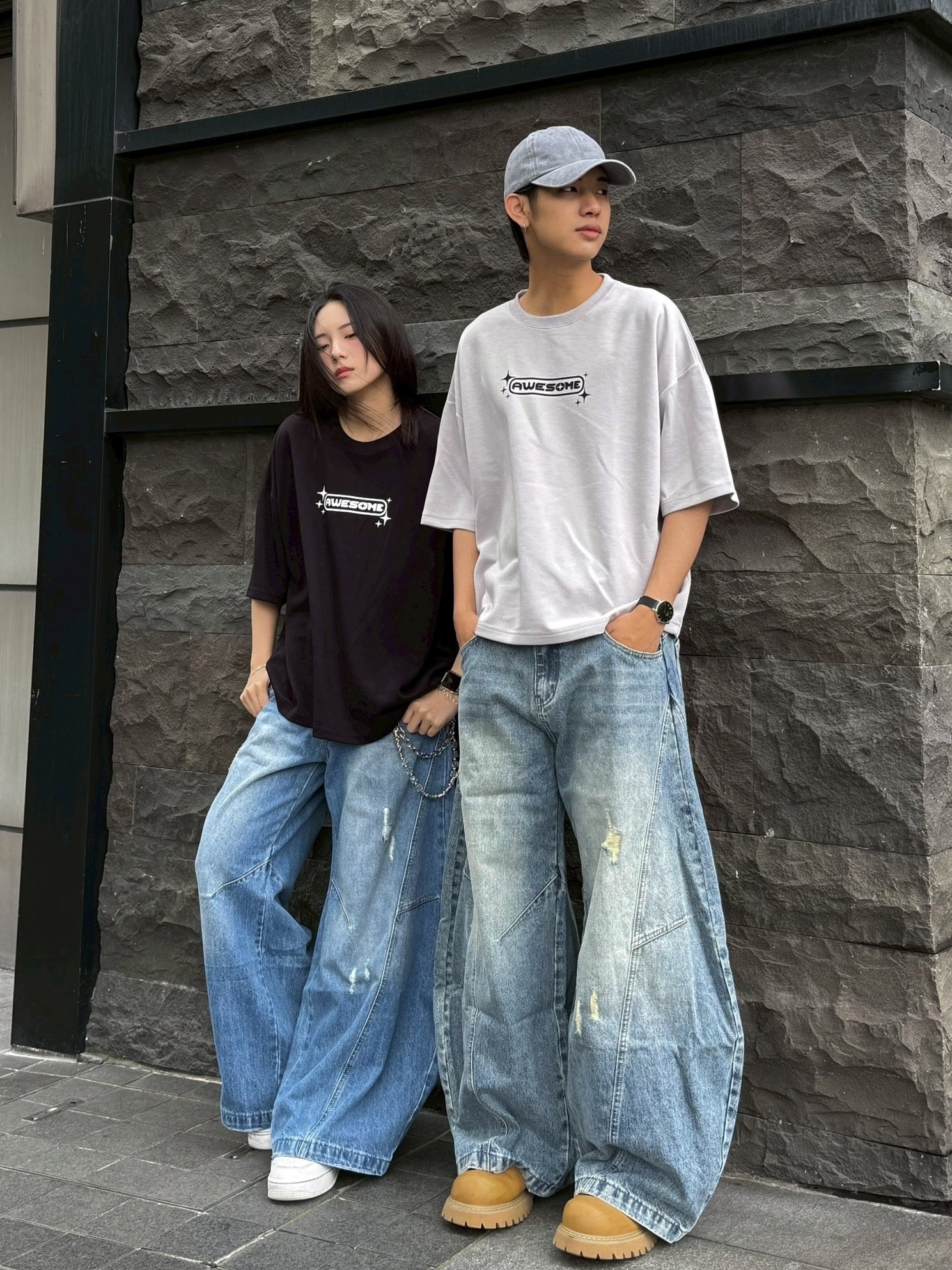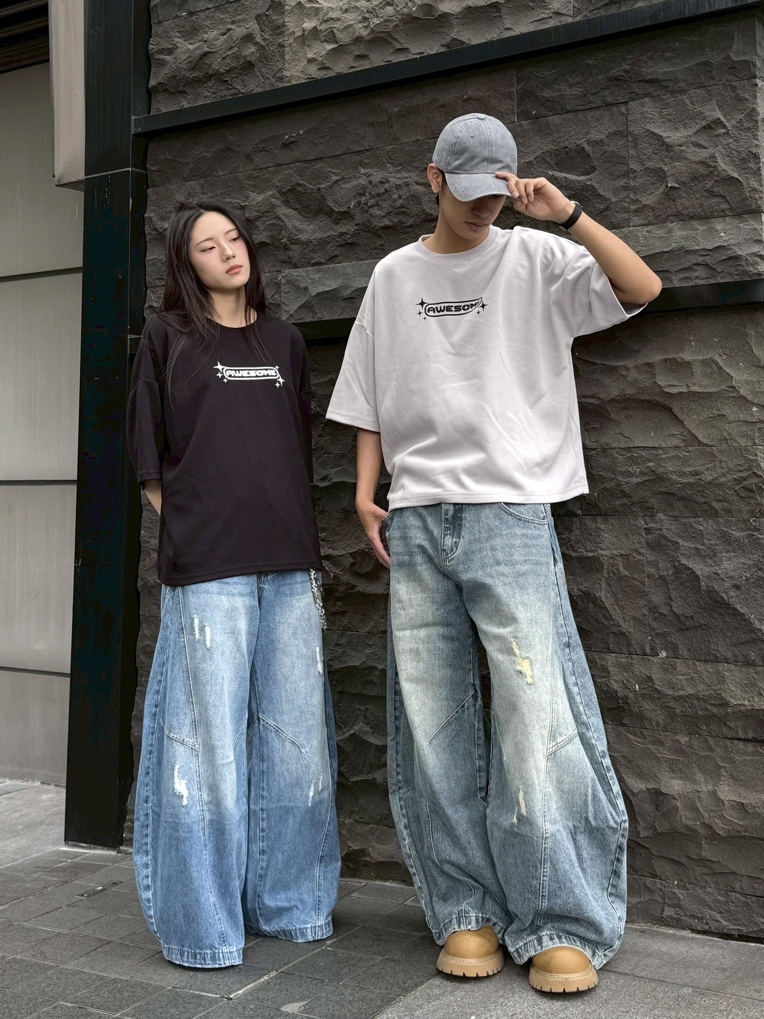韓國 AWESOME 十字星 LOGO 星標 BOXY 寬短 短T 短袖 上衣 (3color)