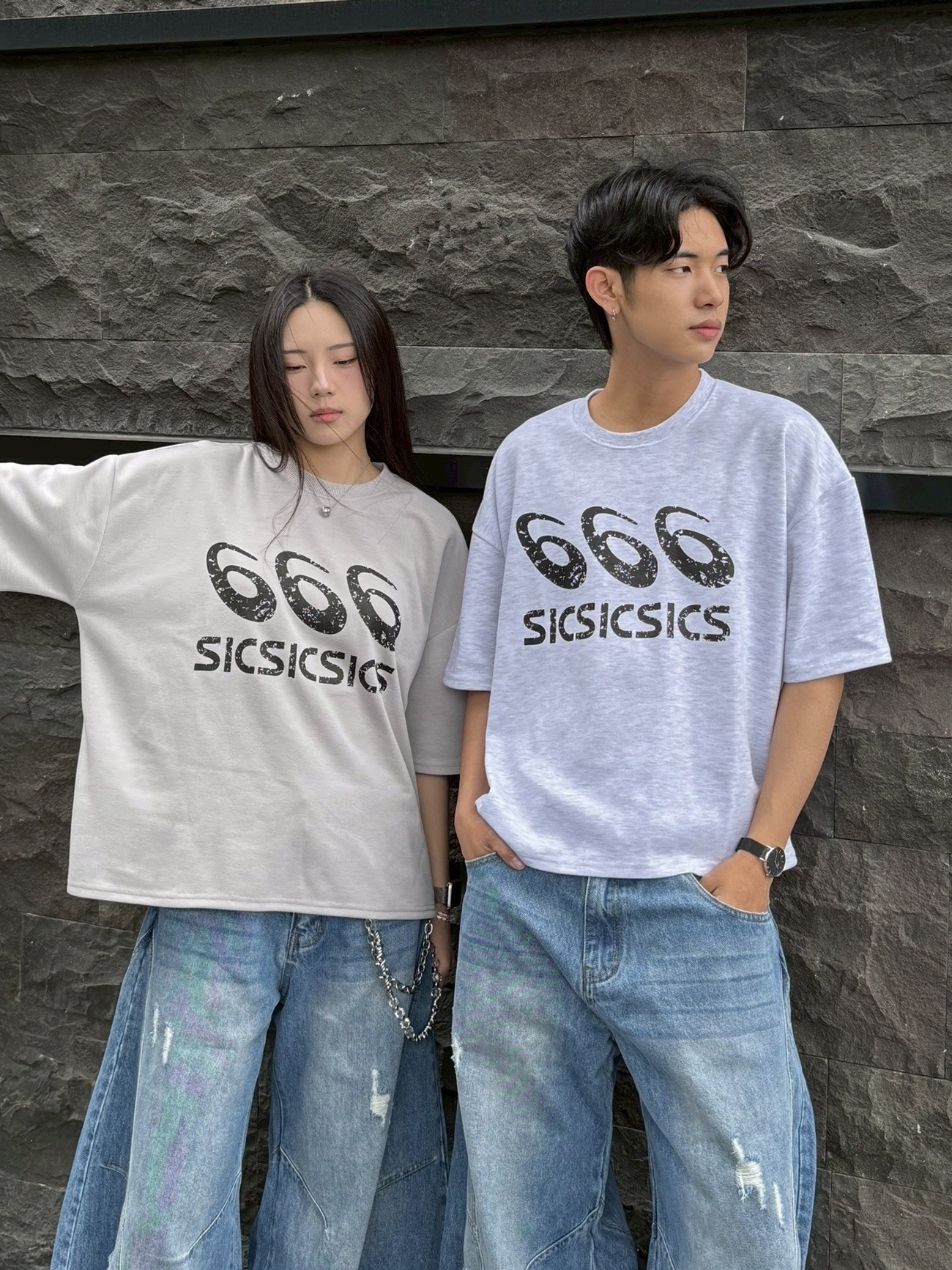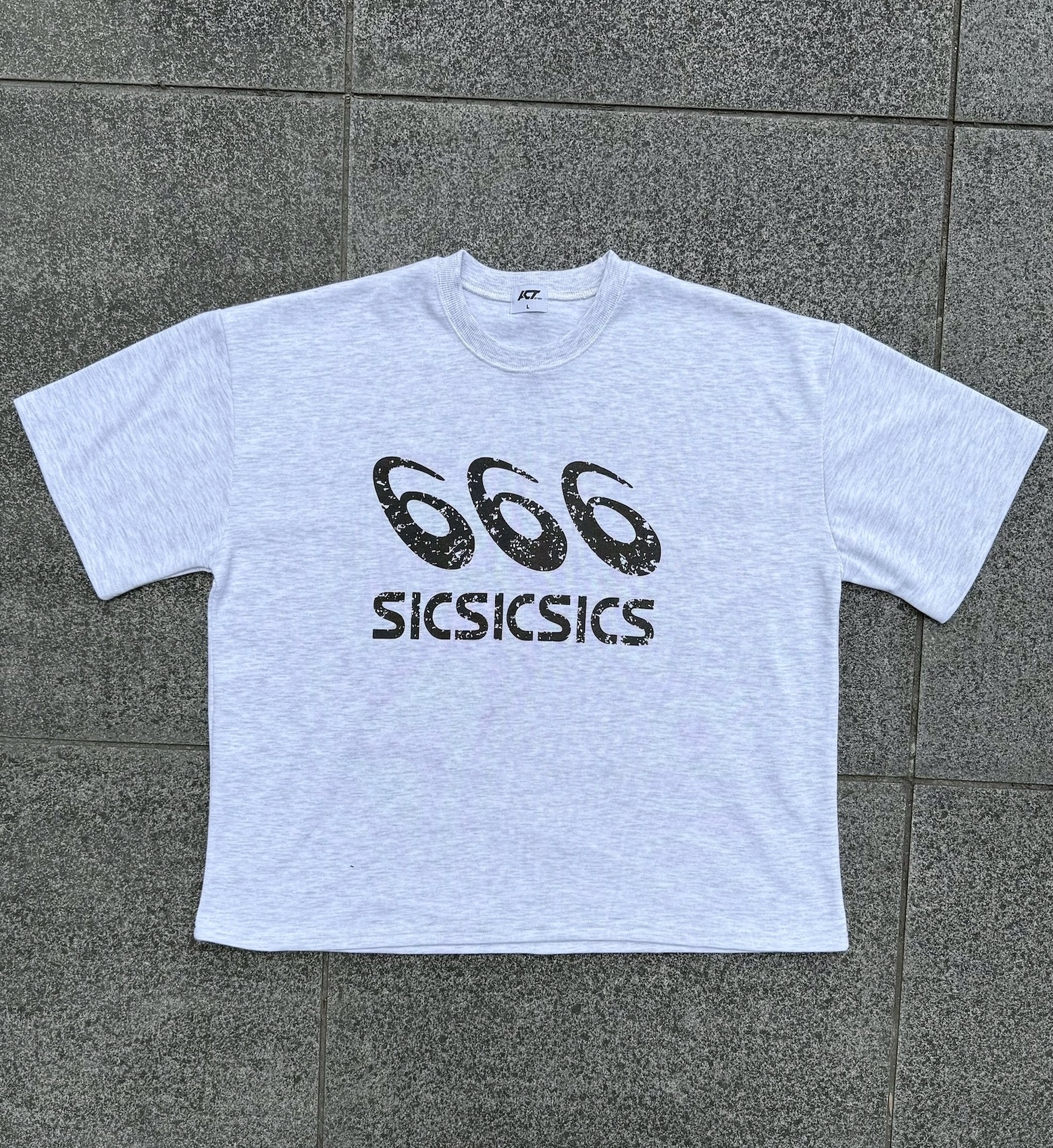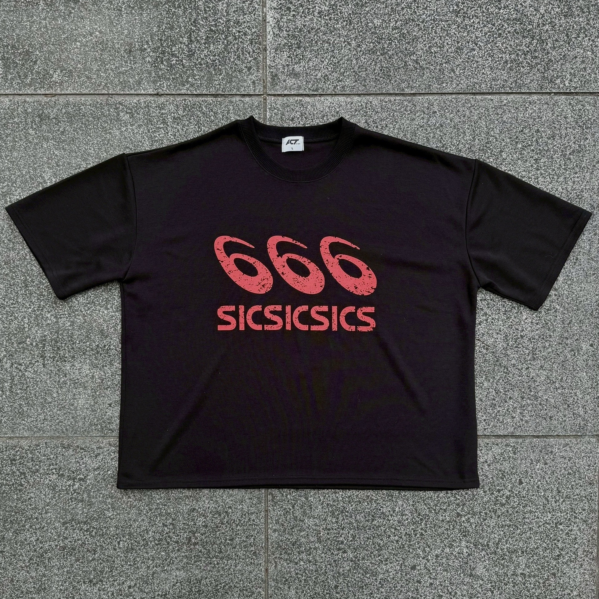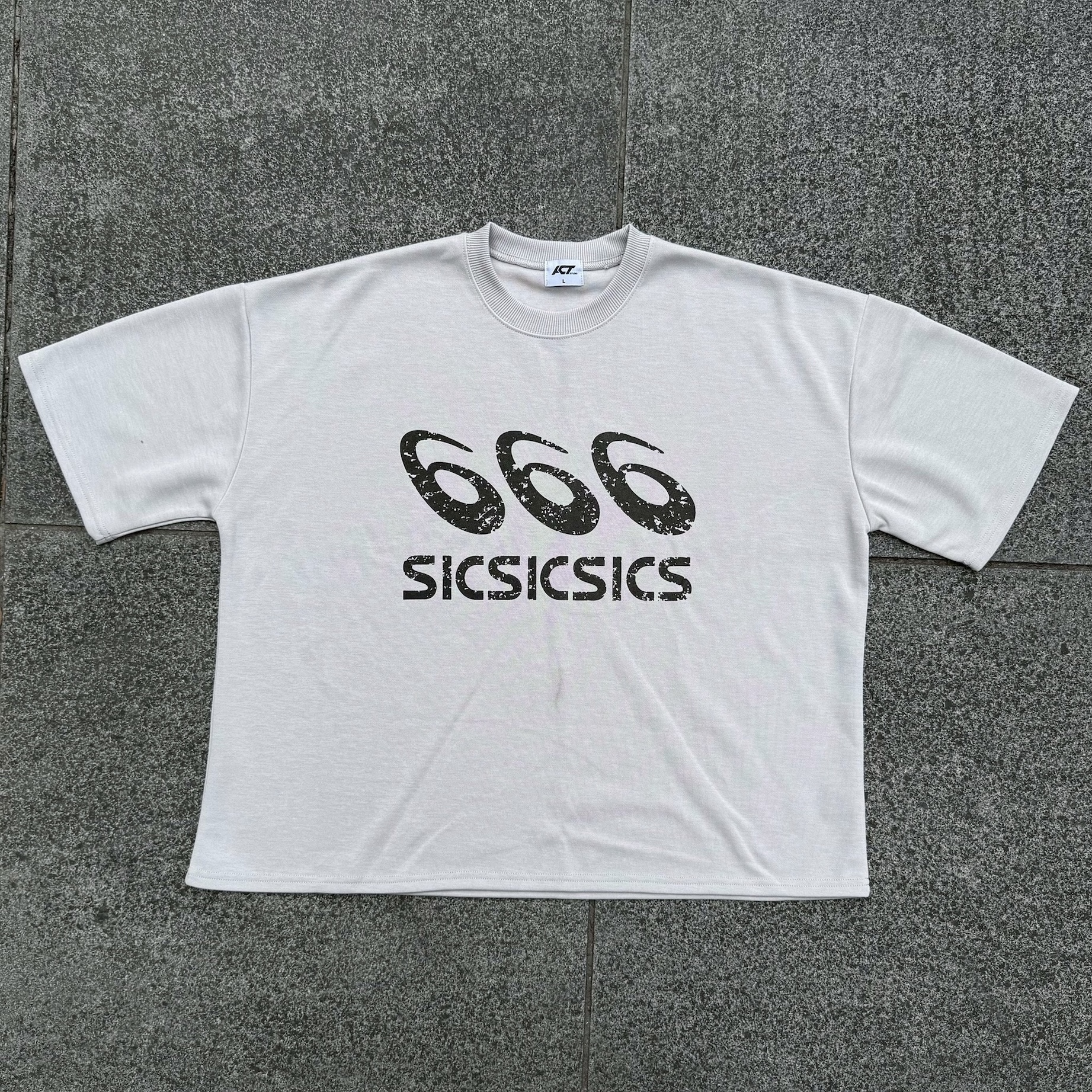 韓國 666 SICSICSICS 斑駁 立體 文字 BOXY 寬短 短T 短袖 上衣 (3color)
