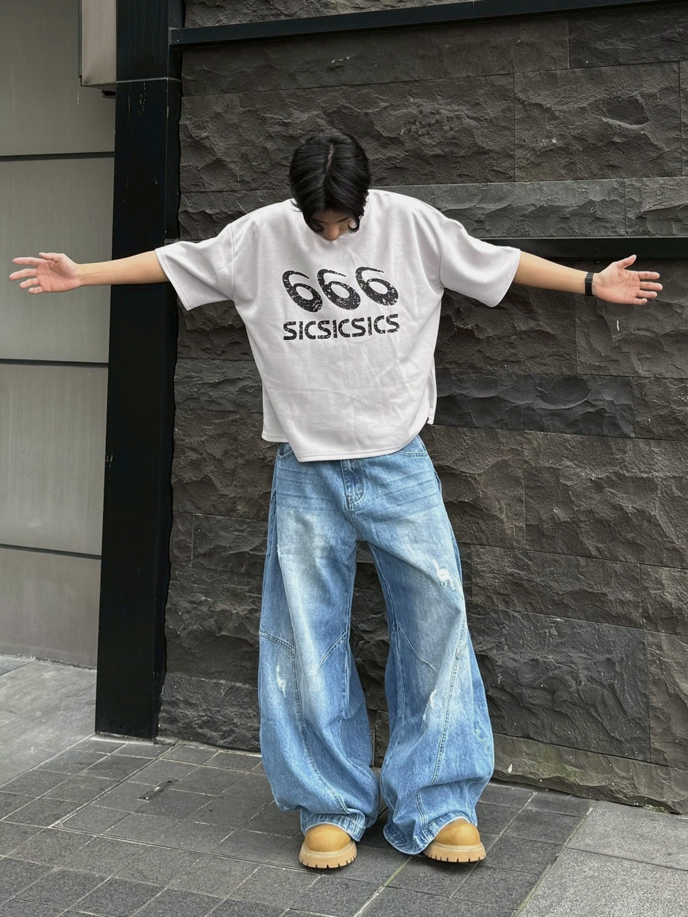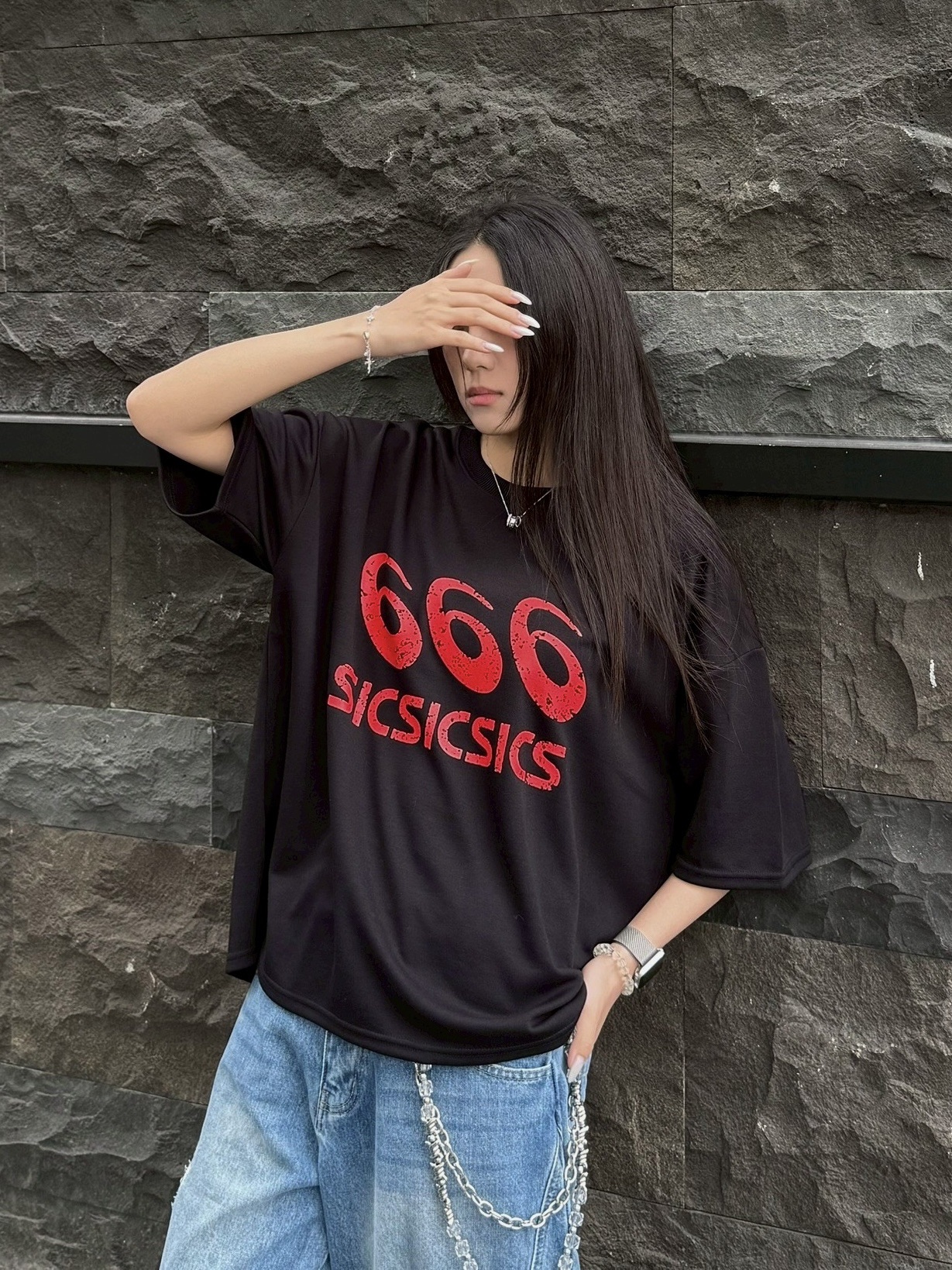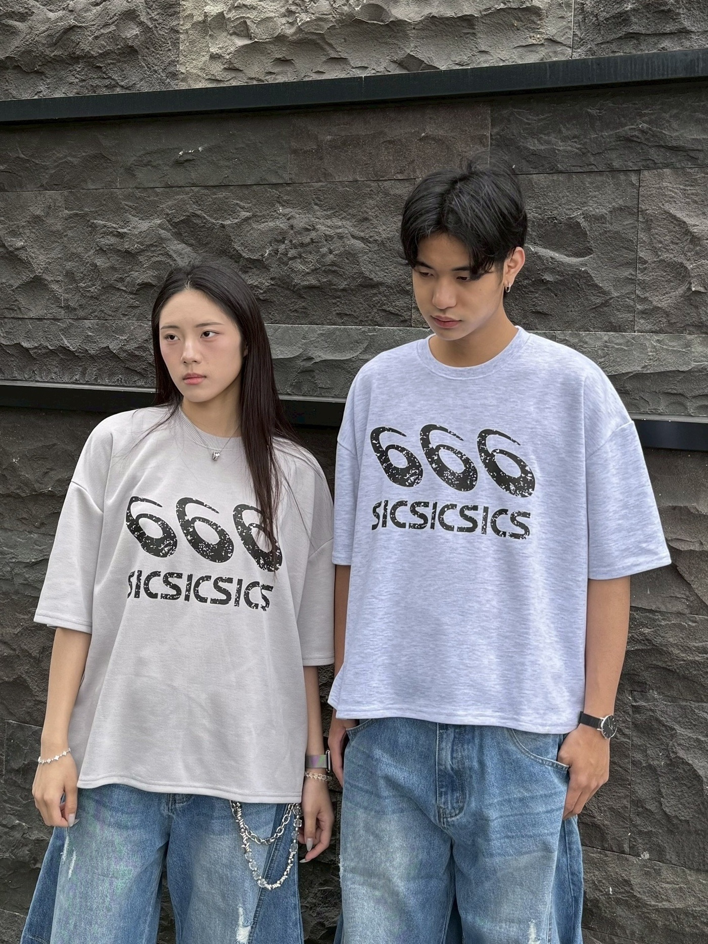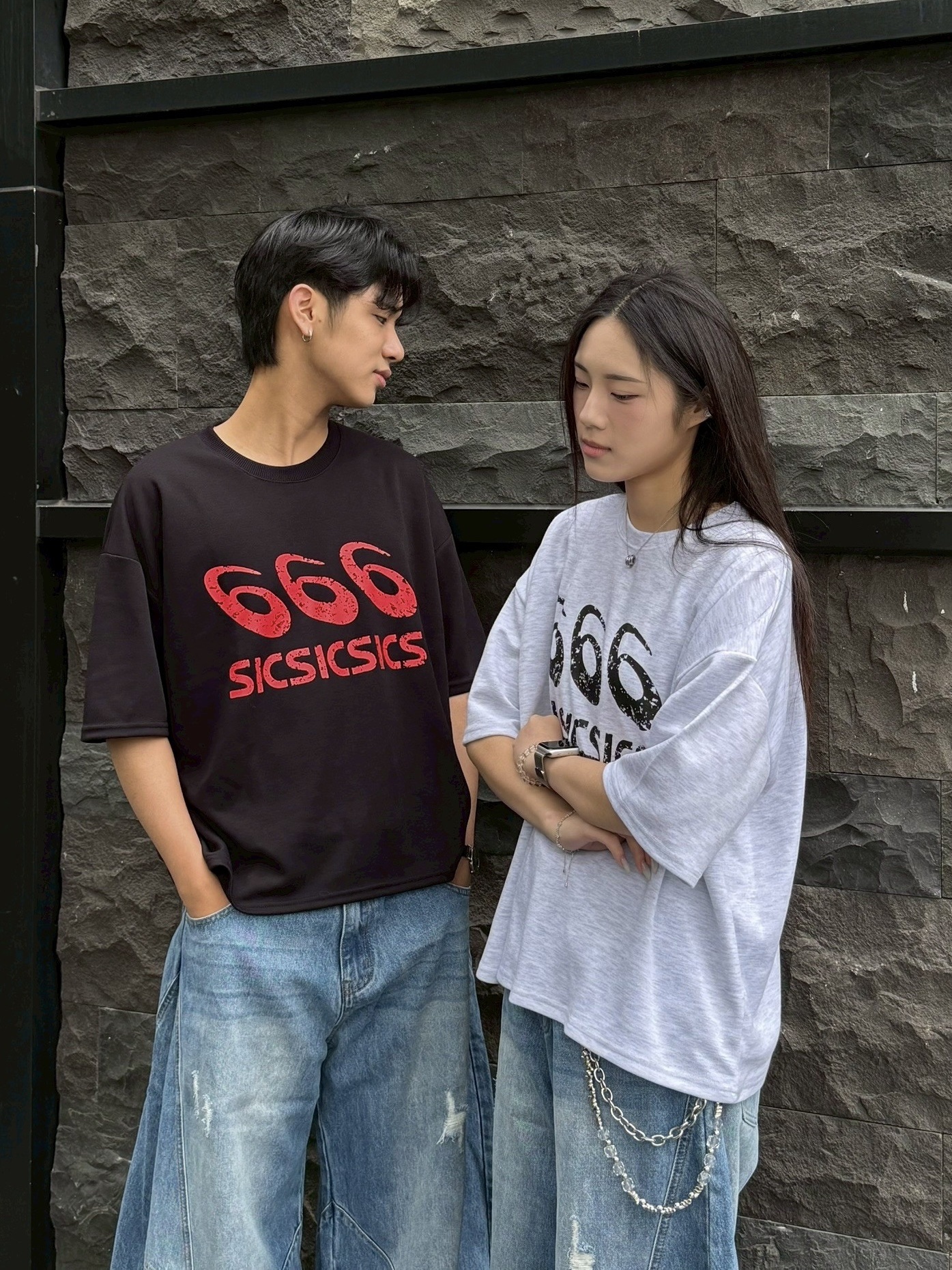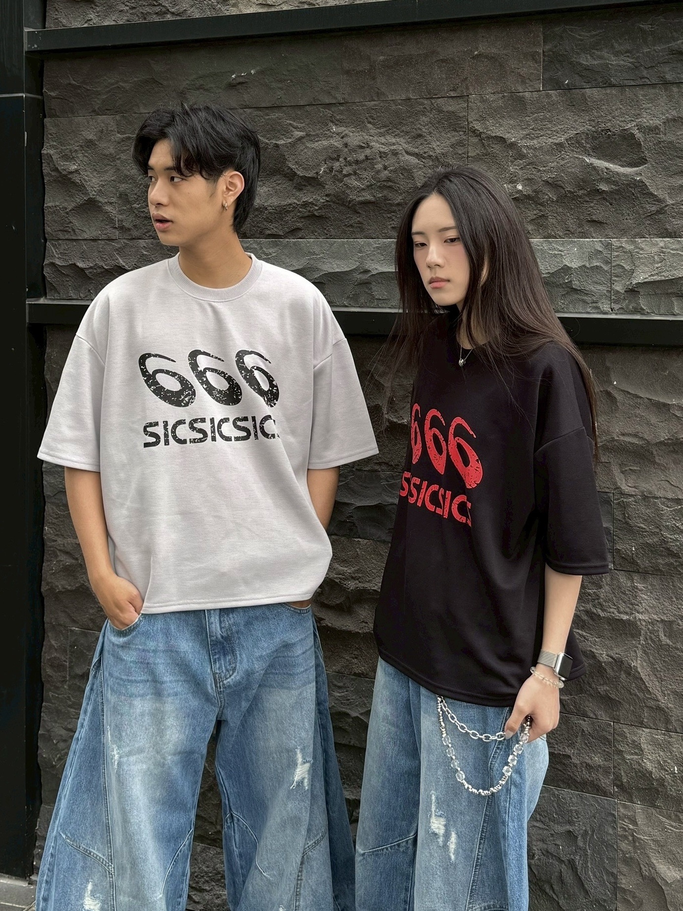 韓國 666 SICSICSICS 斑駁 立體 文字 BOXY 寬短 短T 短袖 上衣 (3color)