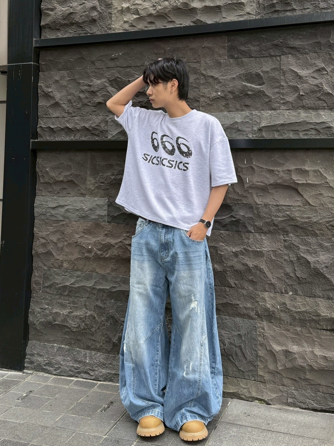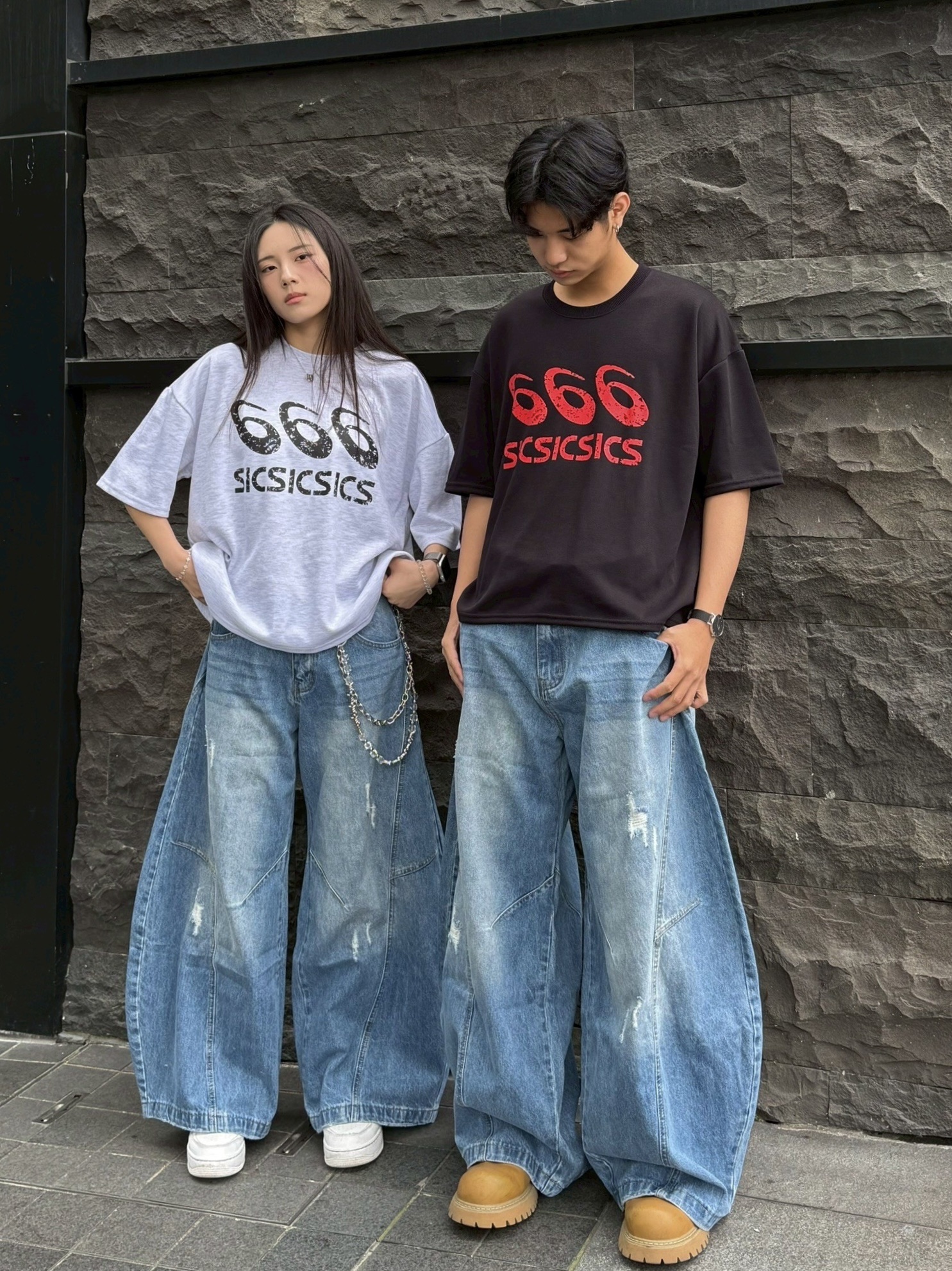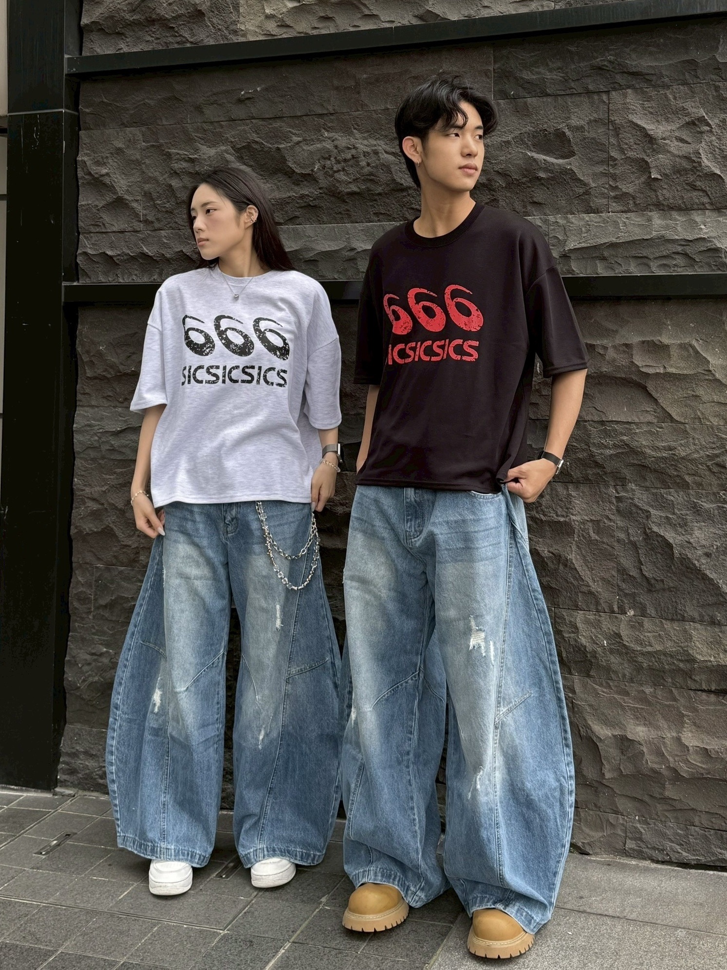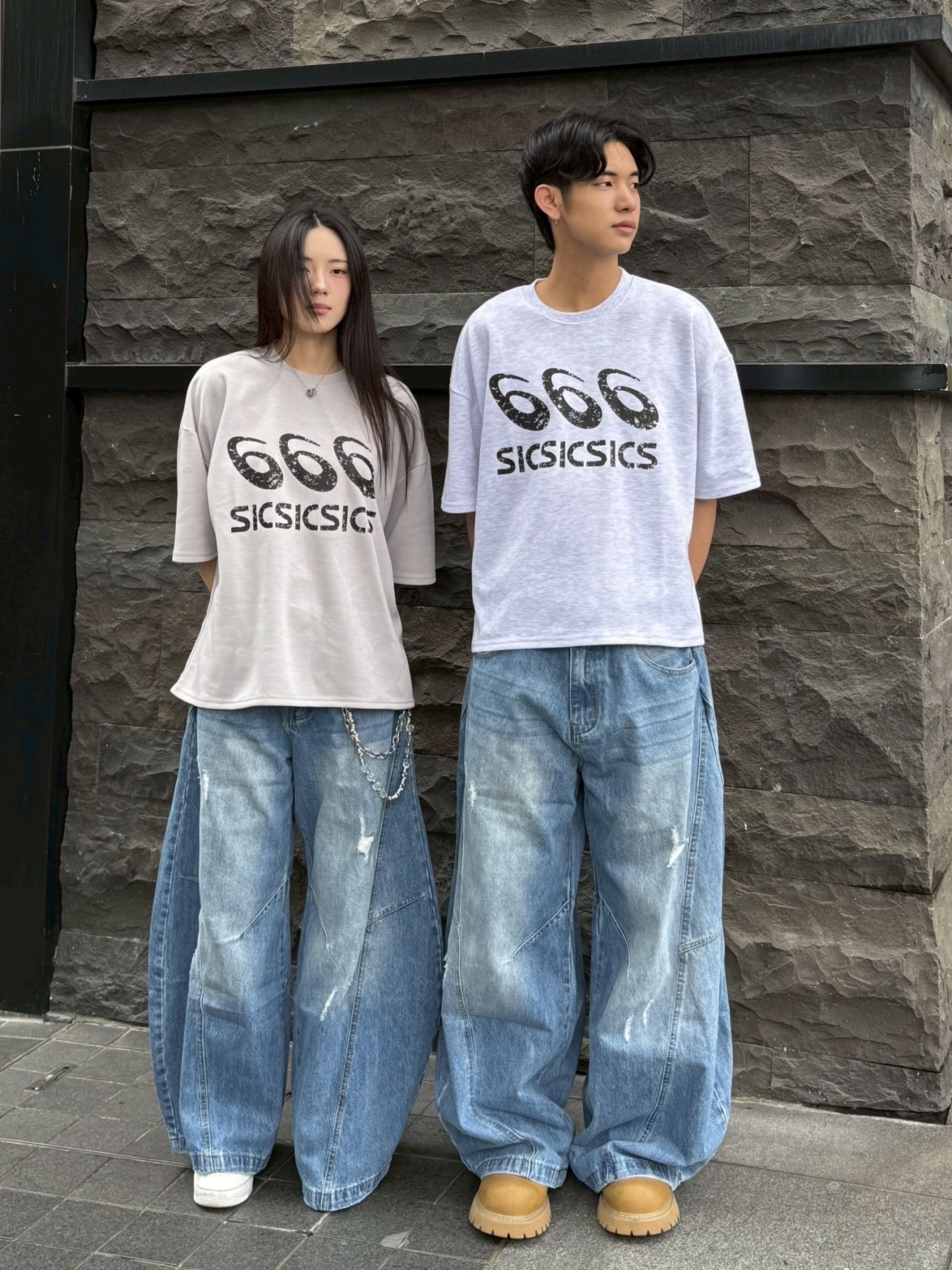 韓國 666 SICSICSICS 斑駁 立體 文字 BOXY 寬短 短T 短袖 上衣 (3color)