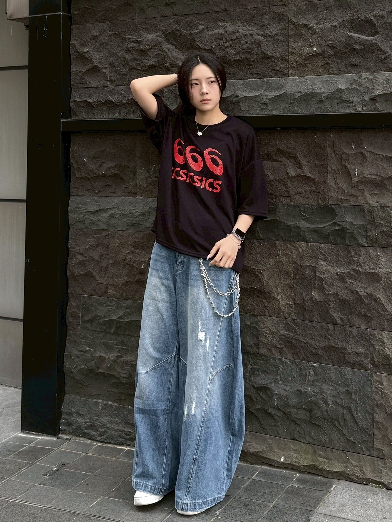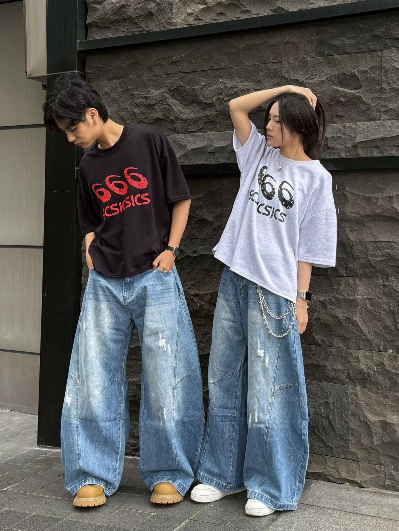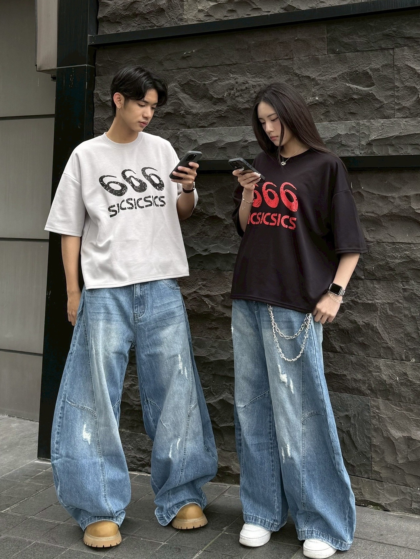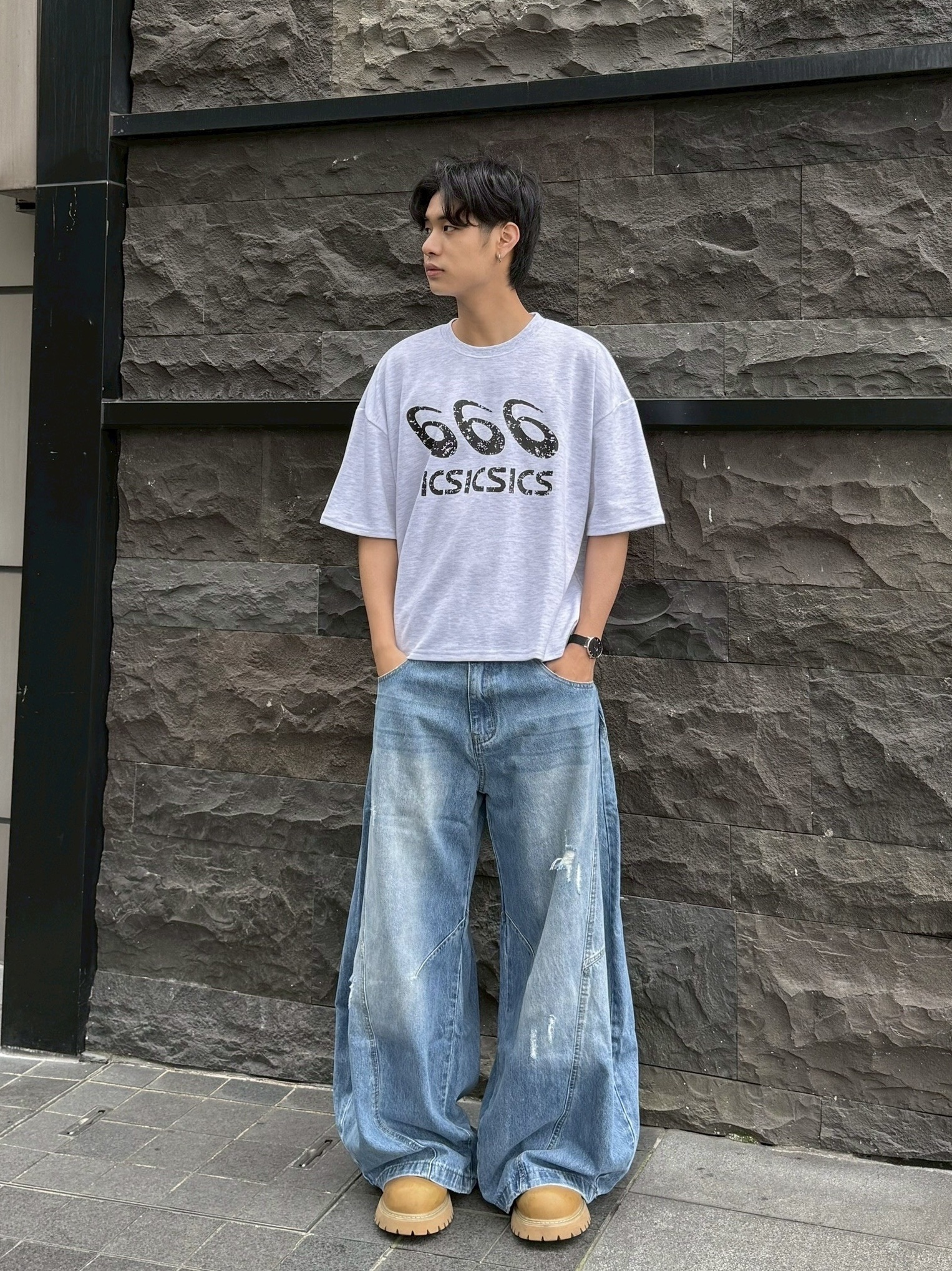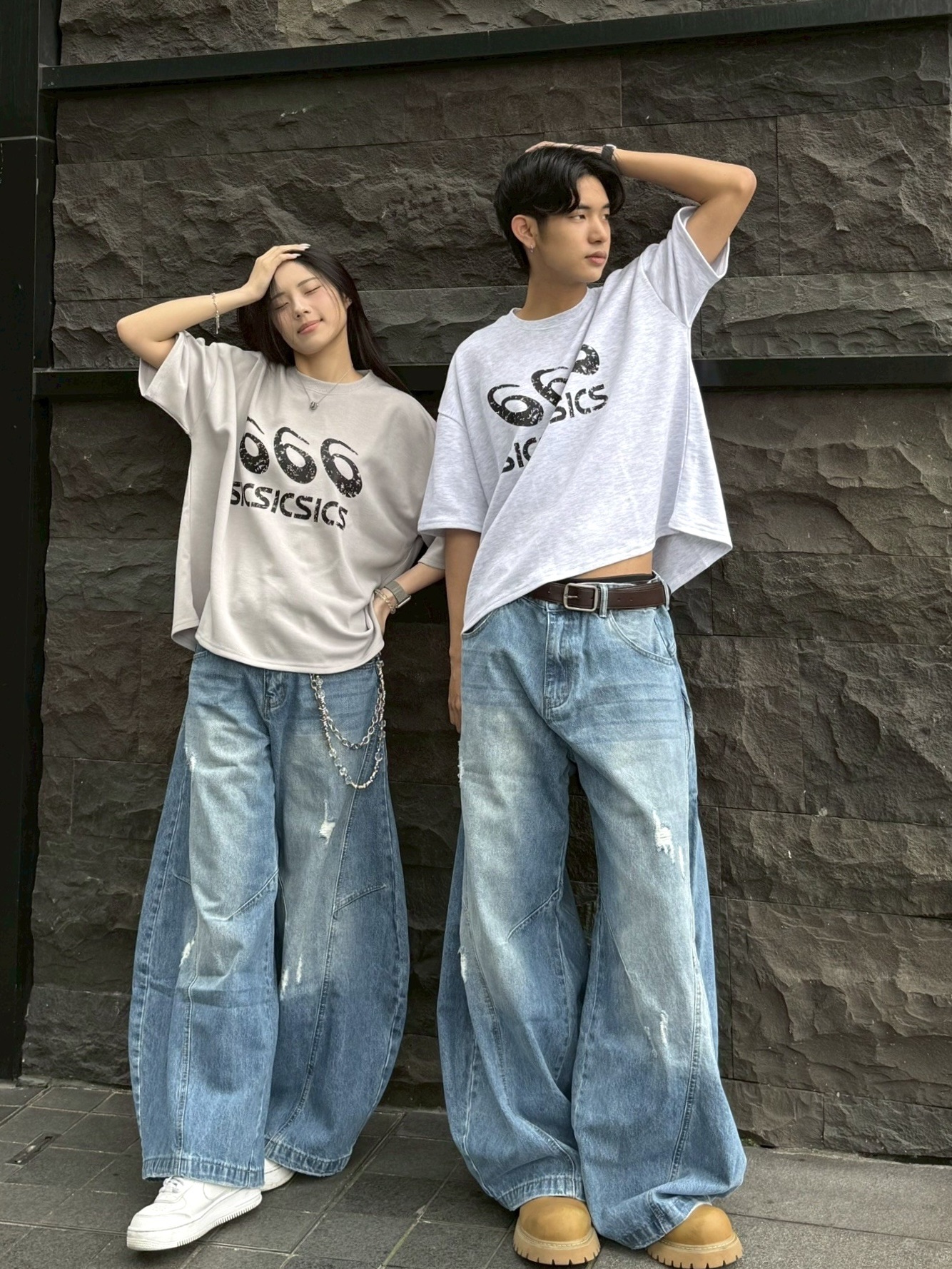 韓國 666 SICSICSICS 斑駁 立體 文字 BOXY 寬短 短T 短袖 上衣 (3color)