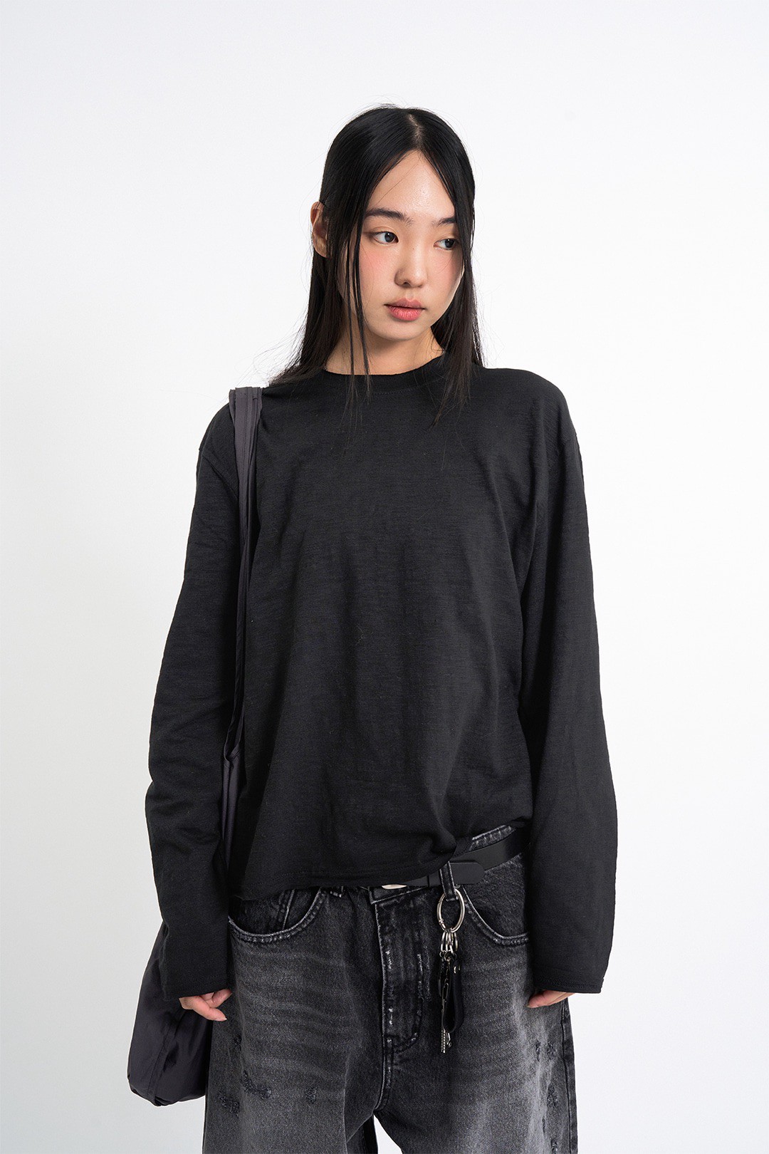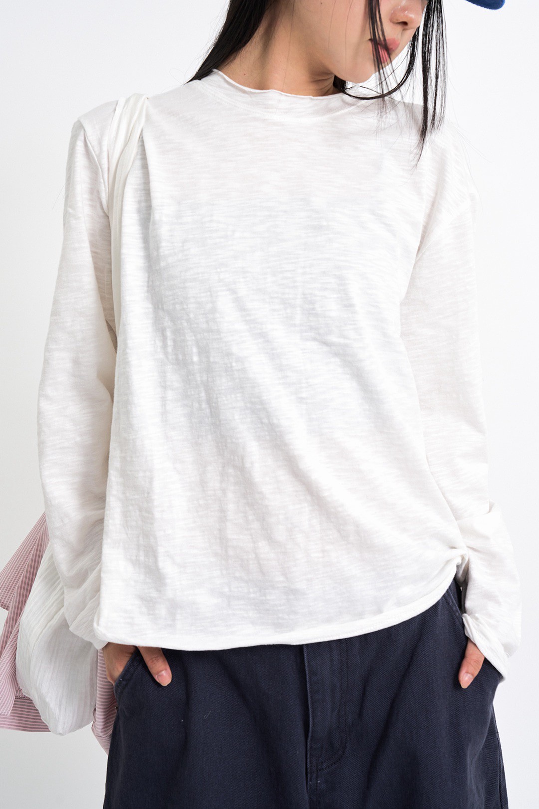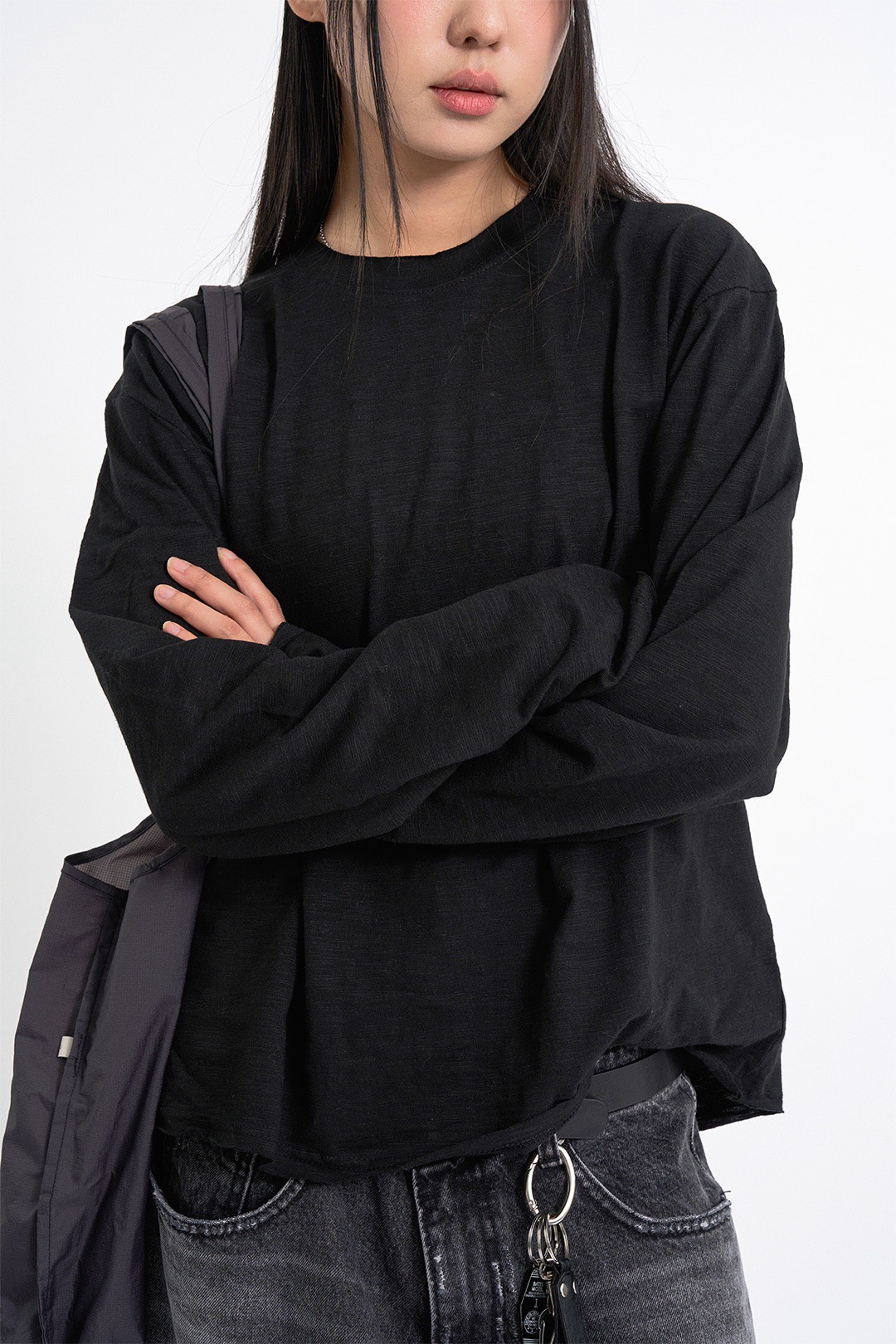 Rauco house 下擺 不規則 剪裁 BOXY 短版 素色 薄長袖 上衣 (5color)