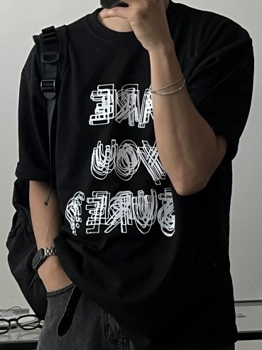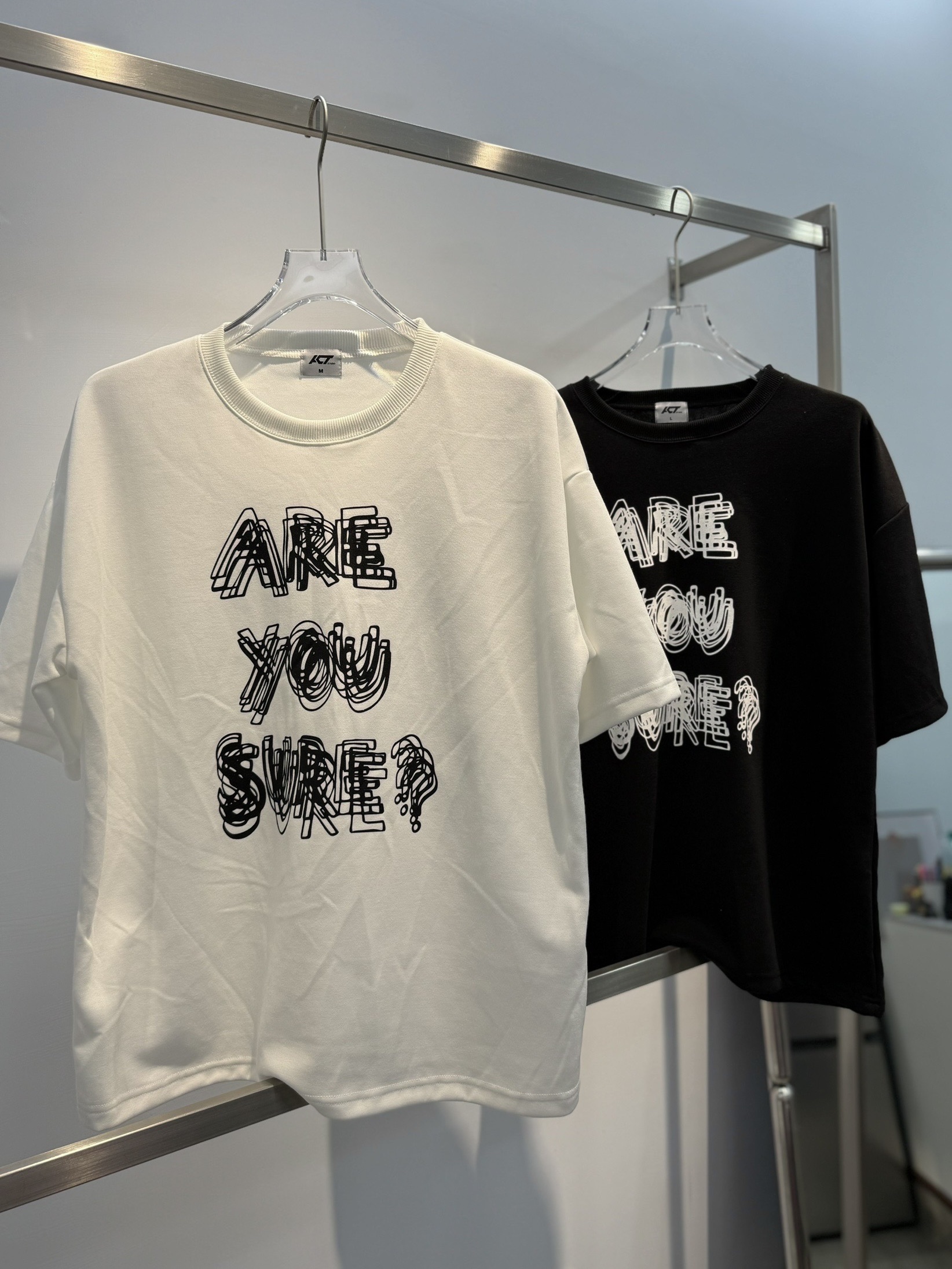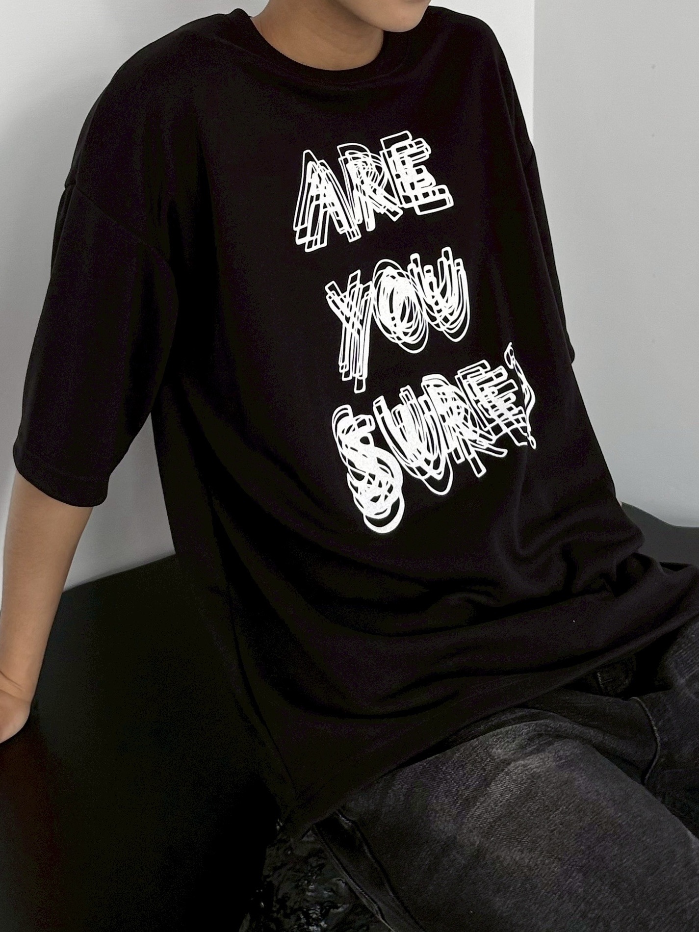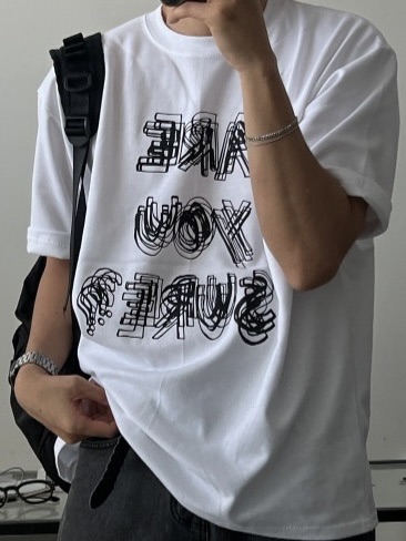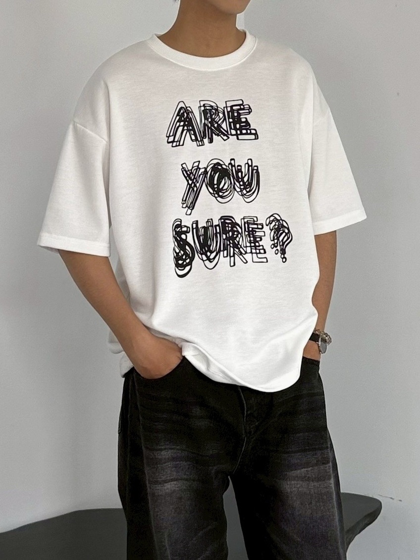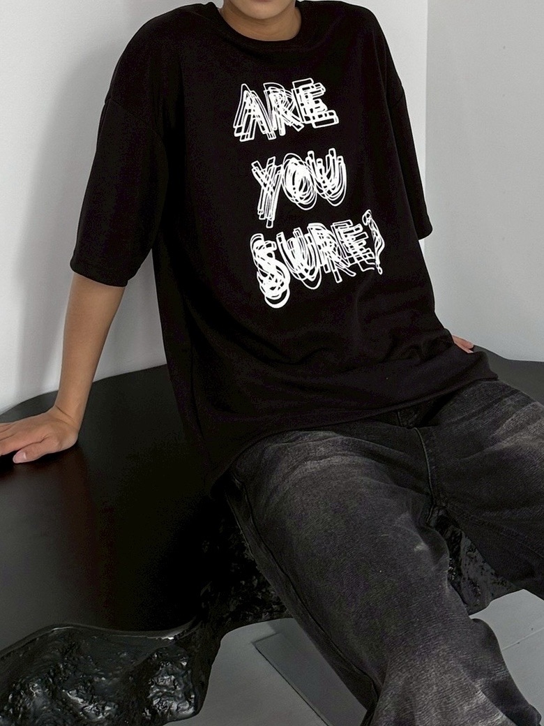韓國 ARE YOU SURE? 錯位 幻影 立體 文字 短T 短袖 上衣 (2color)