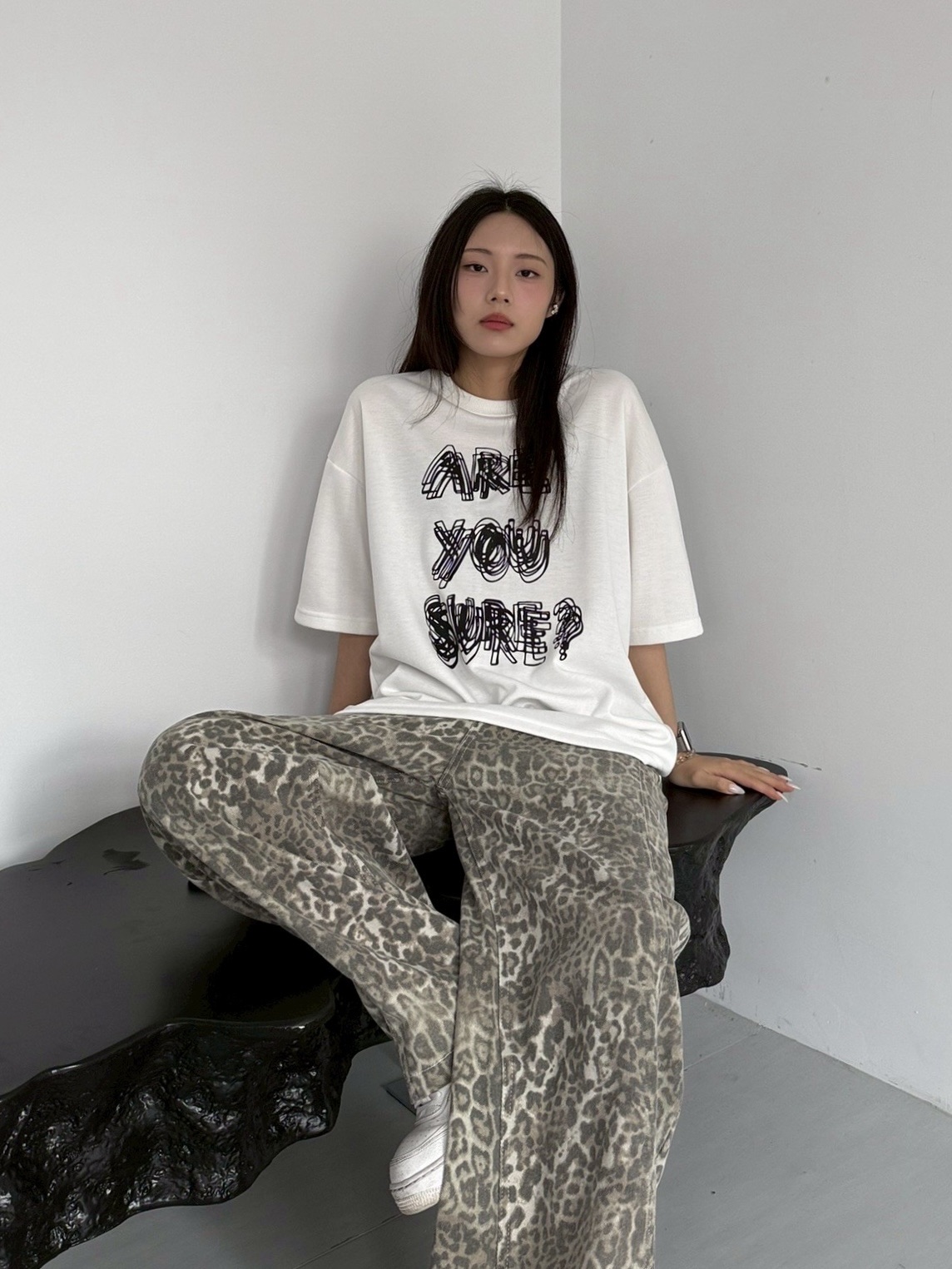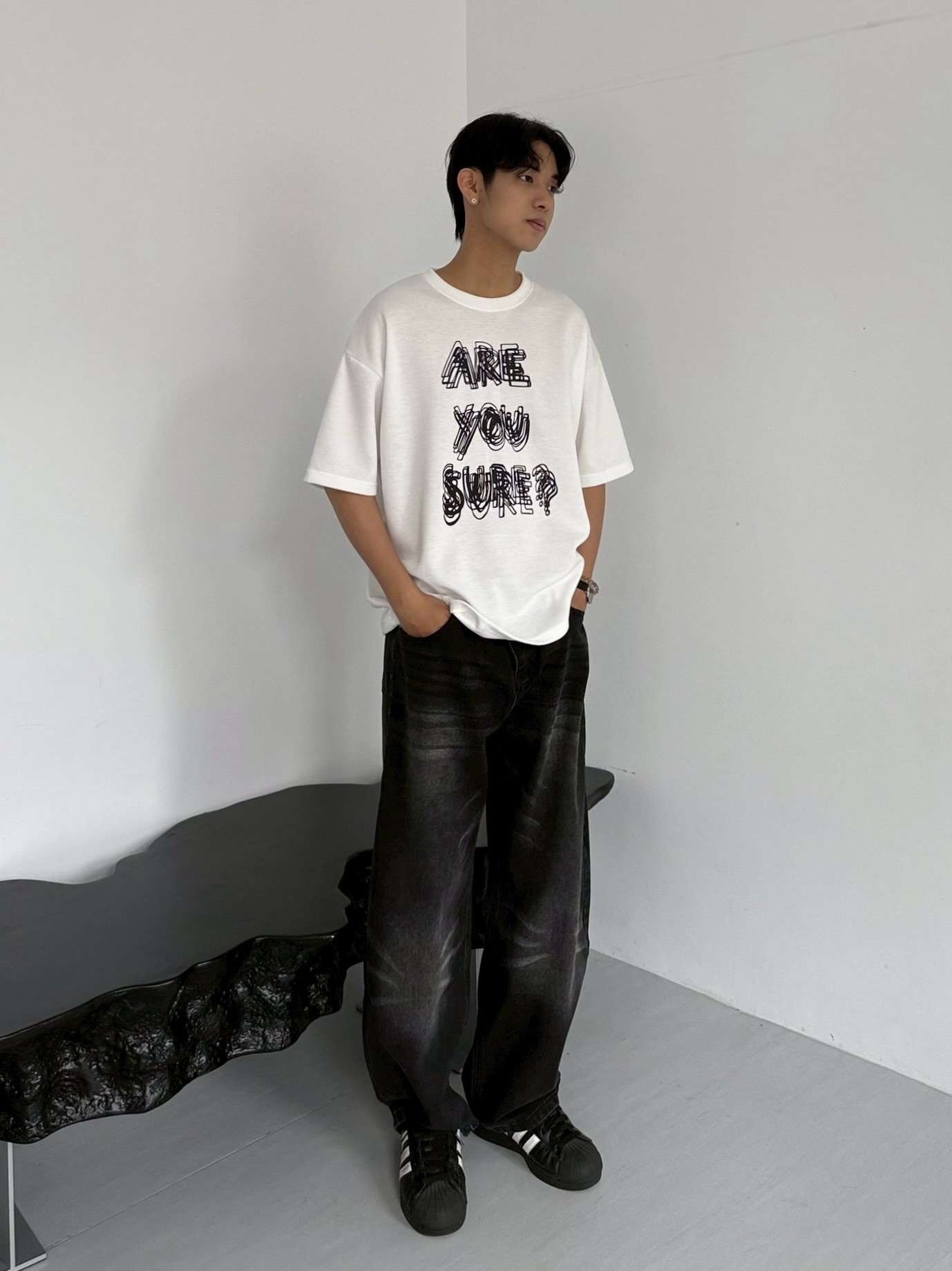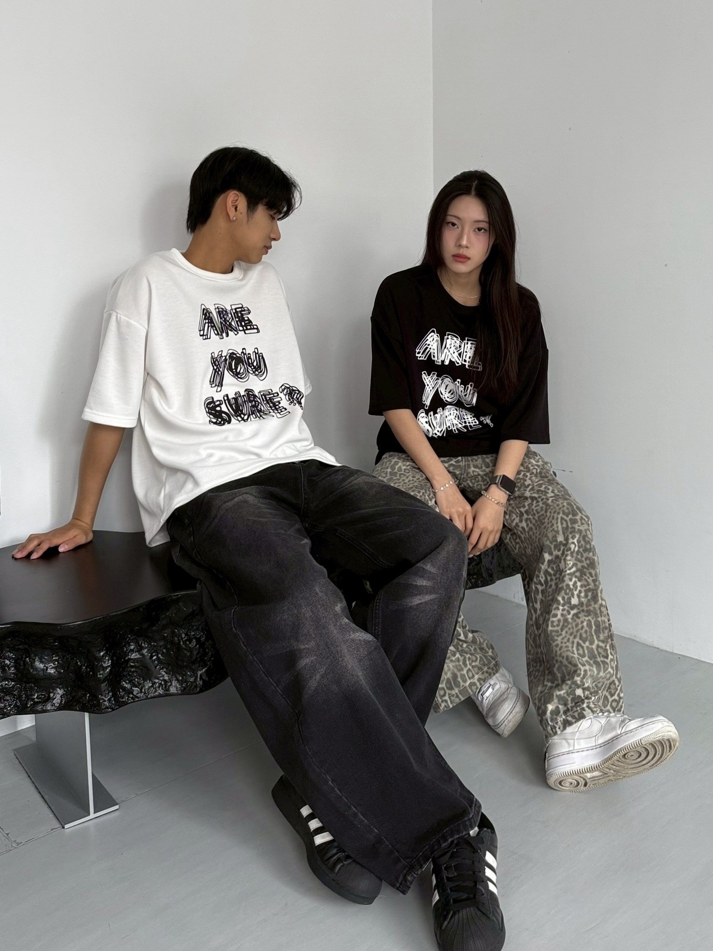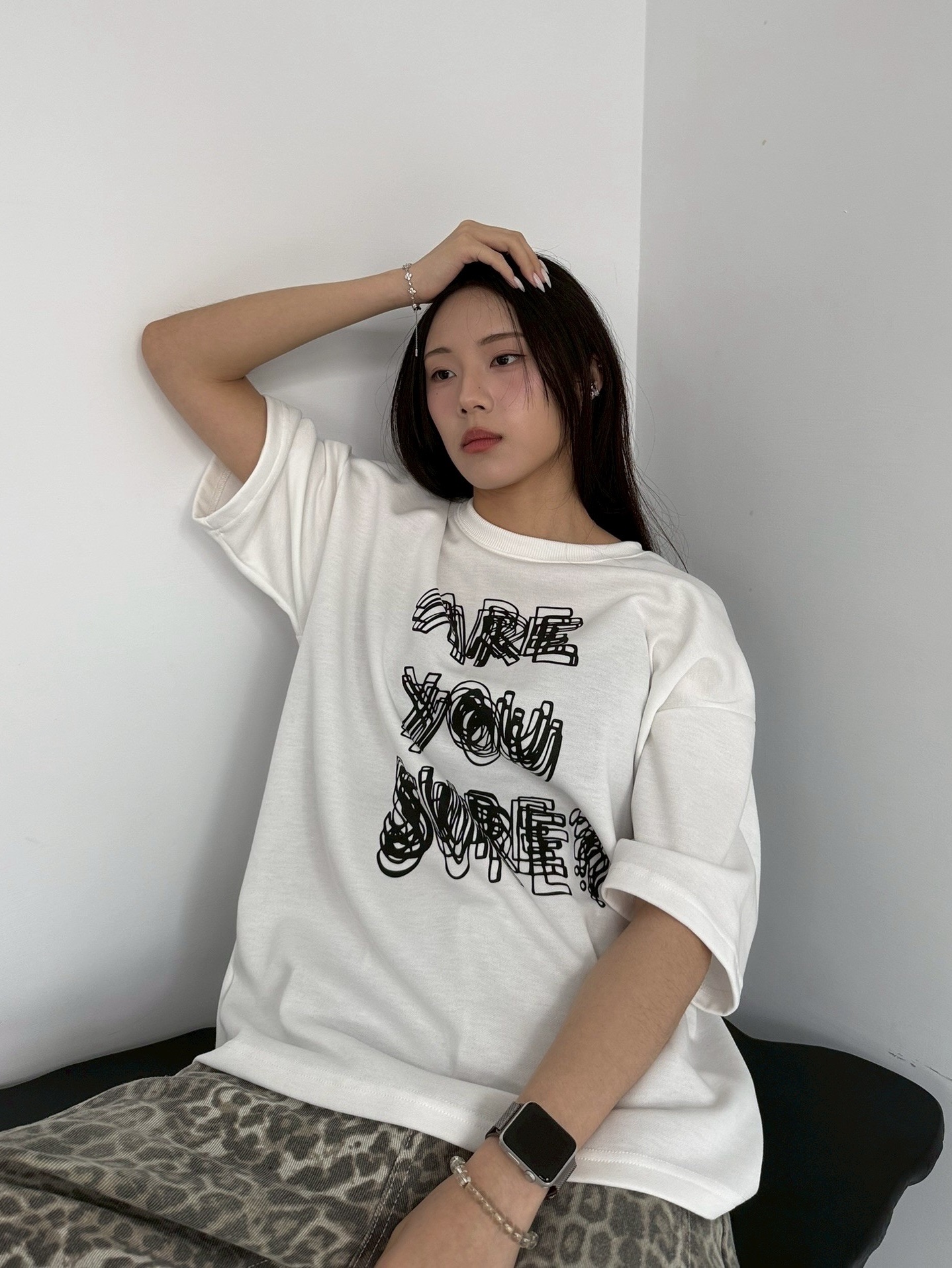 韓國 ARE YOU SURE? 錯位 幻影 立體 文字 短T 短袖 上衣 (2color)