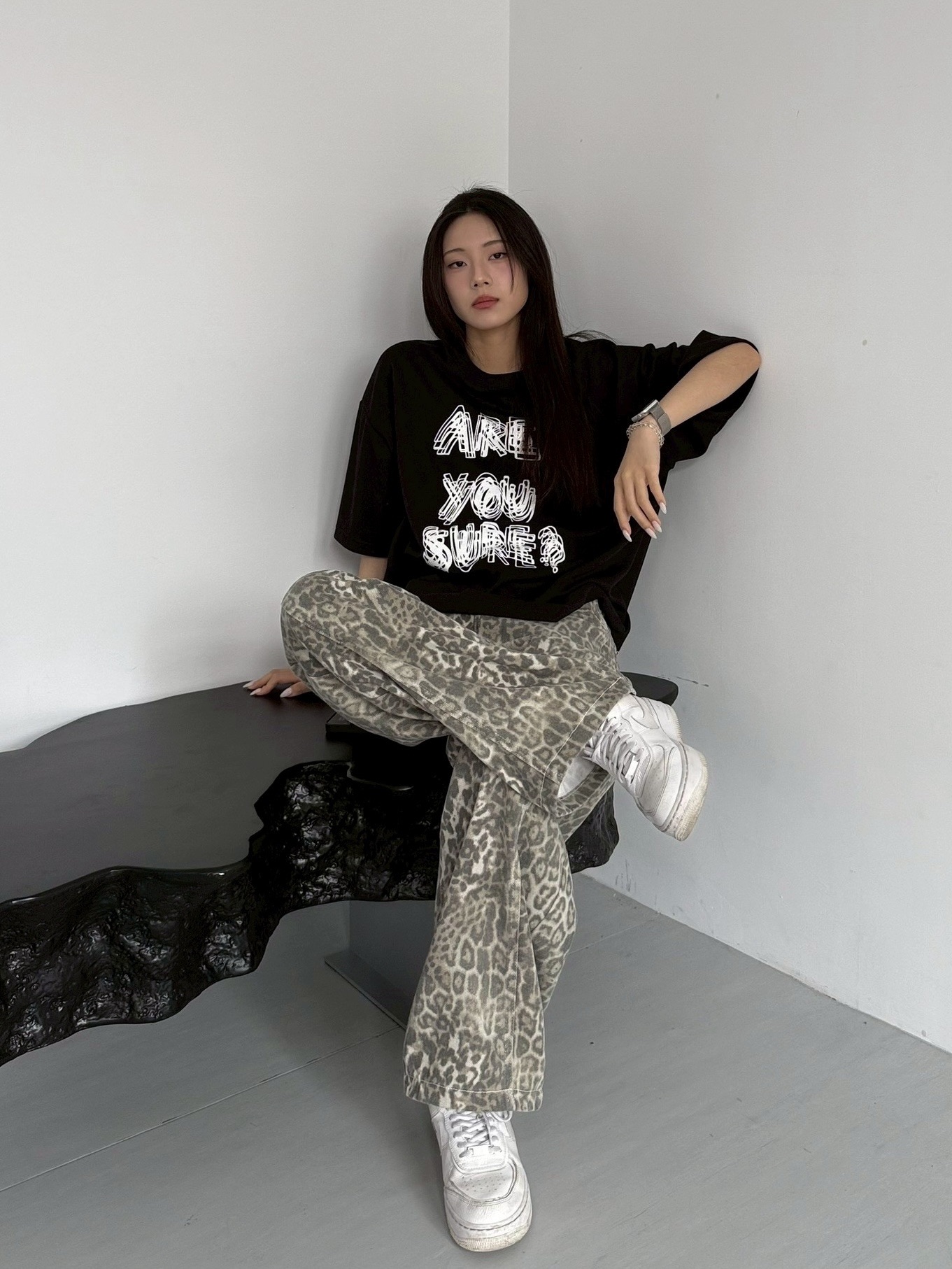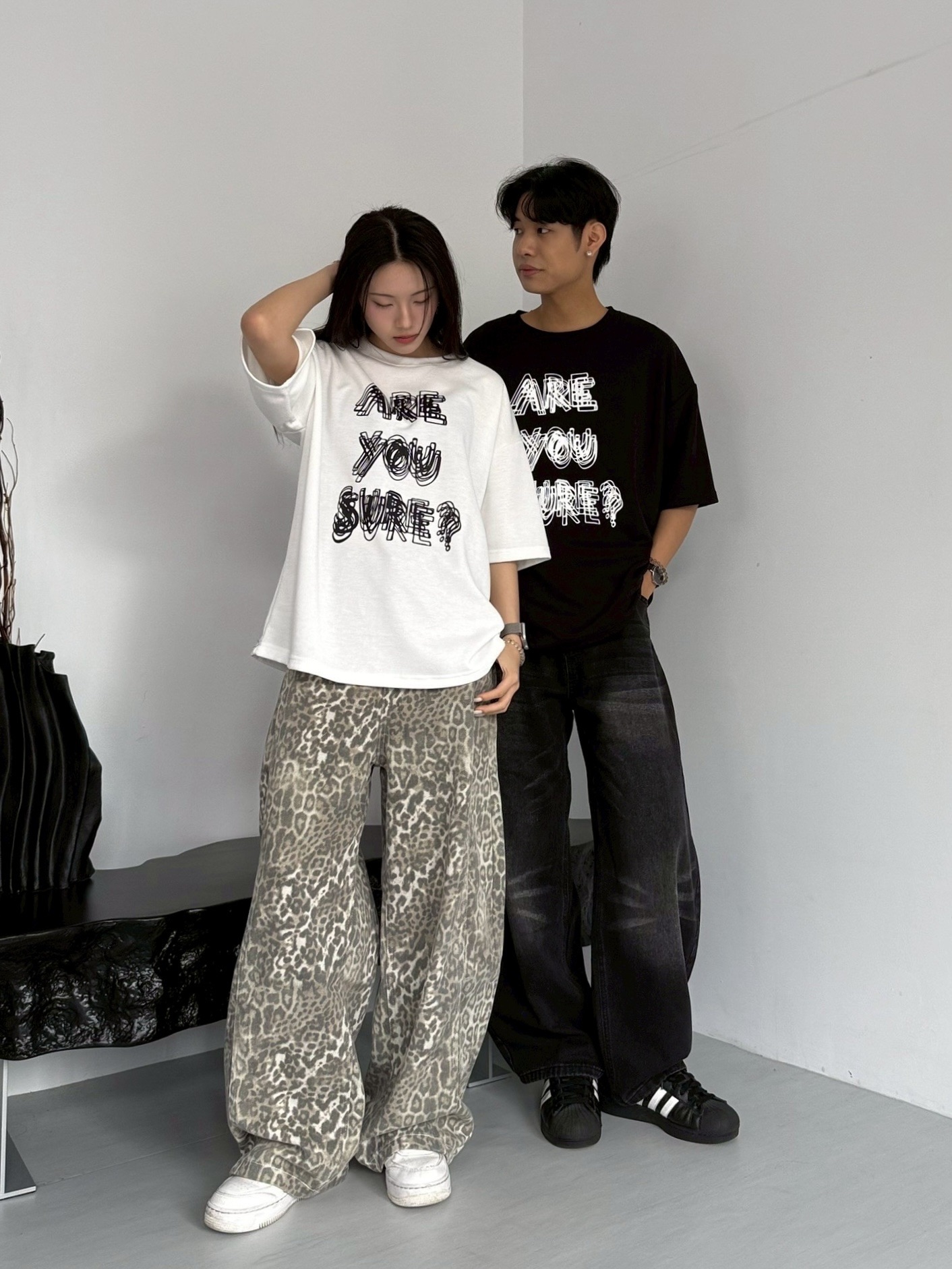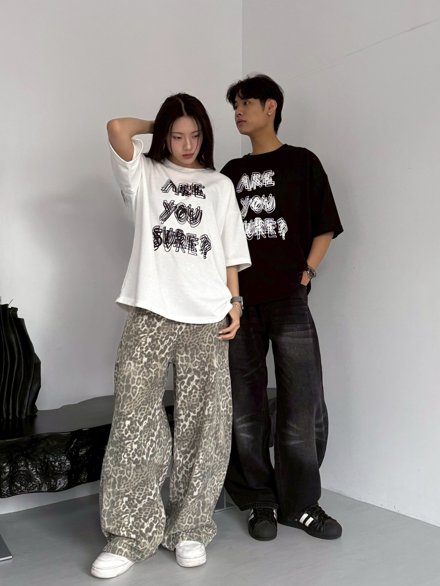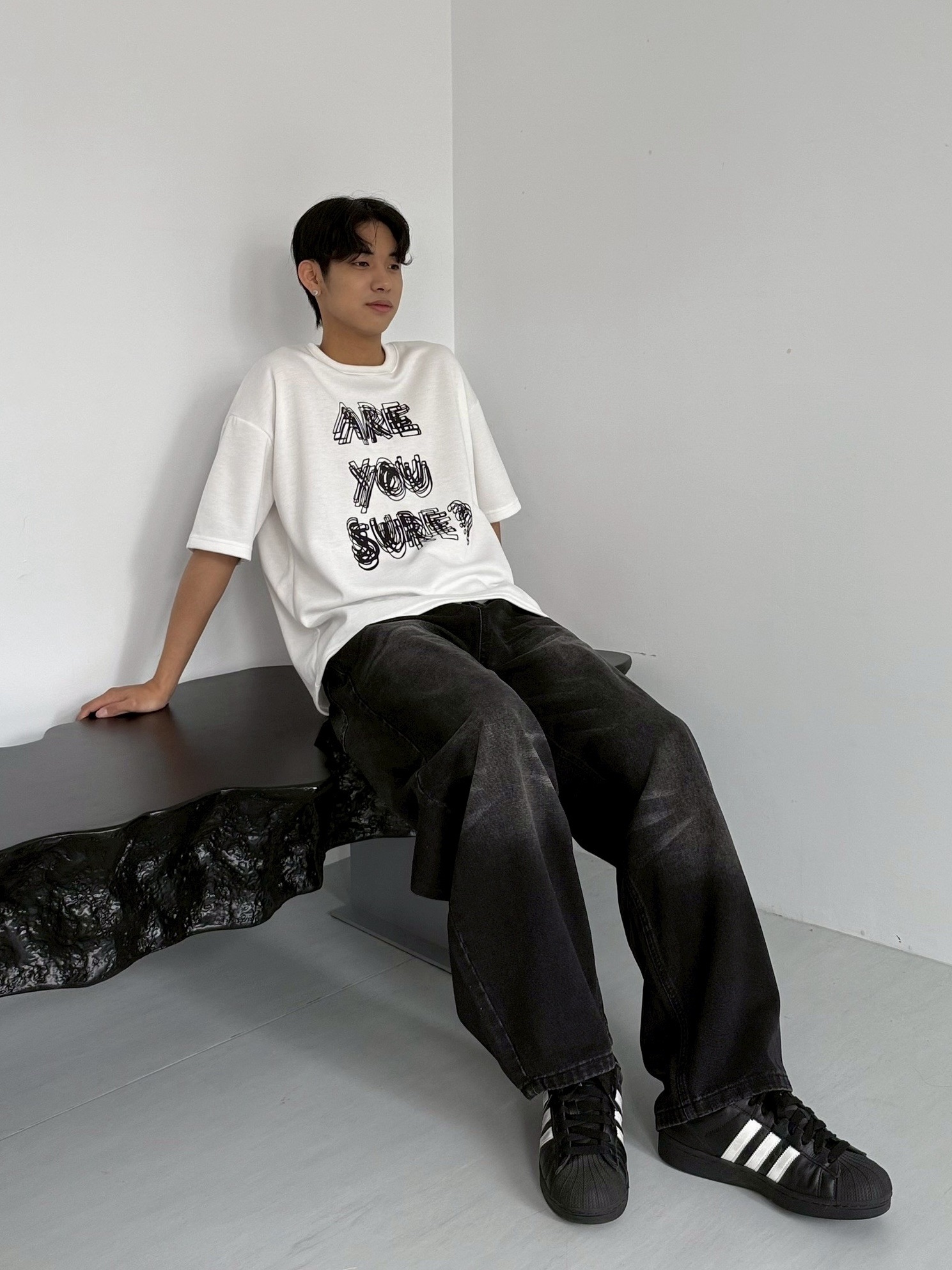 韓國 ARE YOU SURE? 錯位 幻影 立體 文字 短T 短袖 上衣 (2color)
