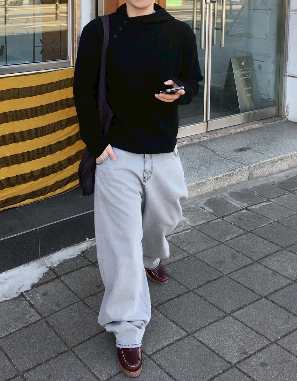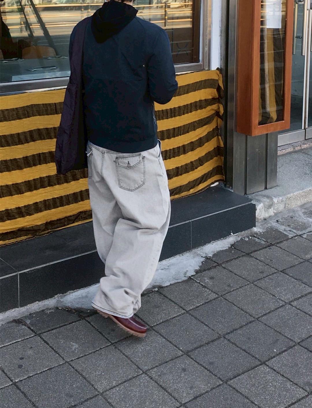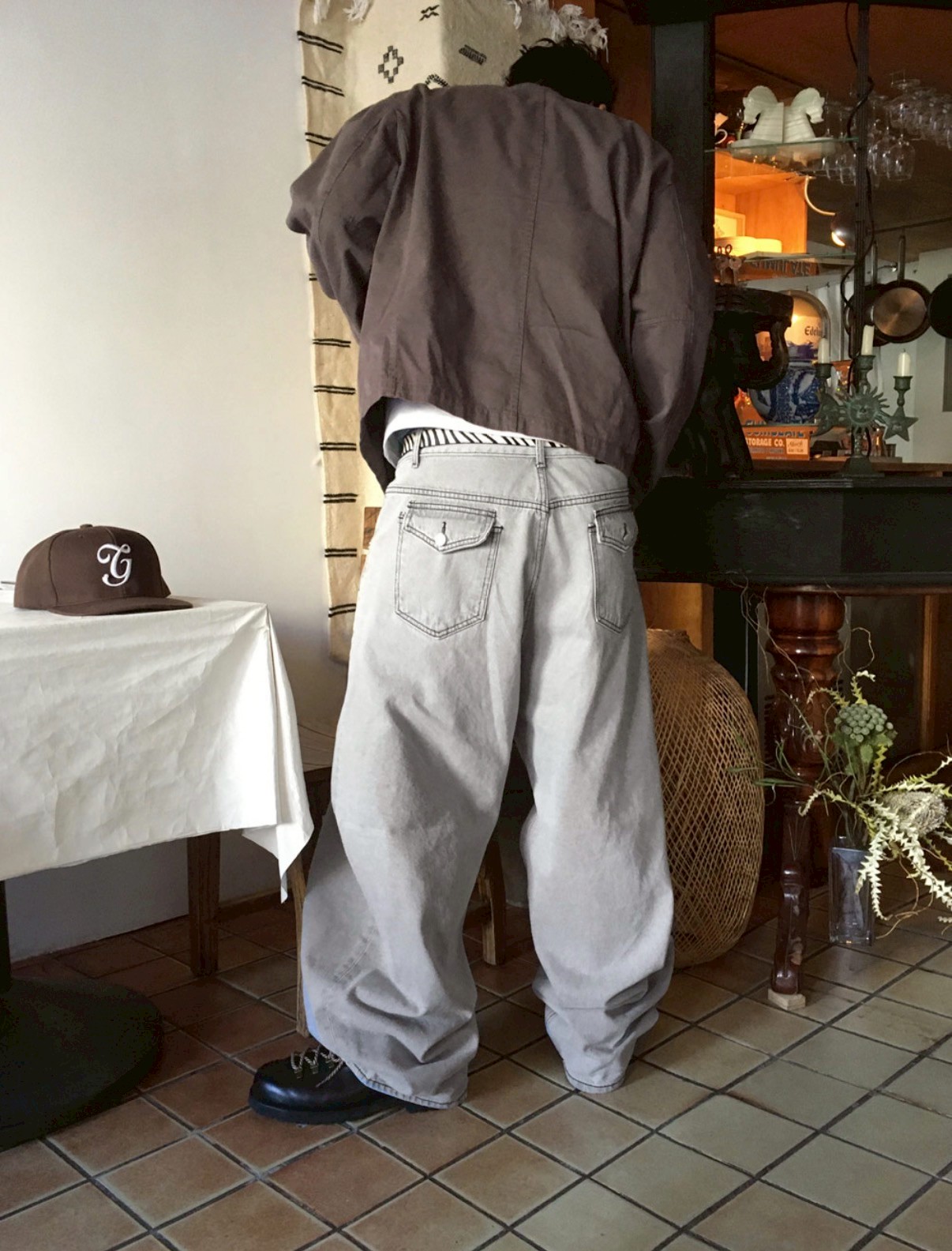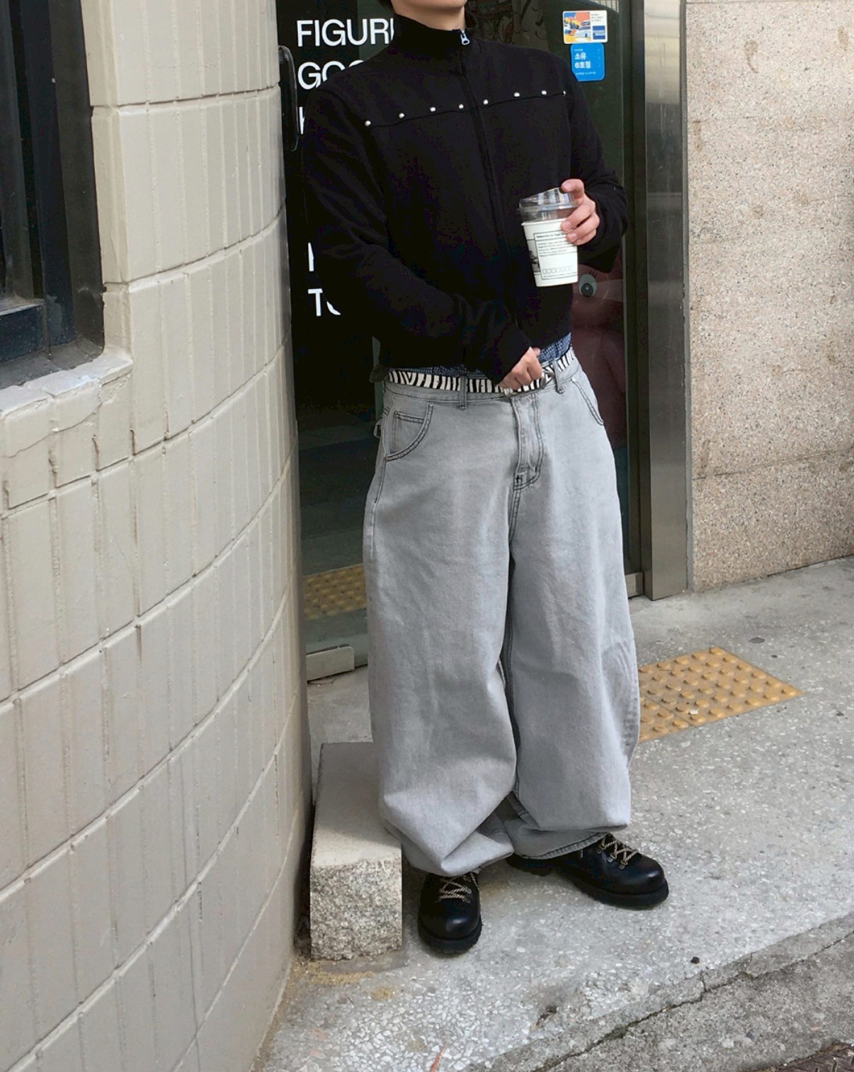 HOLY IN CODE 高級感 煙灰 水洗 素色 寬褲 牛仔褲 長褲