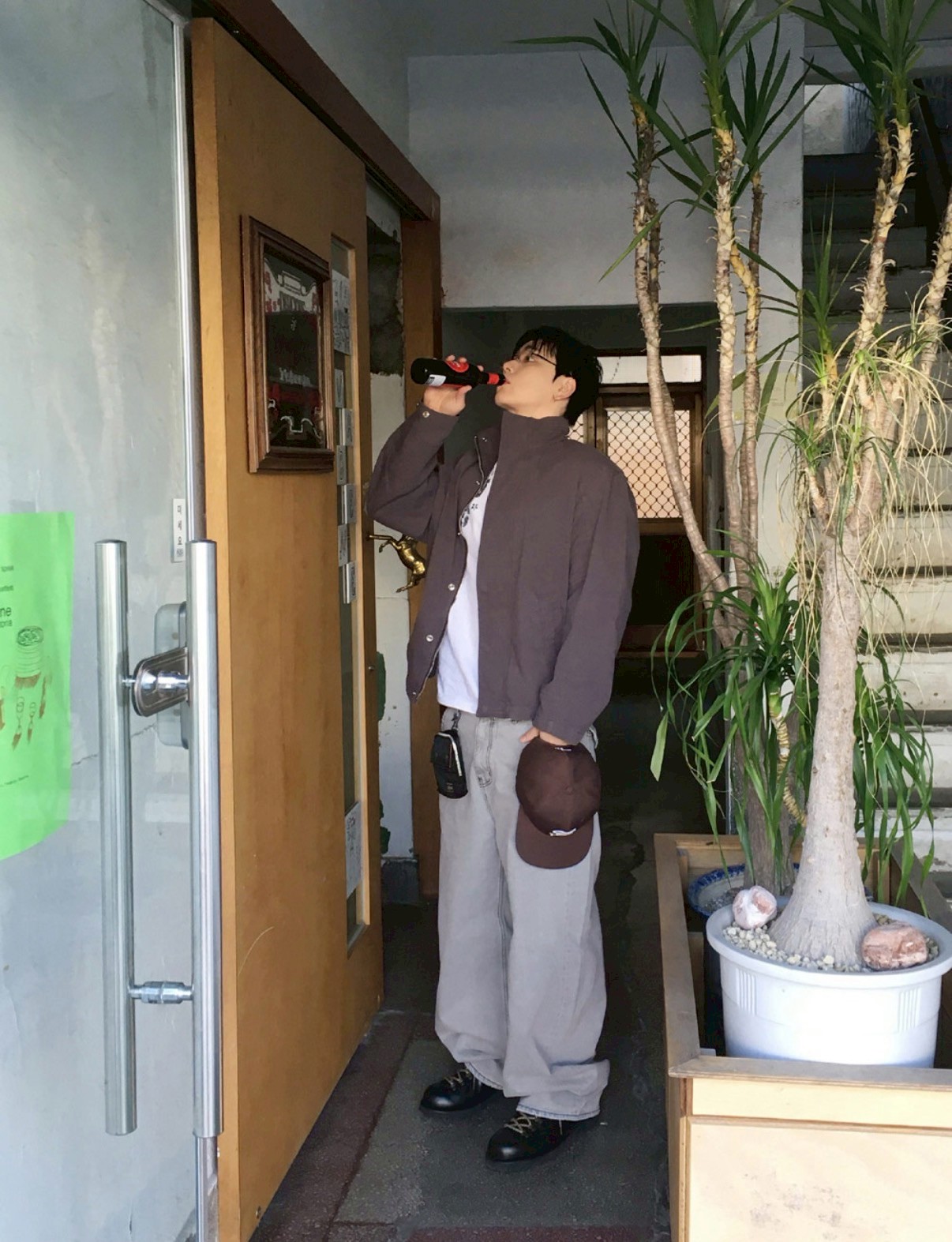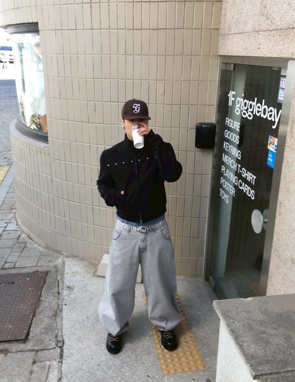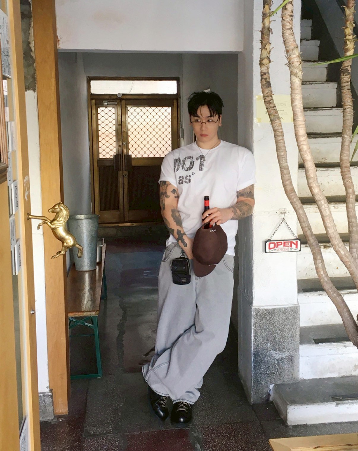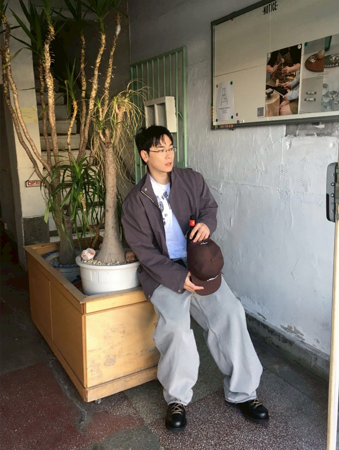 HOLY IN CODE 高級感 煙灰 水洗 素色 寬褲 牛仔褲 長褲
