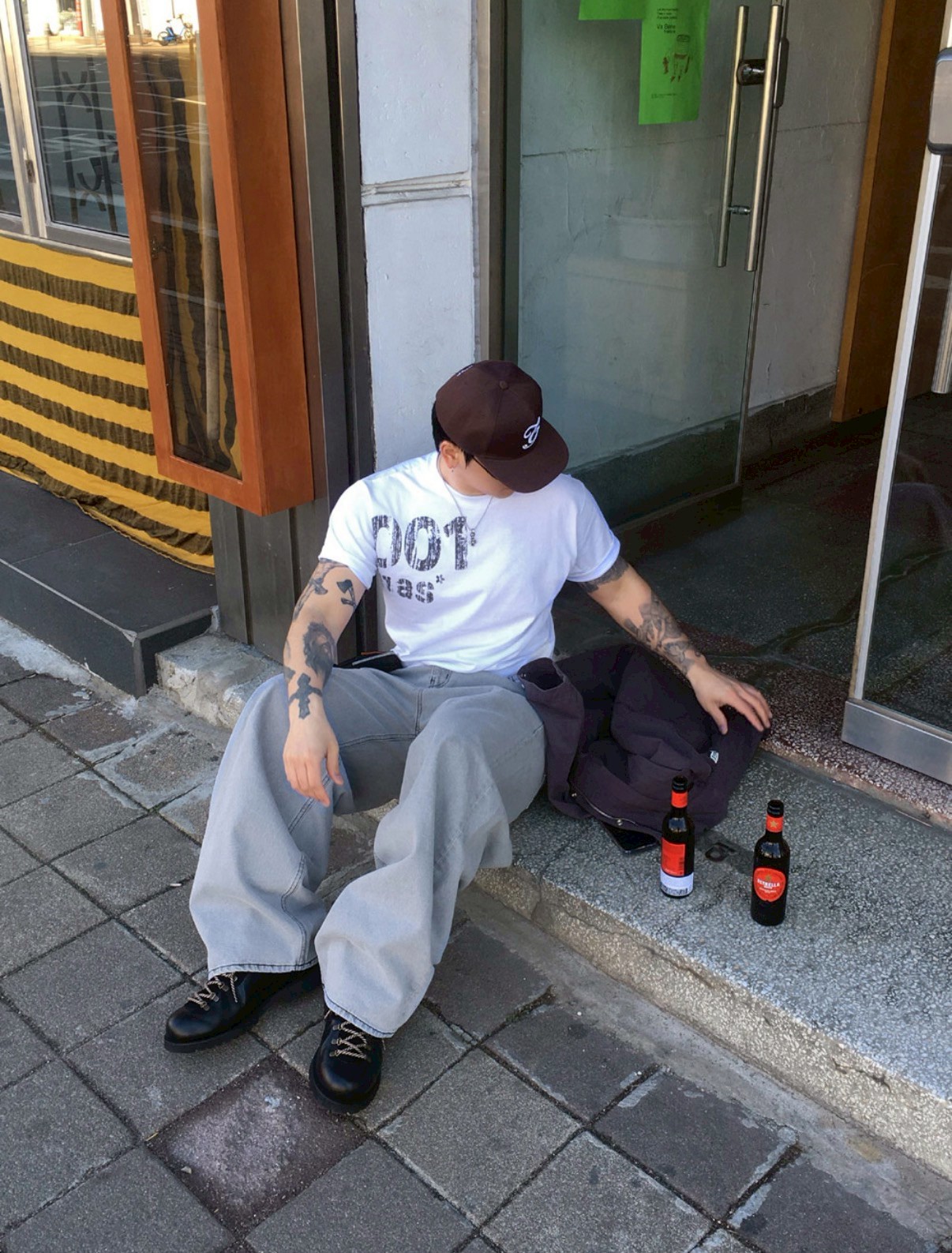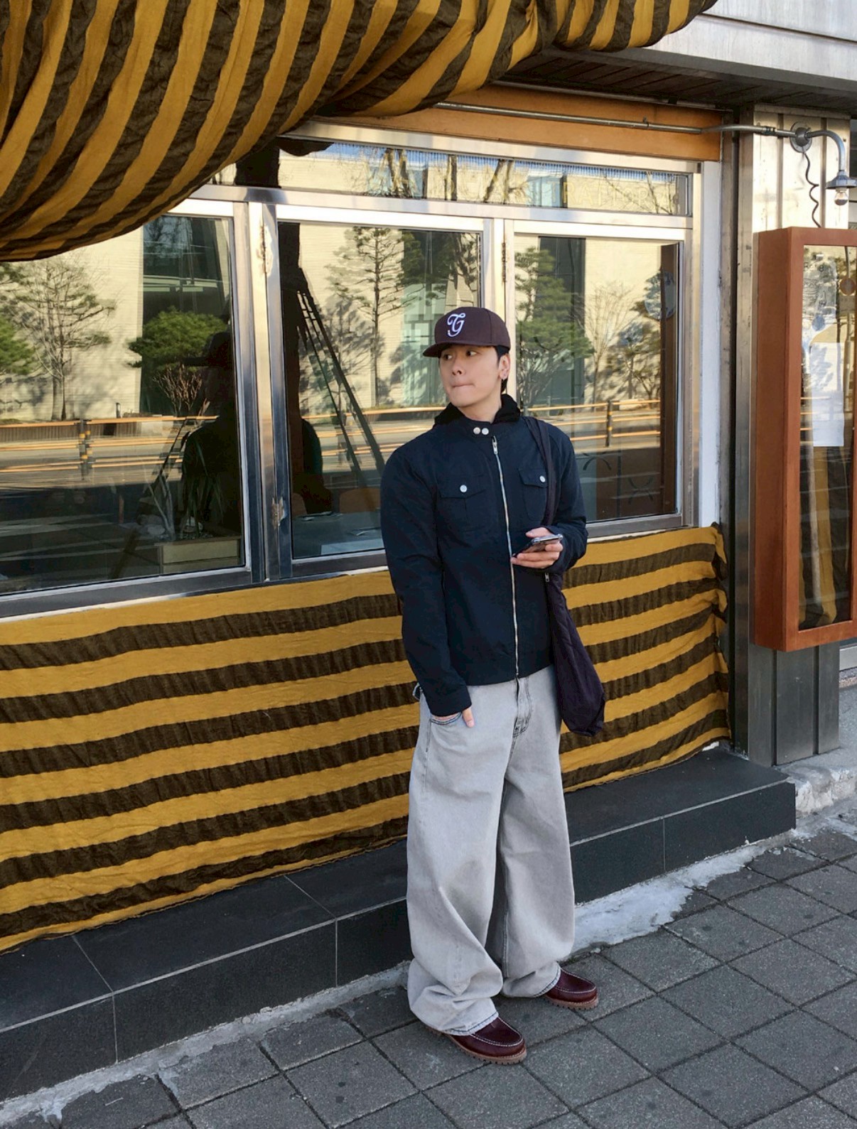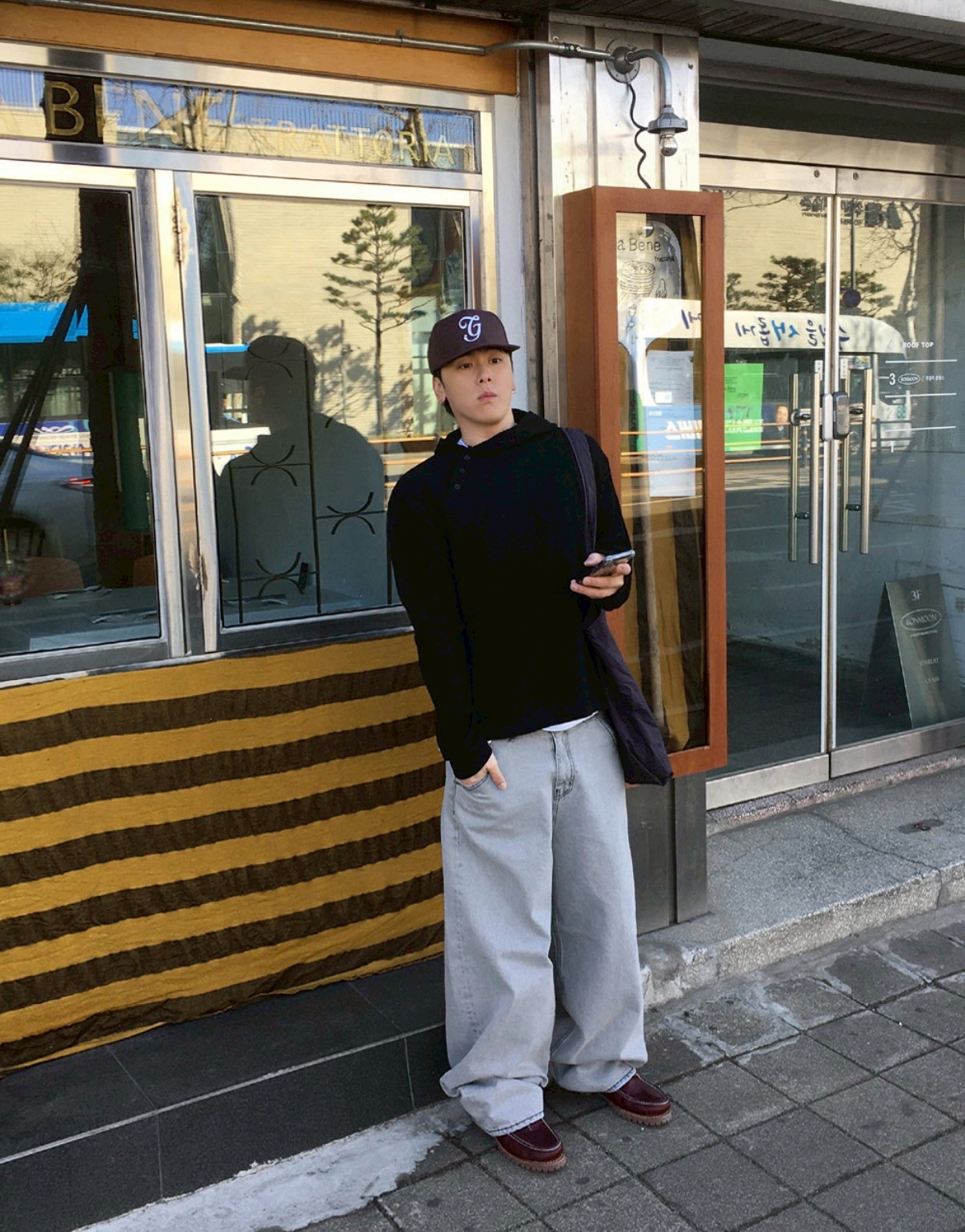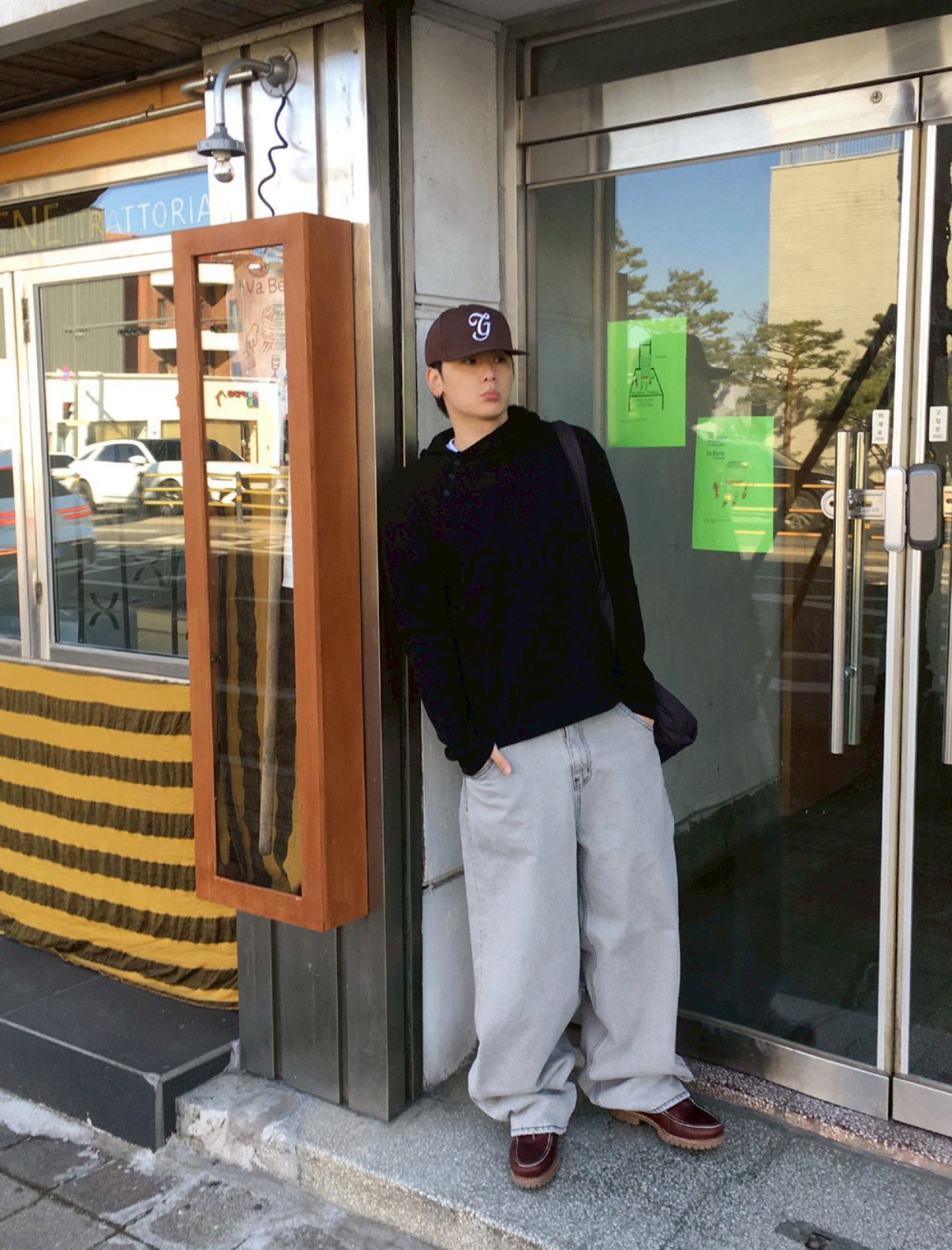 HOLY IN CODE 高級感 煙灰 水洗 素色 寬褲 牛仔褲 長褲