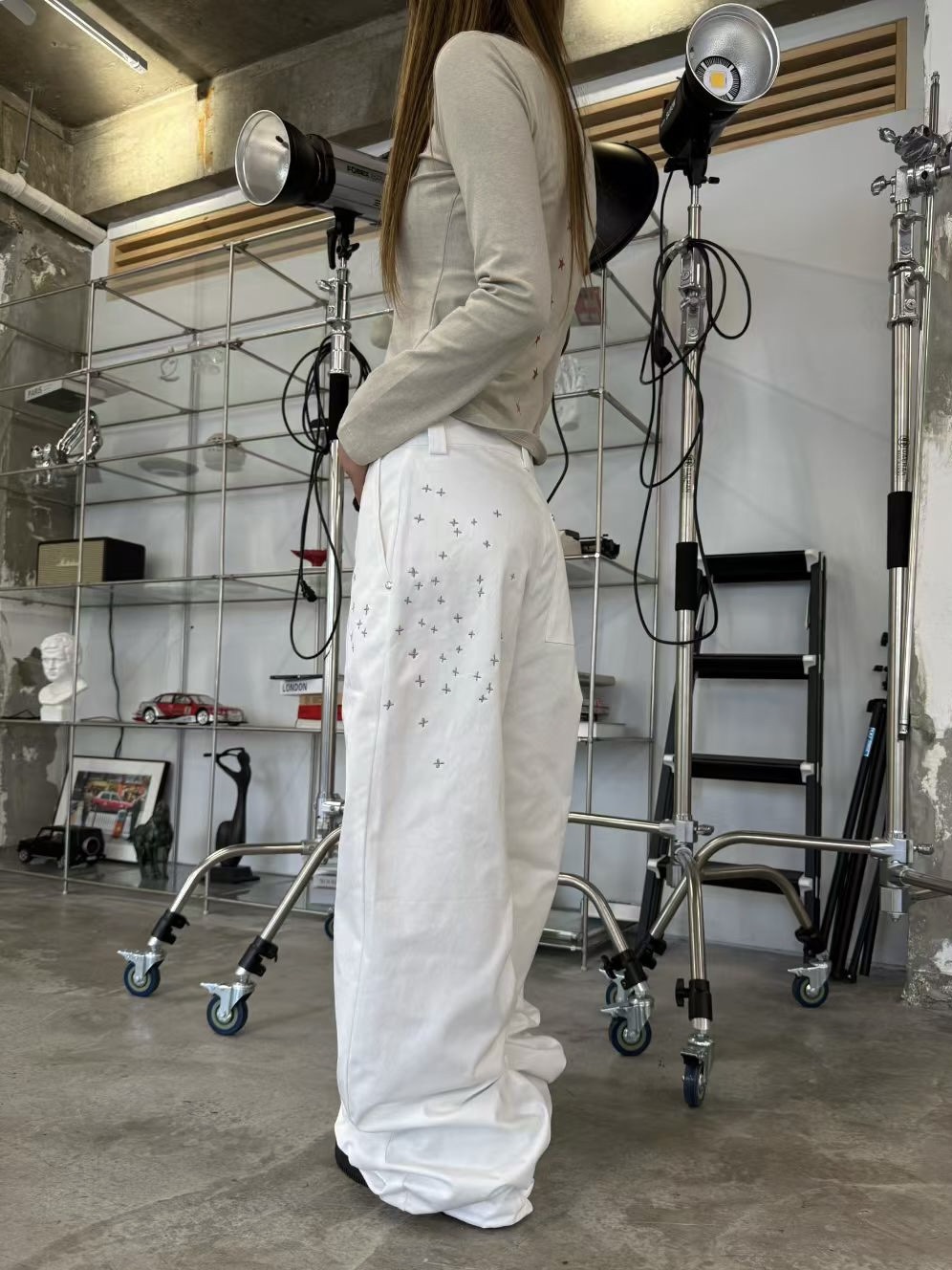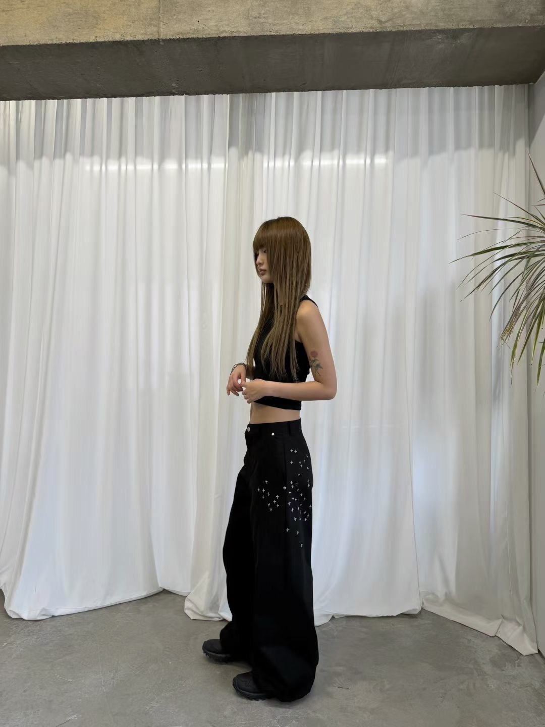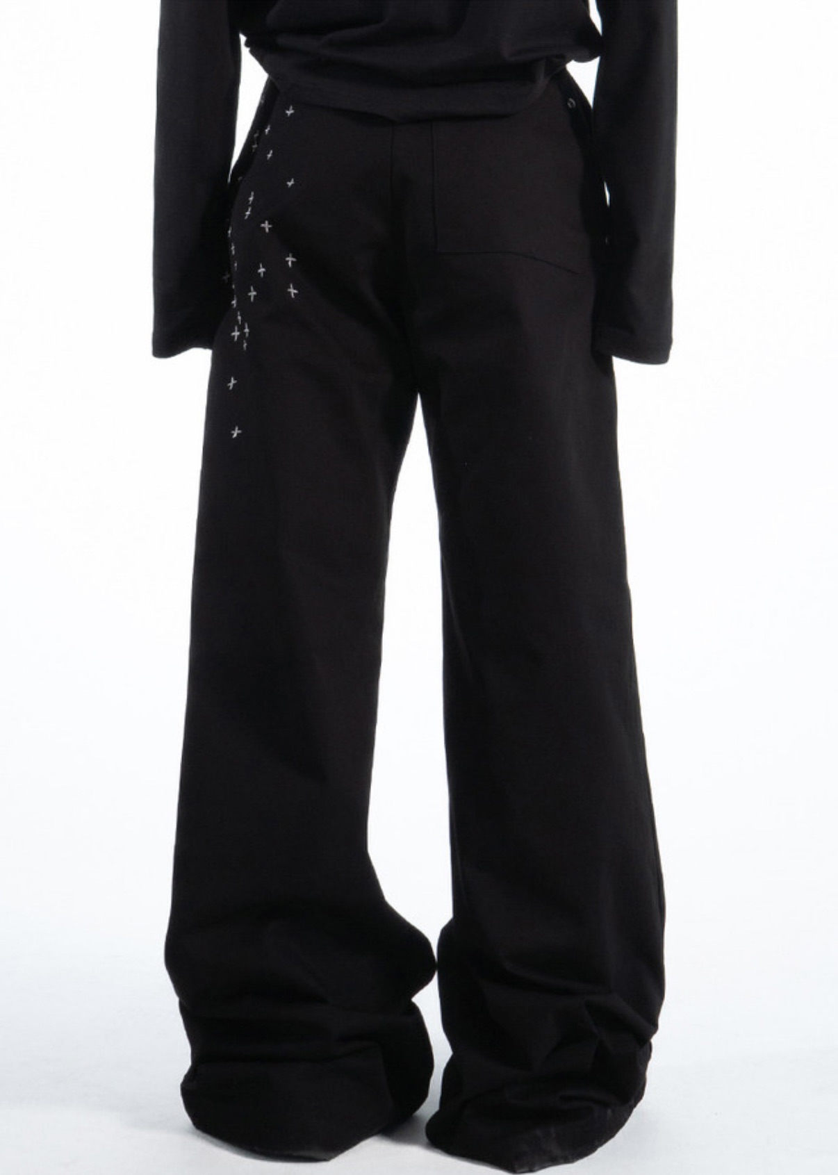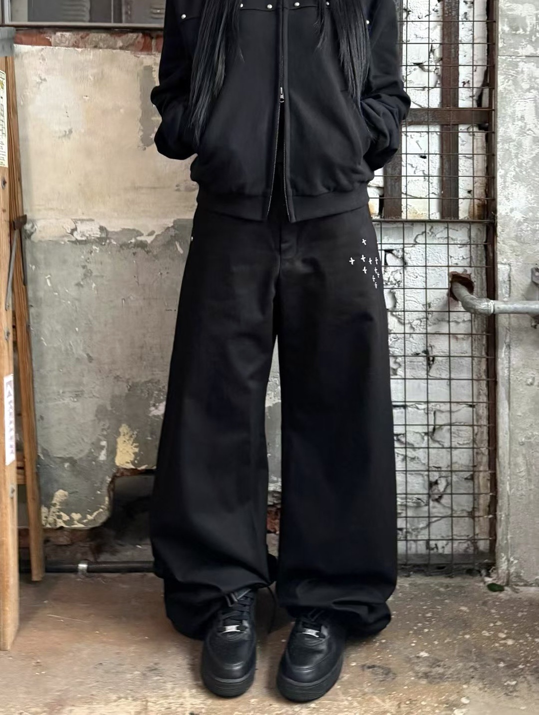 韓國 STARLIGHT 十字 滿天星 設計 素色 寬褲 長褲 (2color)