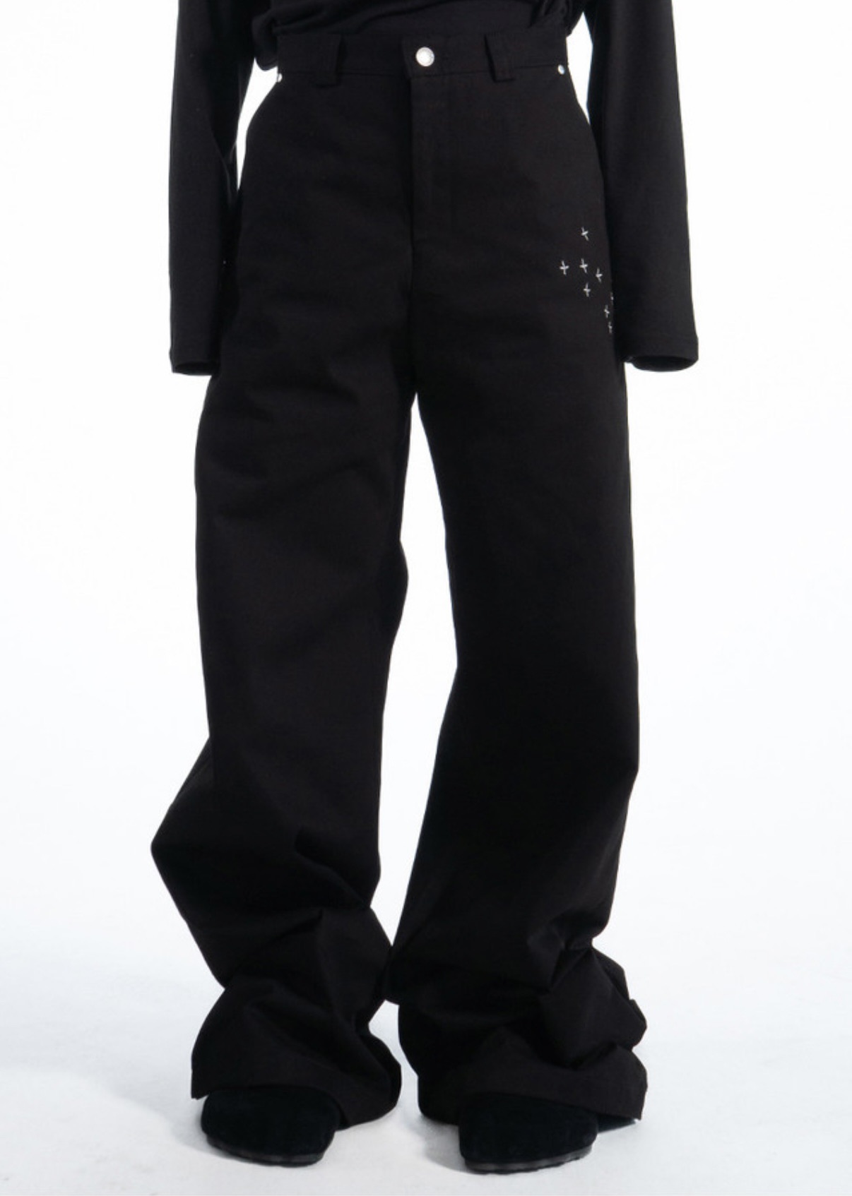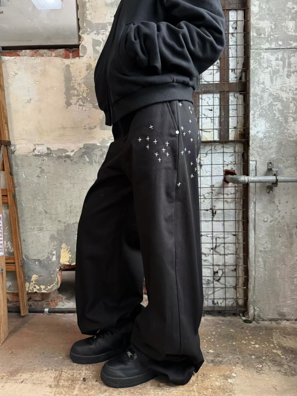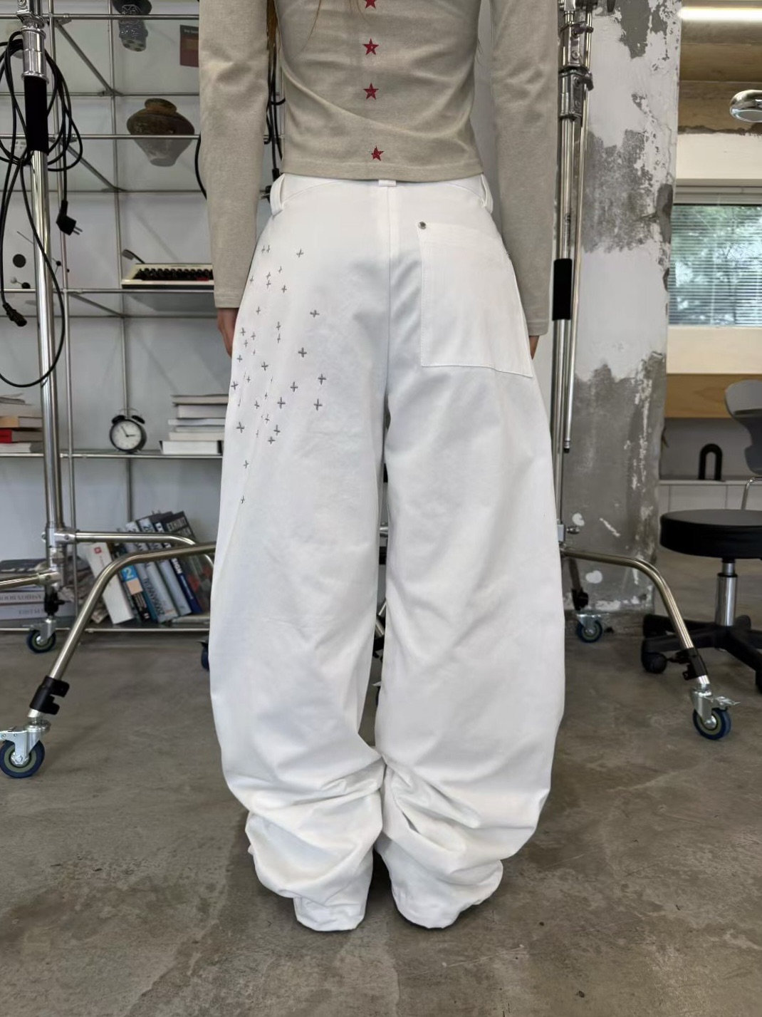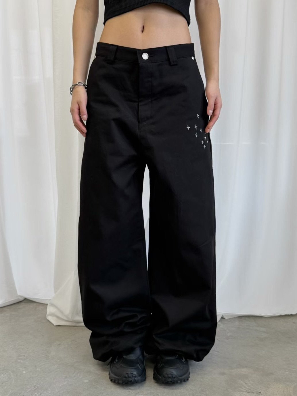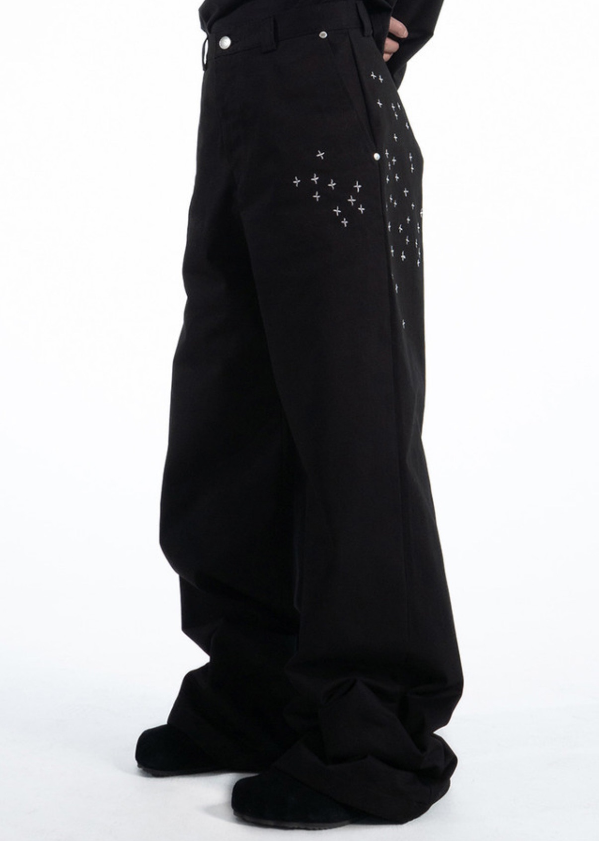 韓國 STARLIGHT 十字 滿天星 設計 素色 寬褲 長褲 (2color)