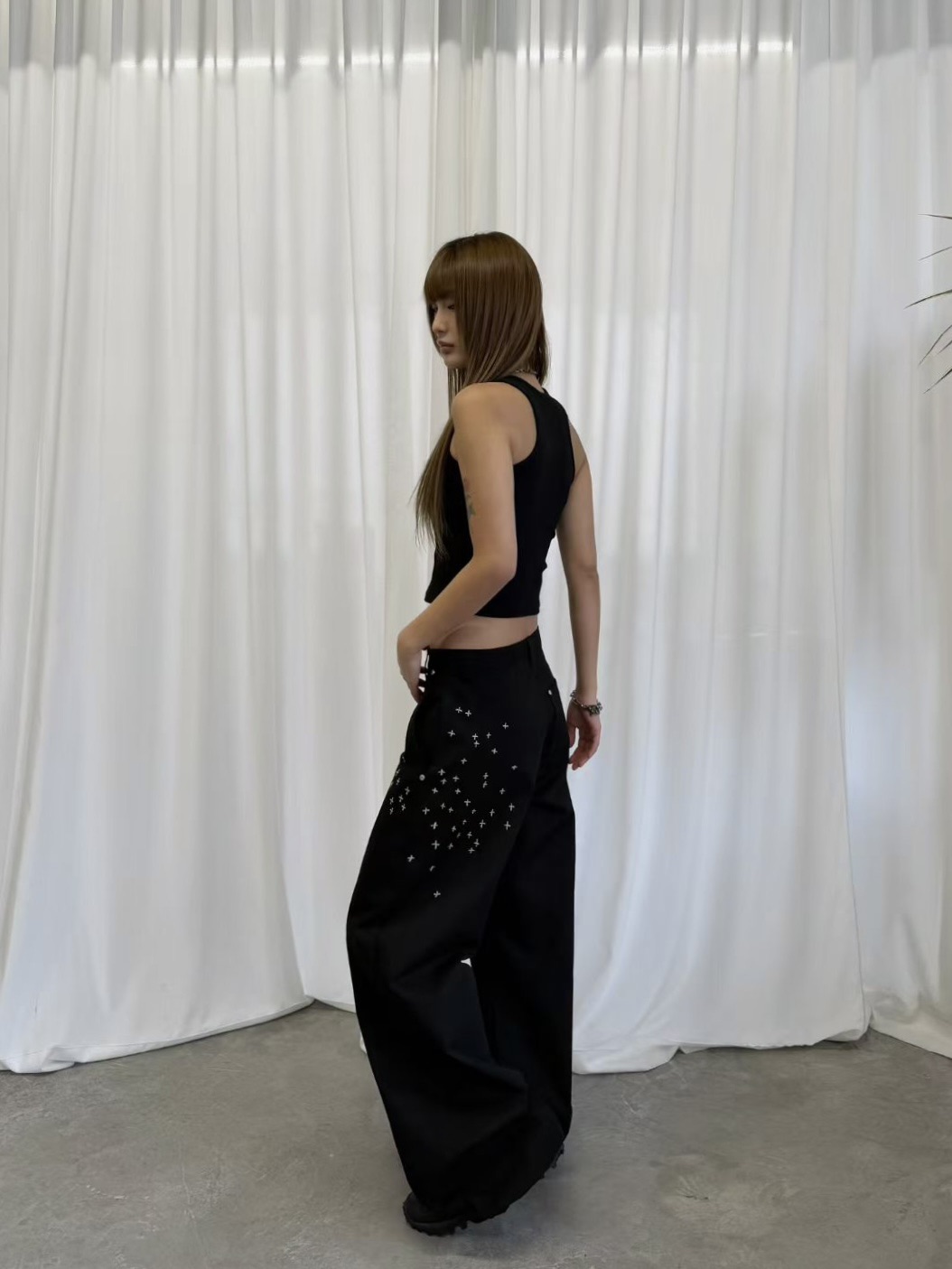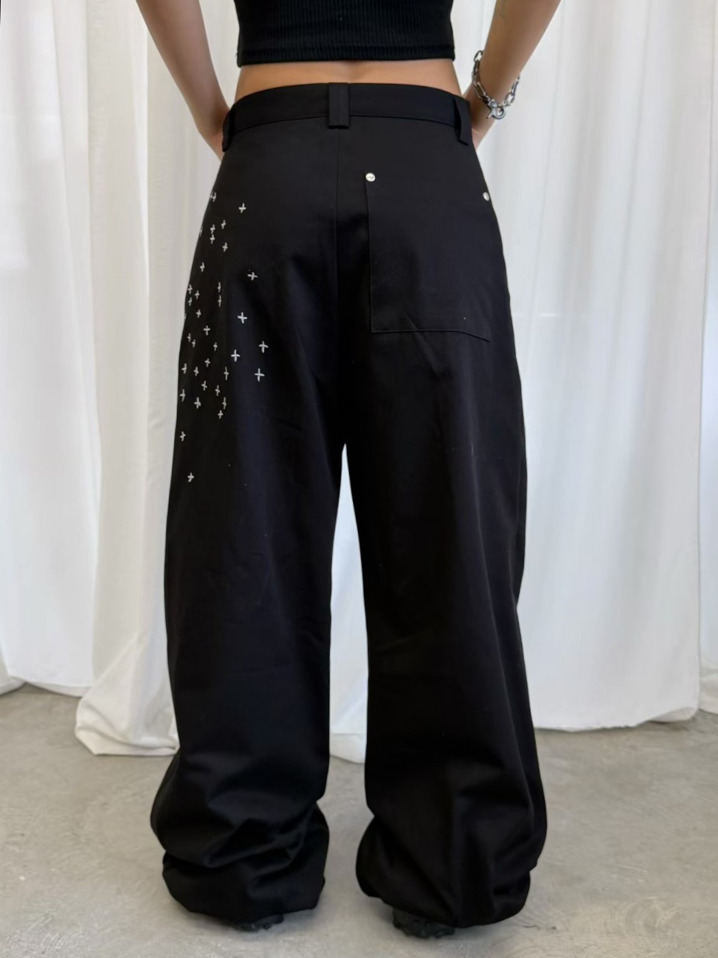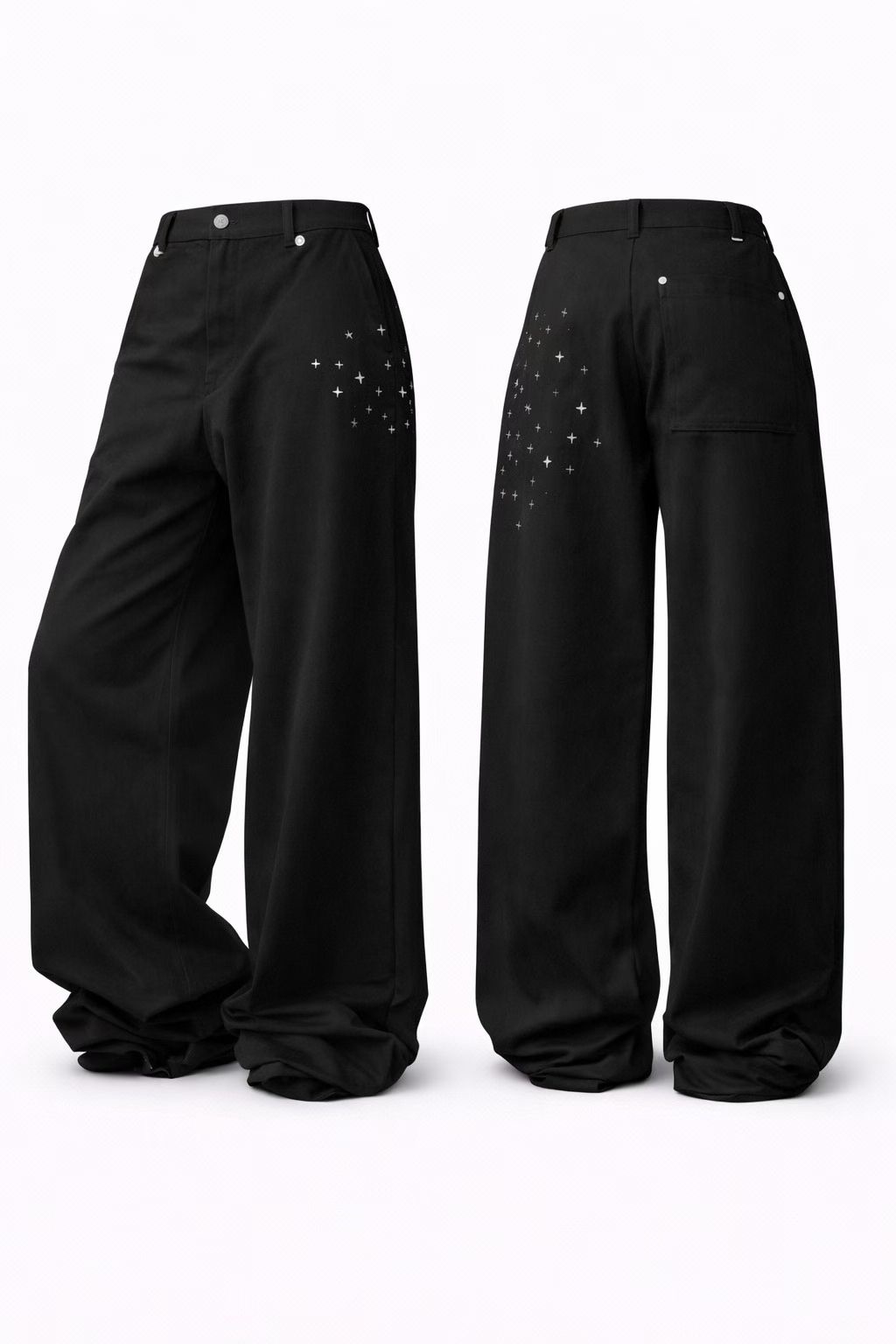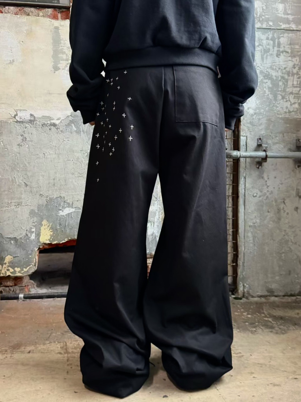 韓國 STARLIGHT 十字 滿天星 設計 素色 寬褲 長褲 (2color)