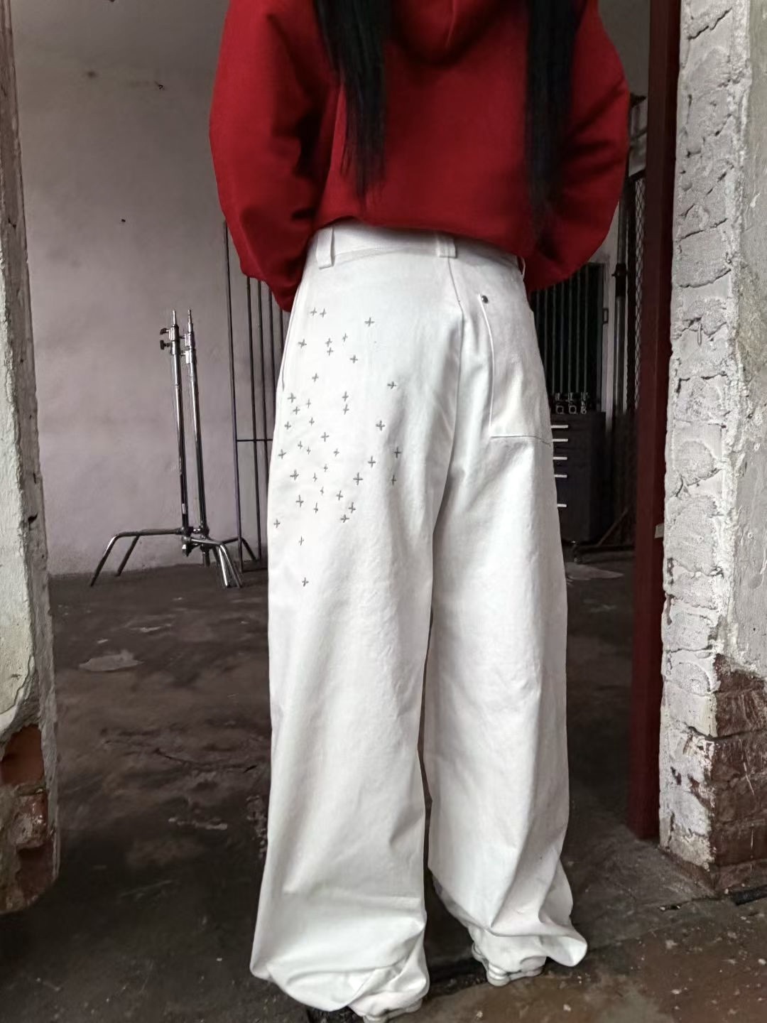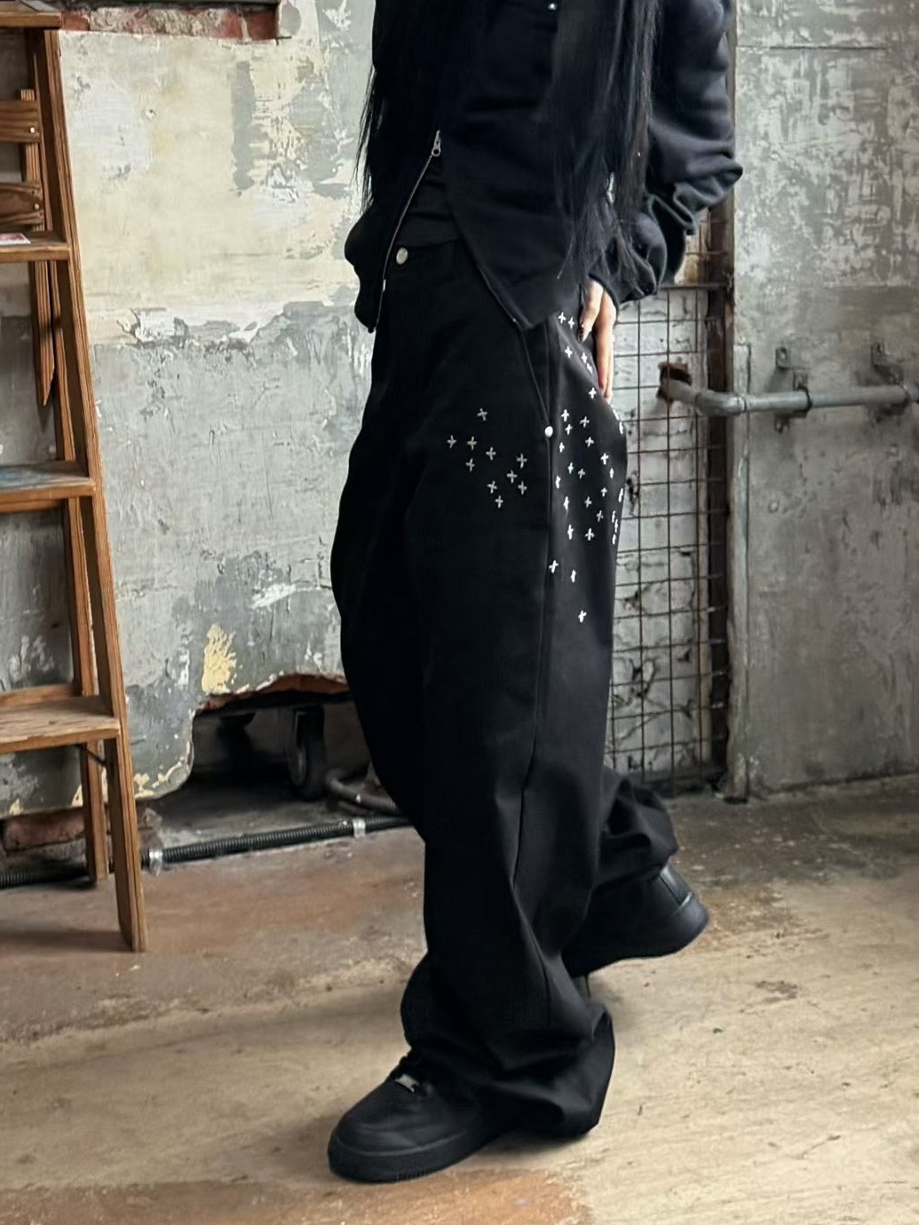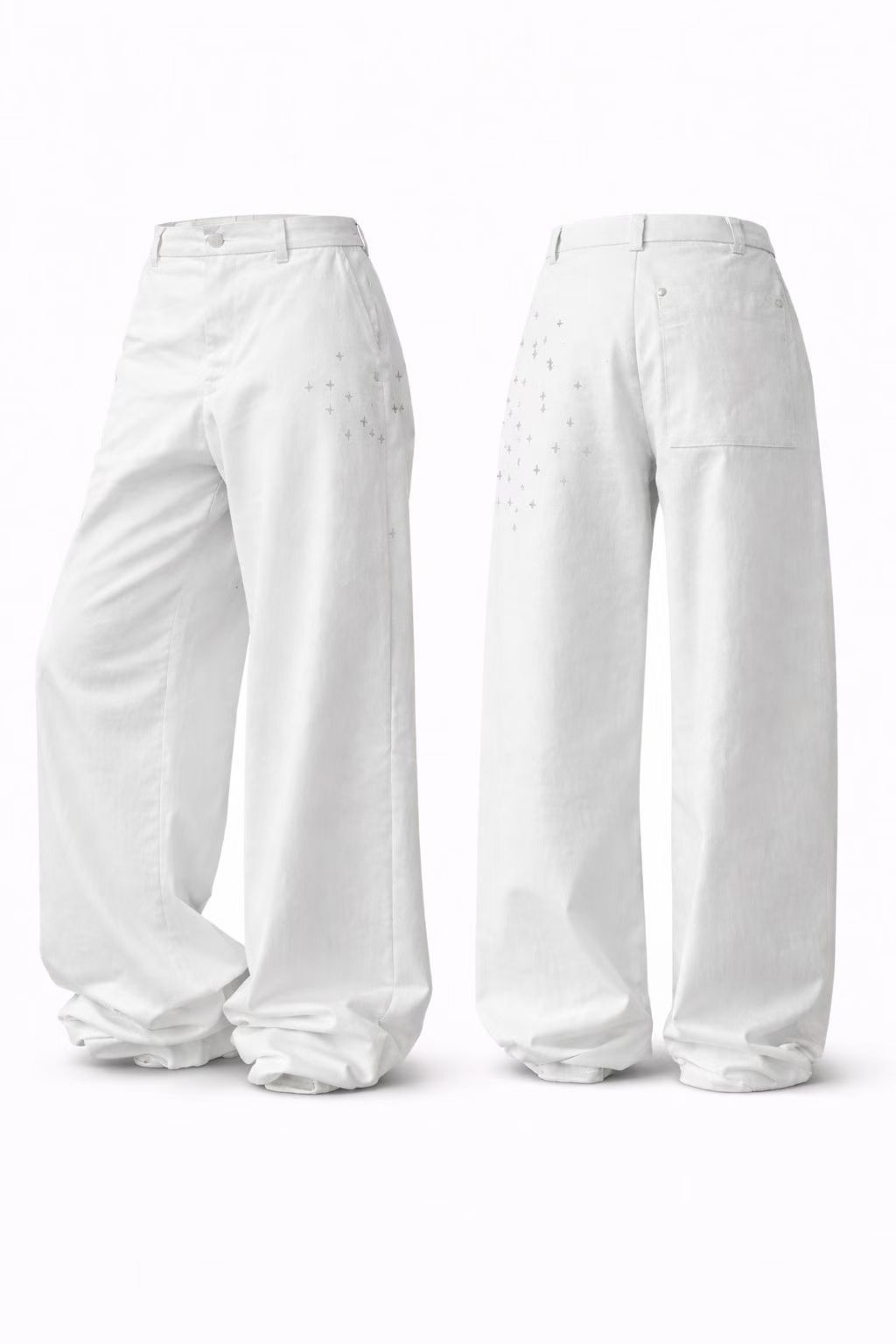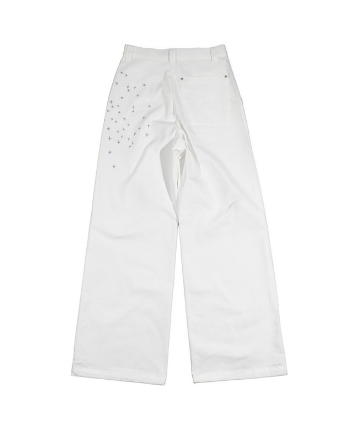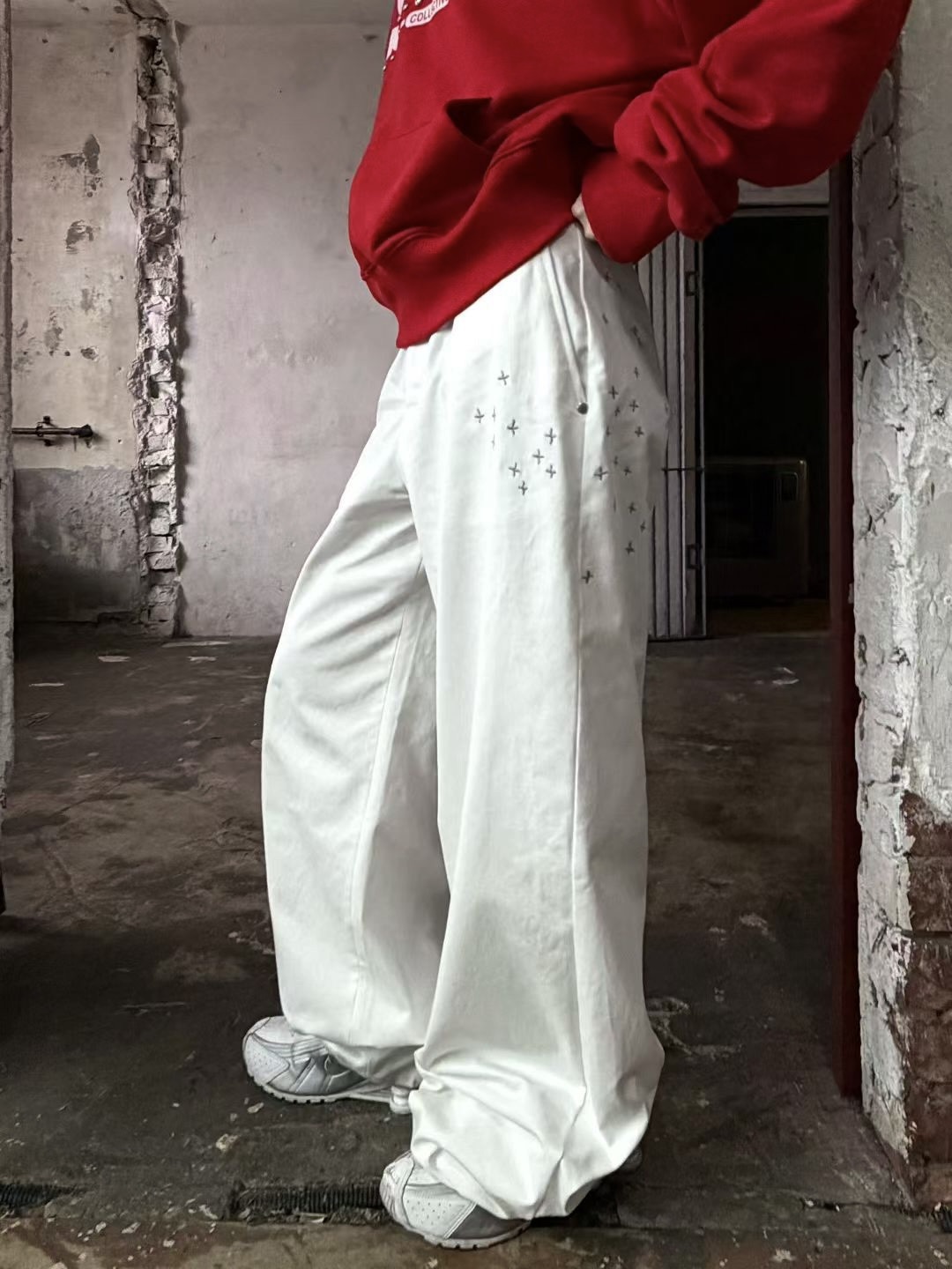 韓國 STARLIGHT 十字 滿天星 設計 素色 寬褲 長褲 (2color)