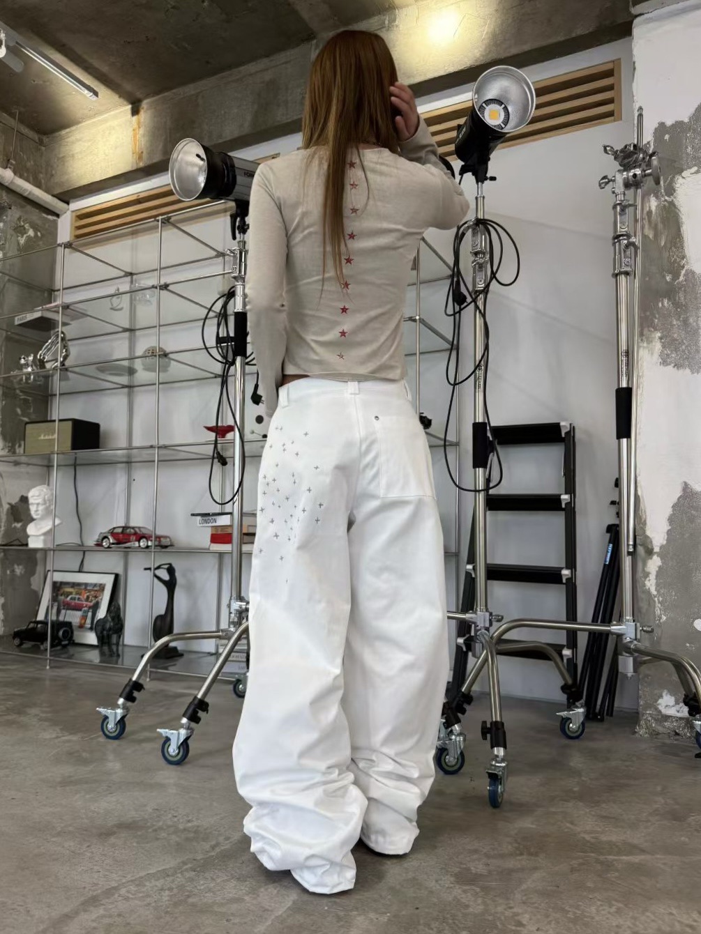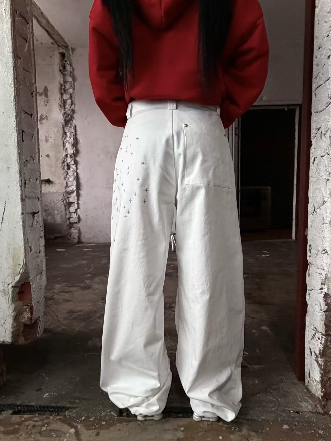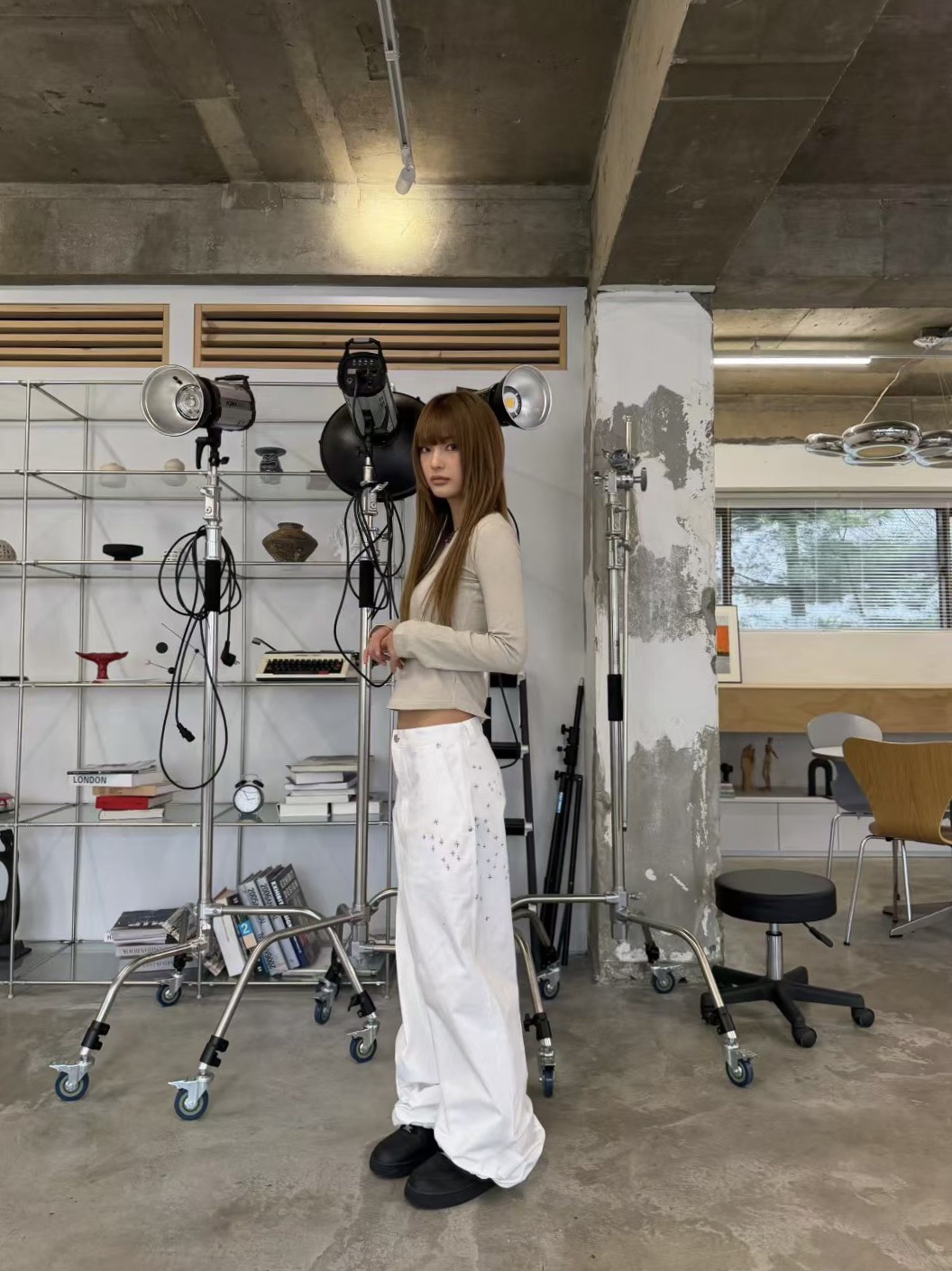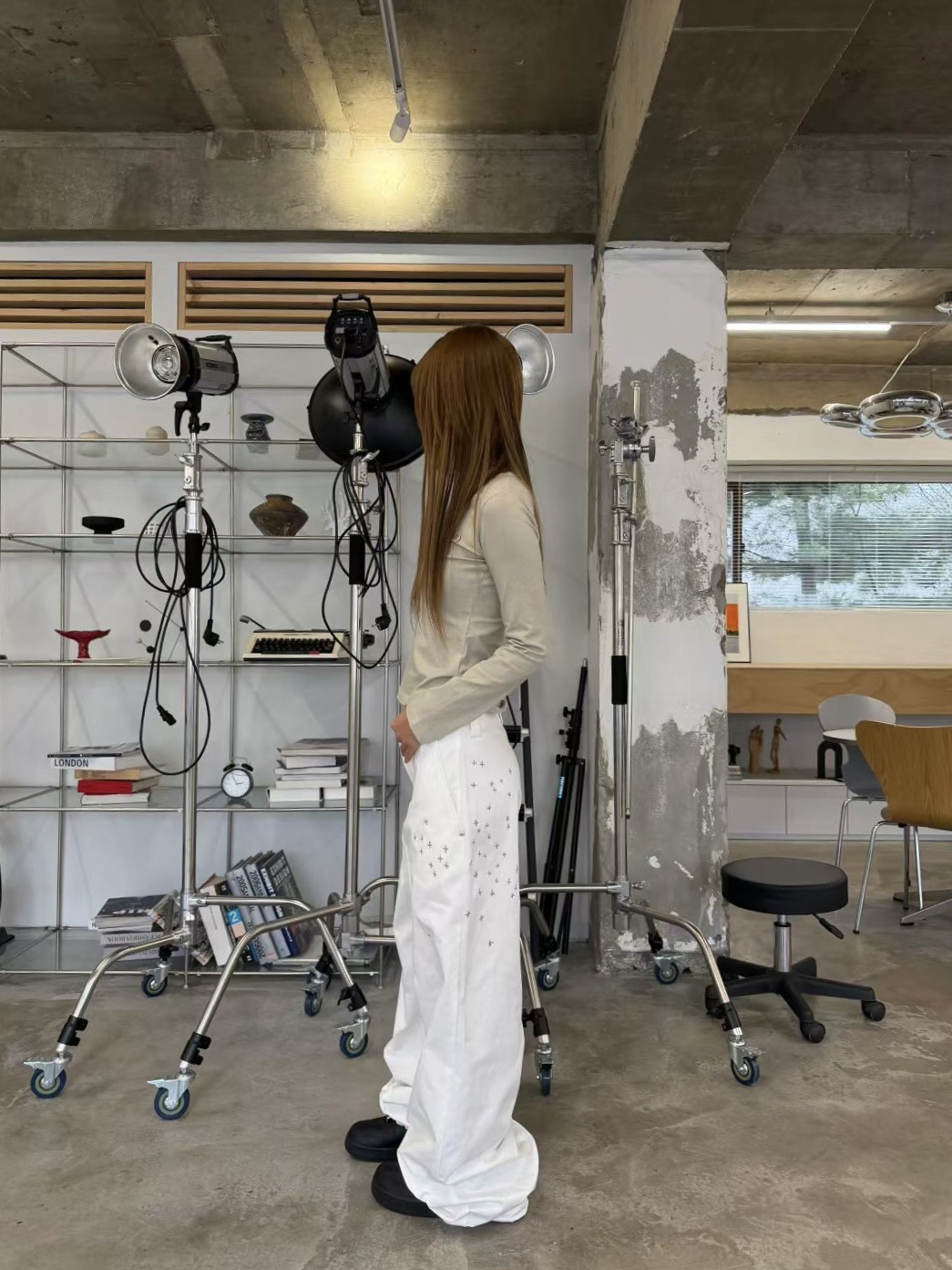 韓國 STARLIGHT 十字 滿天星 設計 素色 寬褲 長褲 (2color)